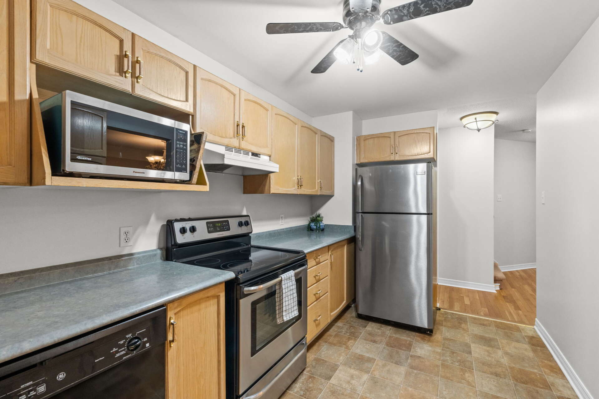 Steps from schools, parks, trails, and everyday amenities and just minutes to the 417, this home is the perfect spot to plant roots and start your next chapter. The main level offers a large kitchen with ample storage and an eat-in casual dining space. The open-concept living and dining area with hardwood flooring provides a comfortable space for family time or entertaining guests, while a conveniently located powder room completes the main floor. Upstairs, you’ll find a spacious primary suite featuring a wall-to-wall closet, bright bay window, and cheater access to the main bathroom. Two other well-appointed bedrooms complete the second level. The fully finished lower level adds incredible versatility, with a large family room anchored by a cozy wood-burning fireplace, a full bathroom, and plenty of storage space. This home offers the ideal blend of comfort, function, and location in one of Kanata’s most desirable neighbourhoods. Enjoy direct access to a network of peaceful walking paths behind your backyard that lead to the grocery store and other amenities.