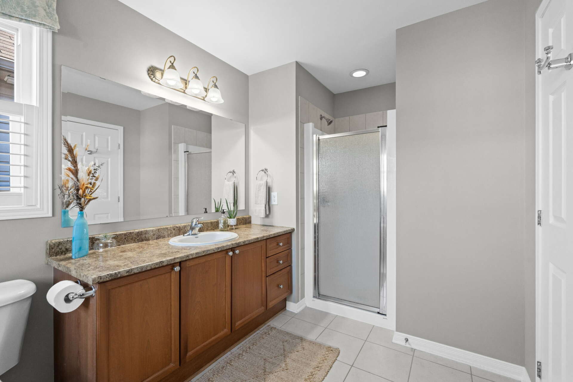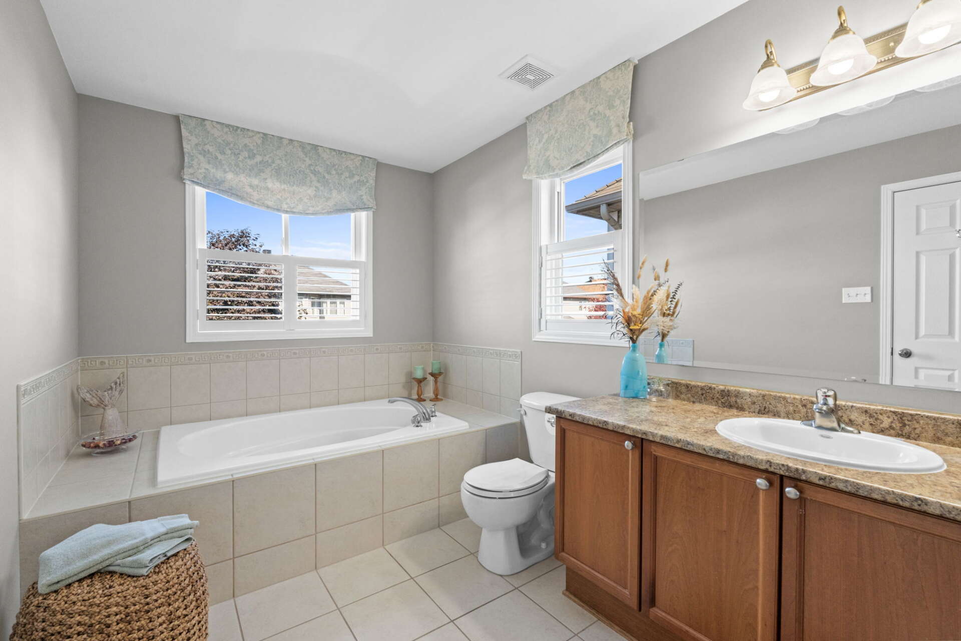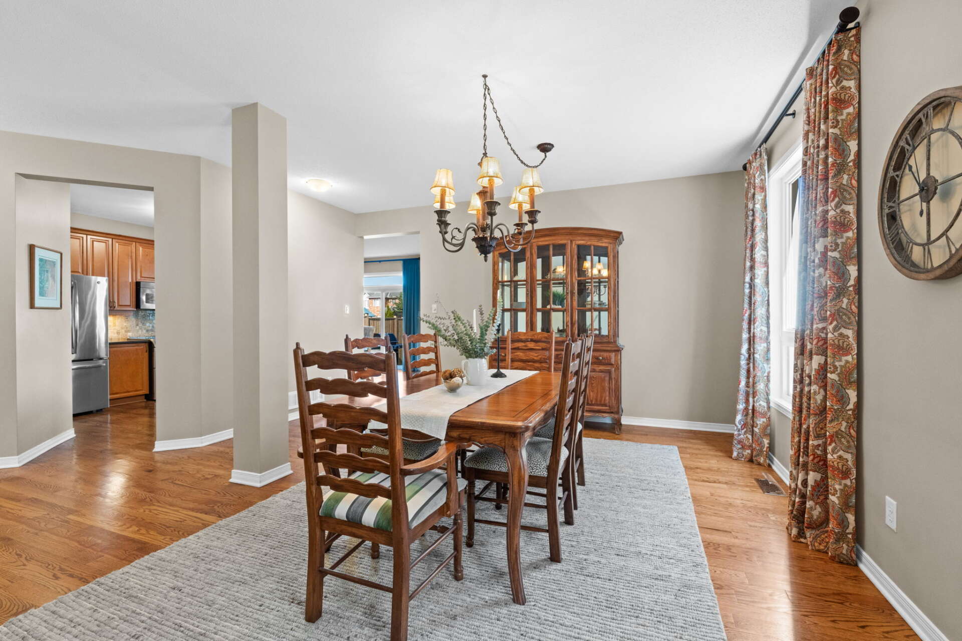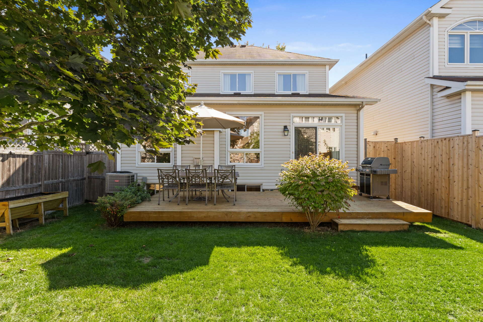 Step inside through the brand-new double front doors and be greeted by a bright, welcoming foyer and an elegant staircase. The main level features pristine hardwood floors, a spacious formal dining room, and a chef-inspired kitchen with granite counters, high-end stainless steel appliances, a breakfast bar, and a sun-filled eat-in area with sliding doors leading to the private, fenced backyard. The adjoining family room with cozy fireplace is the perfect spot to relax and unwind. Upstairs, the generous primary suite is set apart for privacy and includes a walk-in closet and a spa-like en-suite with a soaker tub, separate shower, and California shutters. Convenient second-floor laundry sits just outside the primary. Two additional bright and spacious bedrooms are located at the opposite end, accompanied by a full bathroom, also finished with California shutters. The fully finished lower level offers incredible versatility with a large rec space, an office/4th bedroom, and a stylish full bathroom with a glass shower. Outdoors, the backyard is a private retreat featuring mature trees, a fully fenced yard, and tranquil views, perfect for entertaining or enjoying peaceful evenings. This immaculate home is truly move-in ready and combines timeless finishes with modern conveniences, making it a rare find in one of Barrhaven’s most sought-after locations.