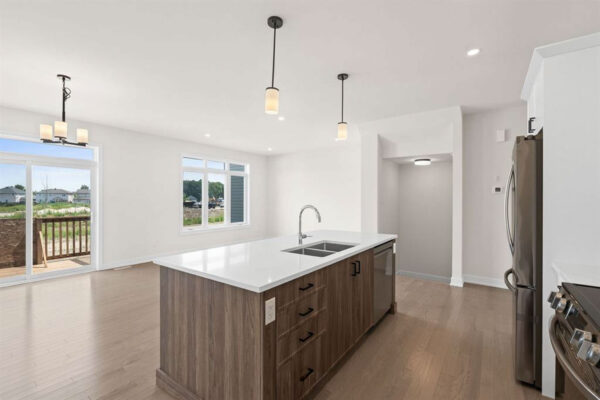 Discover this beautifully crafted semi-detached home in the sought-after Stirling Meadows community in Brockville. Available May 1, 2026, this newly built “Thornbury” model by Mackie Homes offers approximately 1,868 sq. ft. of thoughtfully designed living space, featuring 3 bedrooms, 3 bathrooms, and an oversized garage. The main floor welcomes you with a bright, open-concept layout designed for comfortable everyday living. The living and dining area features large windows, pot lighting, and hardwood flooring throughout, with direct access to the sun deck – perfect for relaxing or entertaining. The stylish kitchen blends form and function with quartz countertops, a subway tile backsplash, a centre island, a pantry, and stainless steel appliances. A convenient powder room completes the main level. Upstairs, the spacious primary suite includes a large walk-in closet and a 4-piece ensuite with a soaker tub and glass shower. Two additional bedrooms, a full bathroom, and a dedicated laundry room provide plenty of space and convenience for families or guests. Ideally located with quick access to Highway 401 and close to shopping, dining, and everyday amenities, this home offers the perfect balance of comfort, style, and convenience in one of Brockville’s newest communities.
