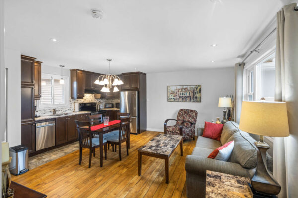 This FULLY furnished, ALL-INCLUSIVE, self-contained, main-level apartment in the sought-after Pineview neighbourhood offers easy living with a touch of luxury. Step inside to a bright, open-concept layout featuring a spacious living and dining area that flows seamlessly into a modern kitchen complete with granite countertops and stainless steel appliances, perfect for everyday cooking or hosting guests. The primary bedroom is generously sized and features a walk-in closet with custom built-ins, plus direct access to a spa-like cheater en-suite with a double vanity, granite counters, a free-standing soaker tub, and an oversized glass shower. Stylish laminate and tile flooring run throughout for a clean, contemporary feel. Enjoy some fresh air in the shared backyard, complete with a patio, deck, and fully fenced yard, an ideal spot to unwind or entertain. One parking space is included along the shared laneway. Located just minutes from LRT access, Trainyards shopping, and the Ottawa hospitals, this home is perfectly situated for professionals or anyone looking for a move-in-ready space close to everything. Please Note: This rental is being offered as a furnished, all-inclusive, self-contained unit that shares the main level of the property with a second self-contained apartment.