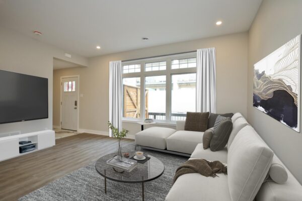 Inside, the open-concept main floor is finished with high-end modern touches, featuring a spacious living area and a stylish kitchen with a large island—perfect for entertaining or relaxed everyday living. A convenient powder room completes the main level.