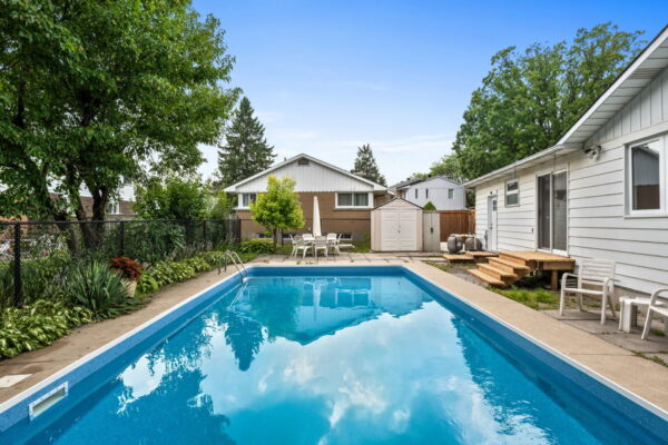 Inside, you’ll find a bright, open-concept layout with hardwood floors that flow through the living and dining areas – perfect for movie nights or lazy Sunday mornings by the stone-surround gas fireplace. The spacious eat-in kitchen makes weeknight dinners and weekend baking with the kids a breeze, with easy access to the backyard for summer BBQs and poolside entertaining. All three bedrooms are generously sized, including a refreshed main bath and a primary suite that offers a private 2-piece en-suite and direct walk-out access to the backyard – ideal for post-swim towel runs or quiet morning coffee by the pool. Downstairs, the finished lower level adds even more versatility: a massive rec room for games, movies, or a home gym, plus laundry, a second full bath, and plenty of storage for life’s extras. Outside is where the magic happens – a private, fully fenced yard with a sparkling inground pool, deck, and tons of room to relax, play, and make memories. Recent updates mean you can move in worry-free: new flooring (2025), fresh paint (2025), pool liner & sand filter (2025) furnace (2024), fence (2022), roof (2013), and more. Whether it’s backyard BBQs, beach days at Mooney’s Bay, or quick downtown commutes, this home delivers it all – comfort, connection, and endless family fun.