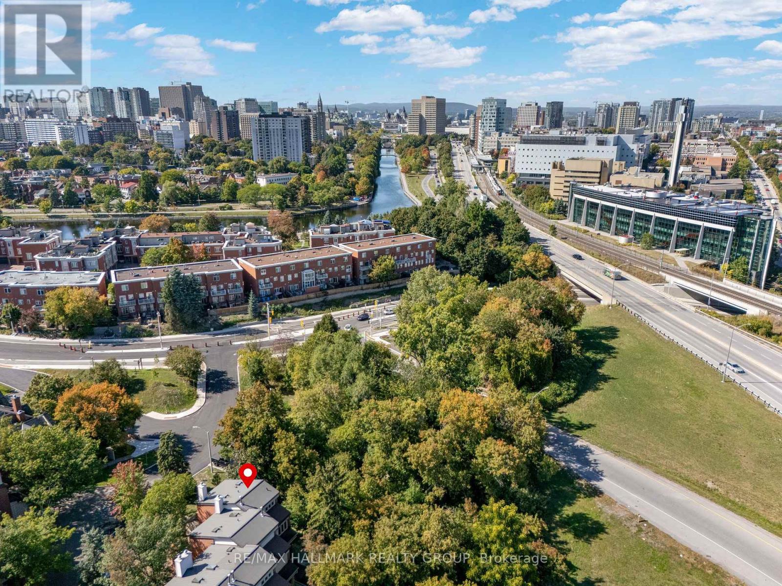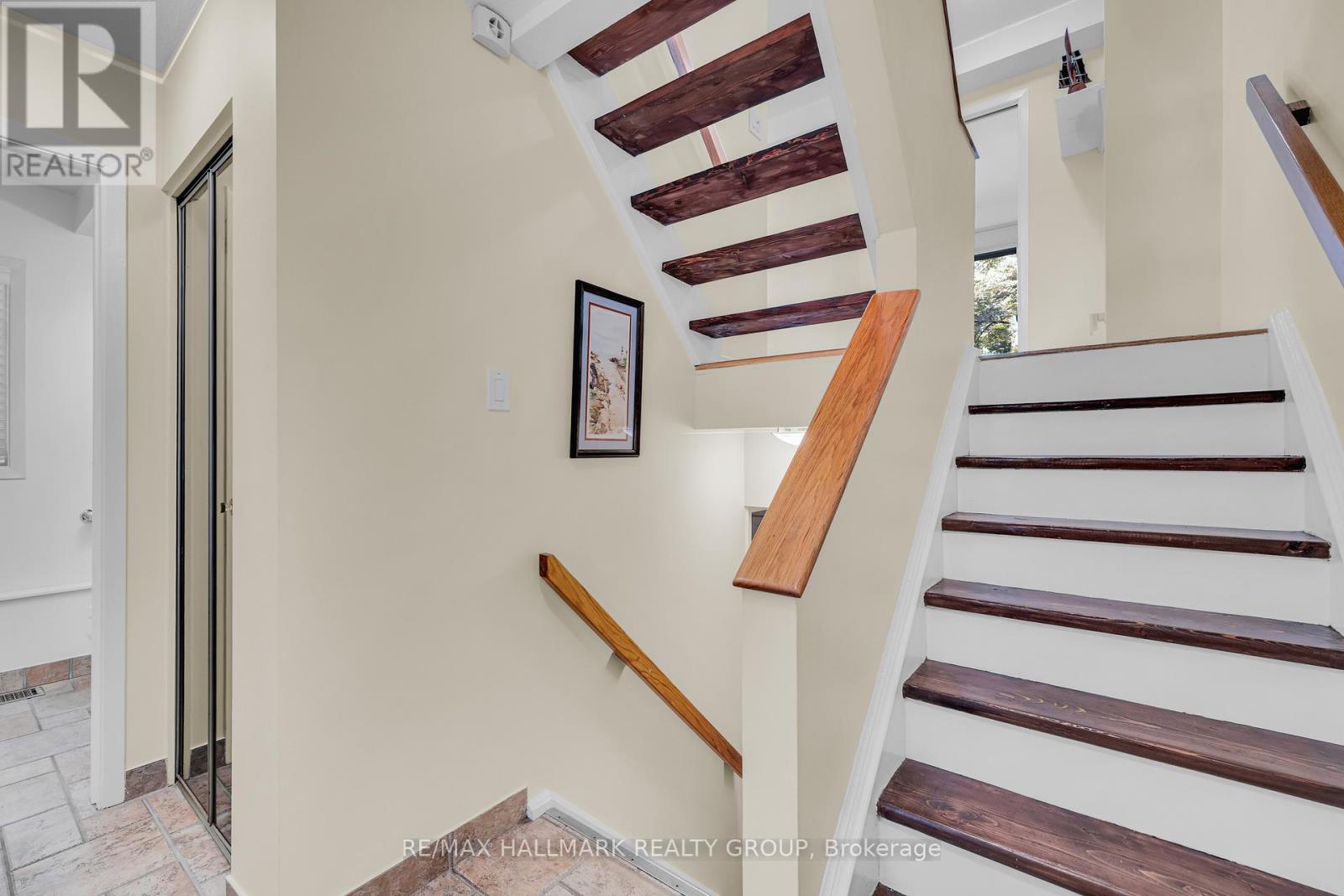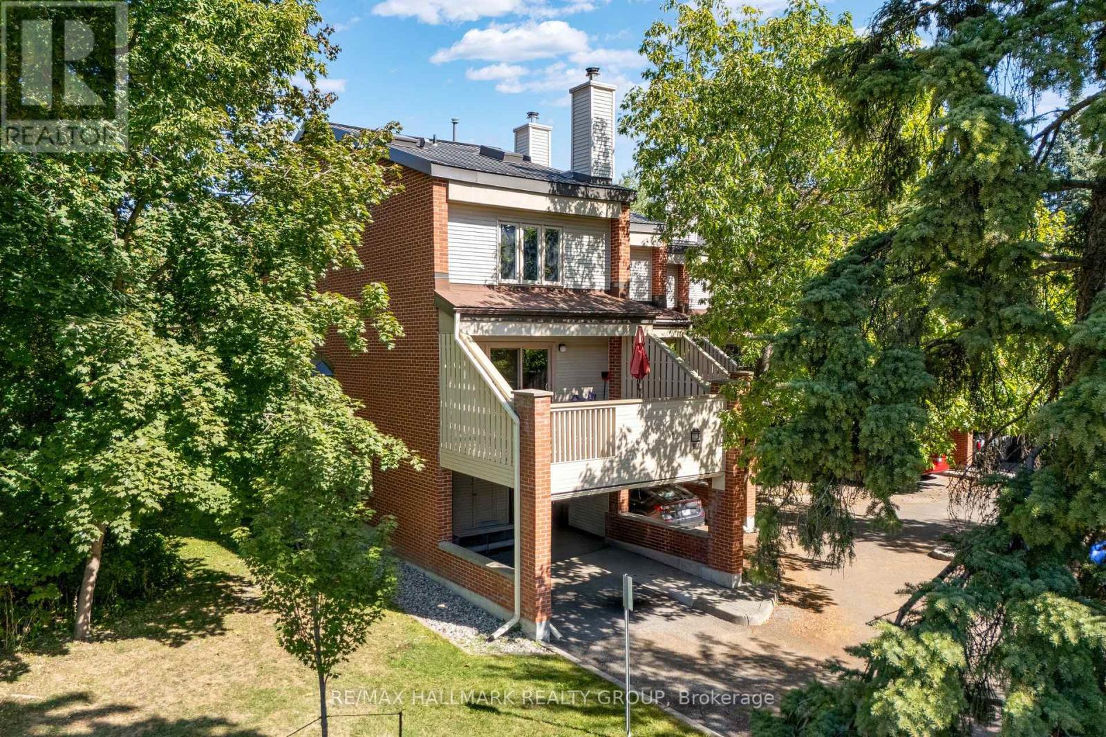 Welcome to 1-60 Greenfield -- Steps from the Rideau Canal and minutes to downtown, this 3-bed, 3-bath multi-level end-unit townhome blends city convenience with rare privacy, all while backing onto trees with no rear neighbours. Inside, the bright U-shaped kitchen boasts newer appliances (2022-2025), stone countertops and backsplash, an induction stove, a corner sink, and a large window overlooking the yard and trees. Natural hardwood runs through the dining and upper levels, complemented by shutters in the dining room. The living room features a fireplace and patio doors to a spacious terrace above the carport - perfect for hosting all season long. The private levels provide flexibility: a primary with an ensuite (corner shower), a skylit 4-piece bath with a jacuzzi tub and updated tile tub surround beside the second bedroom, and a third bedroom at the top, currently used as an additional lounge. The lower level expands the home with a full laundry room, walk-in workshop, storage, and a bonus room ideal as a gym, office, family room, or guest suite. Major systems are updated with a furnace & AC (2018). All this is just a stone's throw to the Canal, with quick in-and-out city access, and surrounded by shopping, dining, and recreation, a rare balance of downtown living and peaceful retreat. (id:49712)