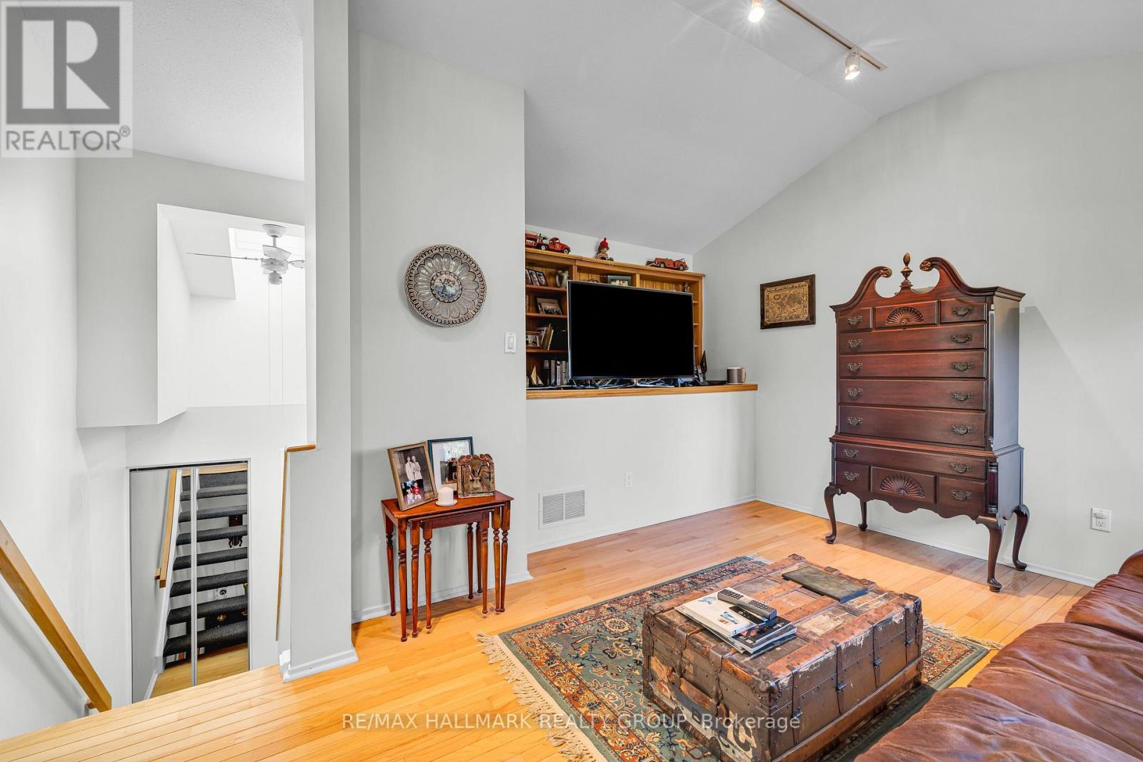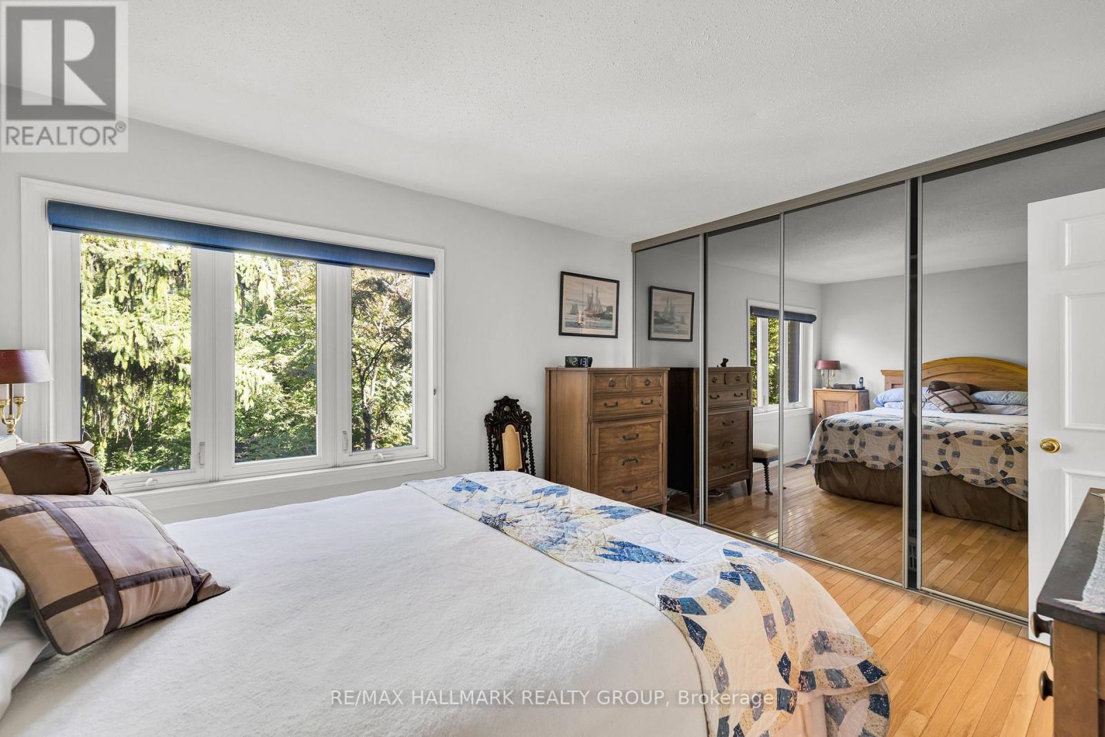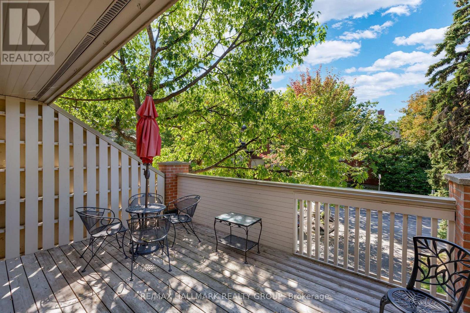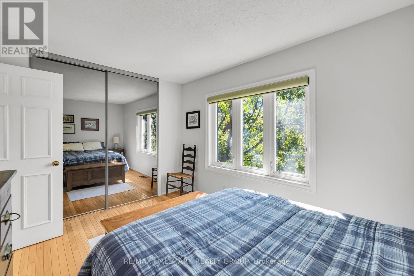 Welcome to 1-60 Greenfield -- Steps from the Rideau Canal and minutes to downtown, this 3-bed, 3-bath multi-level end-unit townhome blends city convenience with rare privacy, all while backing onto trees with no rear neighbours. Inside, the bright U-shaped kitchen boasts newer appliances (2022-2025), stone countertops and backsplash, an induction stove, a corner sink, and a large window overlooking the yard and trees. Natural hardwood runs through the dining and upper levels, complemented by shutters in the dining room. The living room features a fireplace and patio doors to a spacious terrace above the carport - perfect for hosting all season long. The private levels provide flexibility: a primary with an ensuite (corner shower), a skylit 4-piece bath with a jacuzzi tub and updated tile tub surround beside the second bedroom, and a third bedroom at the top, currently used as an additional lounge. The lower level expands the home with a full laundry room, walk-in workshop, storage, and a bonus room ideal as a gym, office, family room, or guest suite. Major systems are updated with a furnace & AC (2018). All this is just a stone's throw to the Canal, with quick in-and-out city access, and surrounded by shopping, dining, and recreation, a rare balance of downtown living and peaceful retreat. (id:49712)
