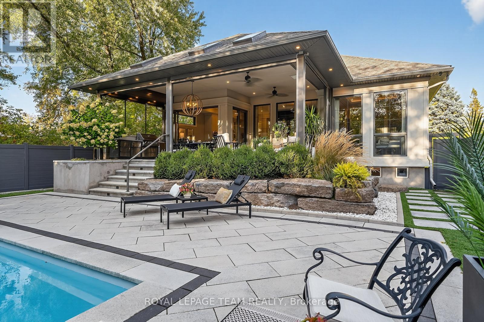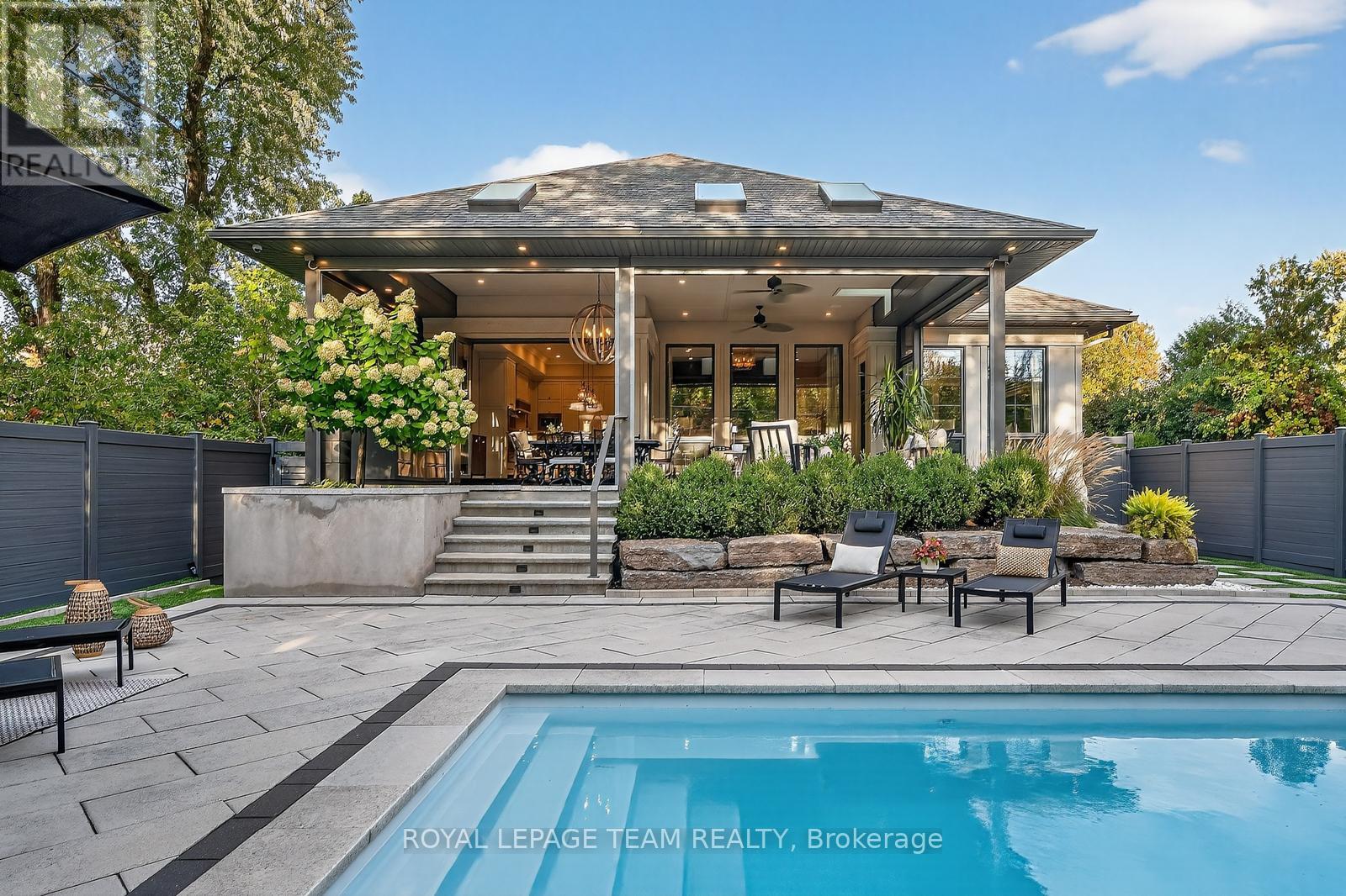 Nestled on a mature, tree-lined street, this residence is a true masterpiece that redefines luxury living in central Ottawa. This custom four-bed, five-bath architectural bungalow blends California cool with Provençal charm, offering rare serenity just minutes from The Glebe, Westboro, and Little Italy. Inside you will find soaring ceilings, floor-to-ceiling windows, distinguished craftsmanship and curated finishes to set a tone of effortless sophistication. The chefs kitchen flows seamlessly into a stylish open-concept living space and covered outdoor lounge, complete with built-in BBQ, motorized screens and fibreglass dipping pool. The primary suite is pure indulgence, with spa-style ensuite and oversized walk-in closet. A glass staircase leads to a lower level with a sleek rec room, wine cellar, gym, and two ensuite bedrooms with private access. No detail was overlooked in the design and build of this exquisite custom home - elevated, timeless, and functional. A rare opportunity to own a one-of-a-kind luxury home where design and lifestyle meet in perfect harmony. Urban living, reimagined. (id:49712)