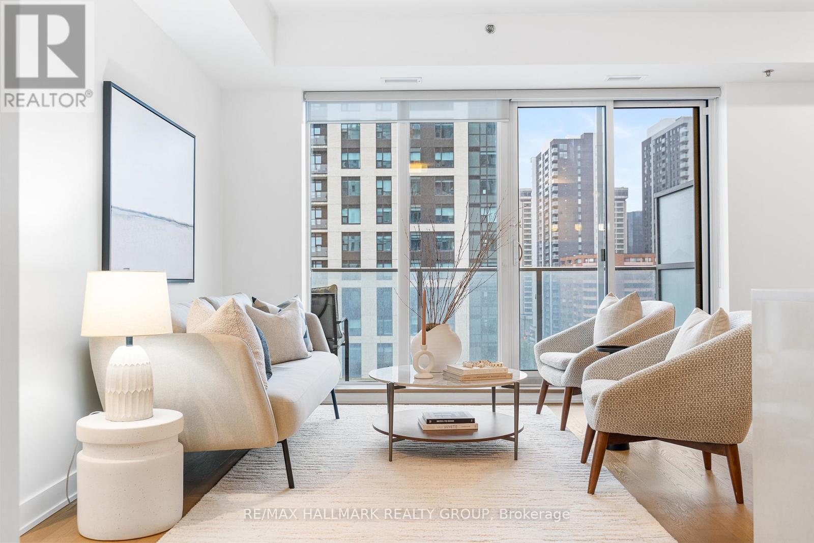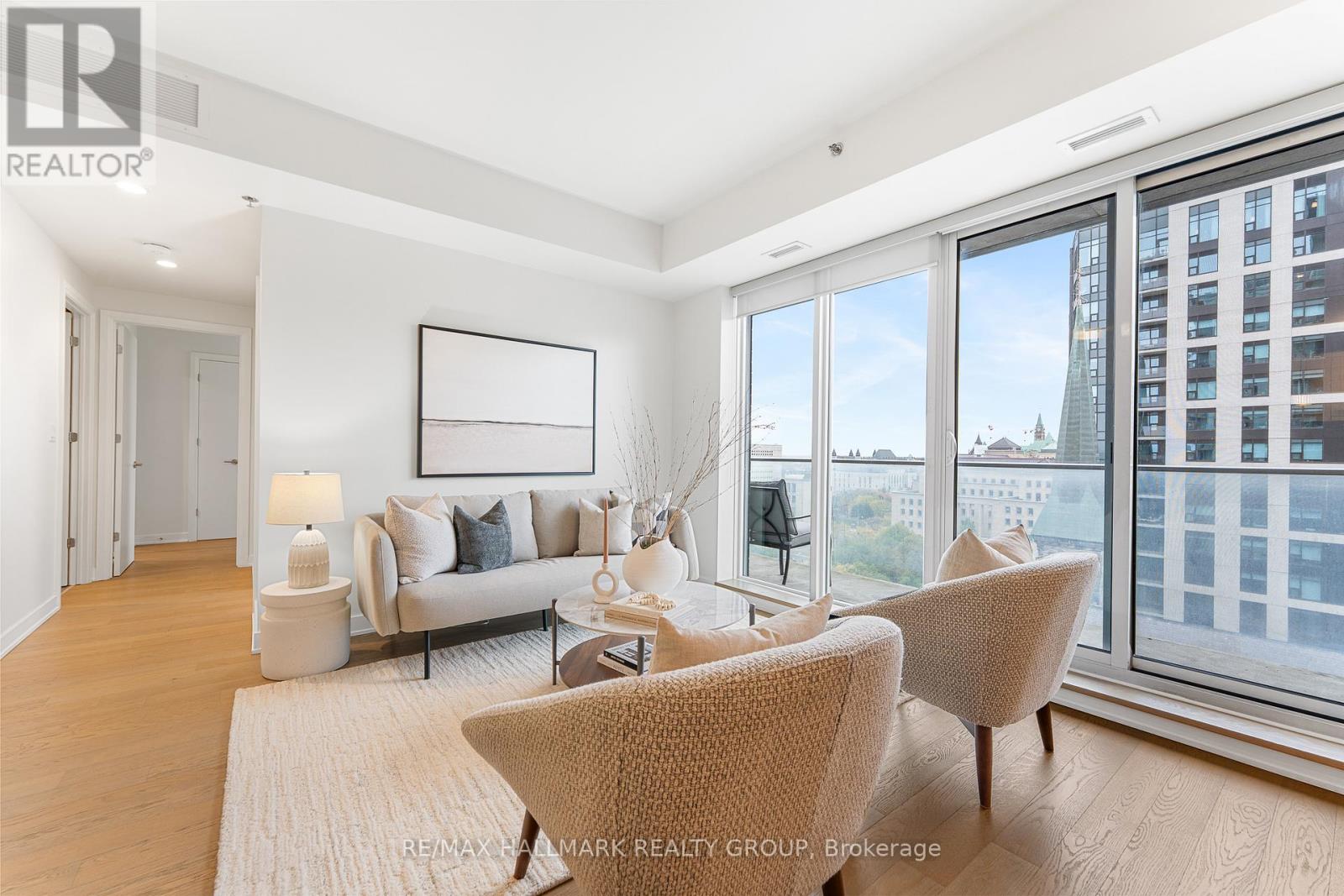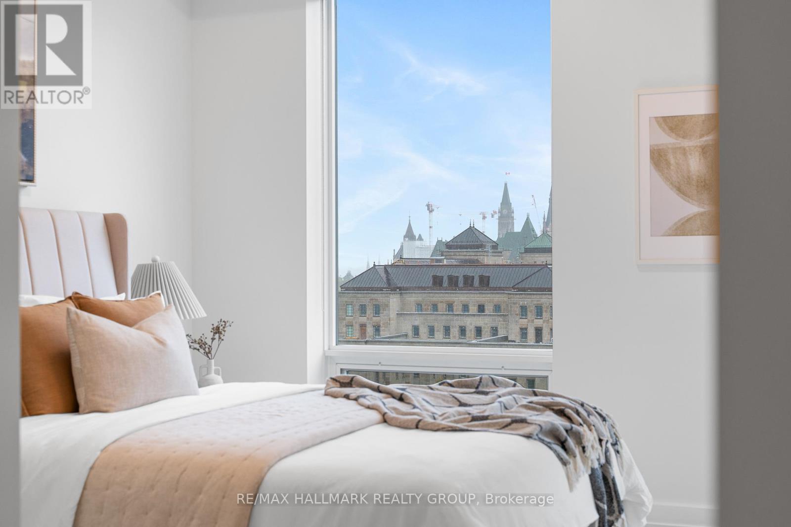 $1,104.89 MonthlyWelcome home to Cathedral Hill - where luxury meets lifestyle in the heart of Ottawa! Discover this spectacular two bedroom, two FULL bathroom condo perched high on the 10th floor at 428 Sparks Street. Offering breathtaking views of the Ottawa River, downtown skyline, Gatineau Hills and Parliament, this condo delivers a daily dose of inspiration from sunrise to sunset. Inside, an airy open-concept layout is bathed in natural light from floor-to-ceiling windows, complemented by rich hardwood floors throughout. The designer European kitchen is a true showpiece - featuring mosaic backsplash, two-tone cabinetry with integrated lighting, built-in appliances, and a stylish island with breakfast bar - perfect for morning coffee or entertaining guests.The elegant Primary Bedroom boasts a spacious walk-in closet and a spa-inspired ensuite complete with a glass shower AND deep soaker tub. A generous second bedroom, full main bathroom, and in-suite laundry add comfort and convenience to everyday living. Perfect for hosting guests, families or even an at home office, if desired. Step out onto your private balcony to take in panoramic city and river views - the perfect setting to unwind after a long day. This condo also comes with secure underground parking and a full storage locker. This is luxury living in an environmentally friendly LEED certified building! Residents of Cathedral Hill enjoy access to premium amenities including a fitness centre, yoga studio, party room, pet wash station, and concierge service. All this in an unbeatable downtown location - only steps to the Lyon LRT station, Lebreton Flats, Parliament Hill, the ByWard Market, and so much more. Experience upscale urban living at Cathedral Hill - urban luxury at its finest! Come fall in love today. (id:49712)