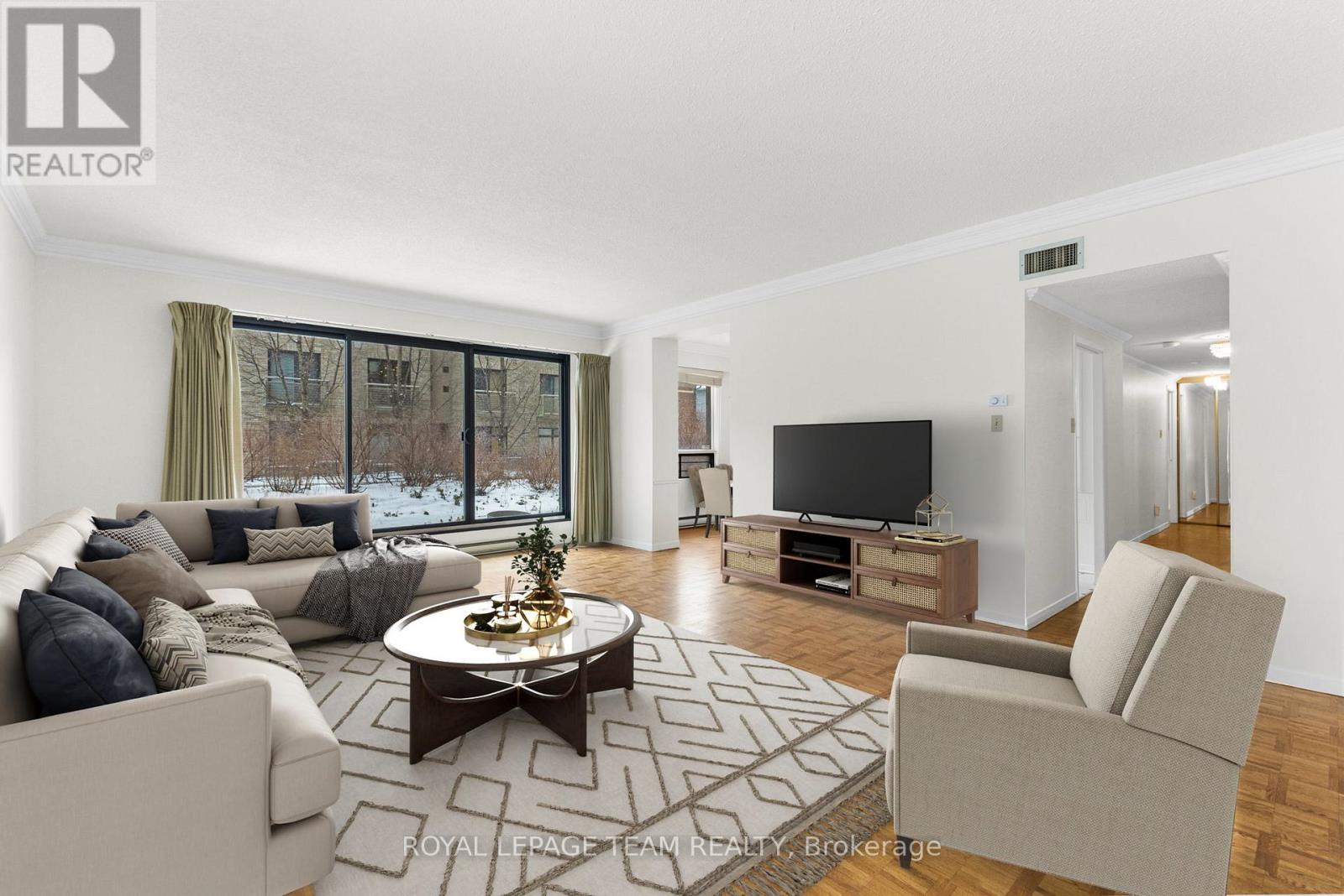 Welcome to 20 The Driveway - a rarely offered ground-floor condo in one of Ottawa's most coveted locations. This well maintained and freshly painted 2-bedroom, 2-bath unit offers generous living space and an easy, low-maintenance way of life. The standout feature is the large walk-out terrace - a peaceful, private outdoor space that feels like an extension of your living room. Perfect for gardening, relaxing with a book, or hosting family and friends, it provides the charm of a backyard without any of the upkeep. Inside, the thoughtful layout includes a spacious living/dining area, a functional kitchen, two well-sized bedrooms, and two full bathrooms - ideal for hosting guests or creating a dedicated hobby or office space. The unit also includes underground parking, offering year-round comfort and convenience. Just steps from the Rideau Canal, you'll enjoy all-season recreation - morning walks, scenic bike rides, or winter skating - right at your doorstep. The Glebe, Elgin Street, Lansdowne, and local cafés and shops are all a short stroll away, making it easy to stay connected to the neighbourhood and the city's best amenities. This ground-floor terrace unit is an ideal next chapter for those looking to simplify without compromising on lifestyle. (id:49712)