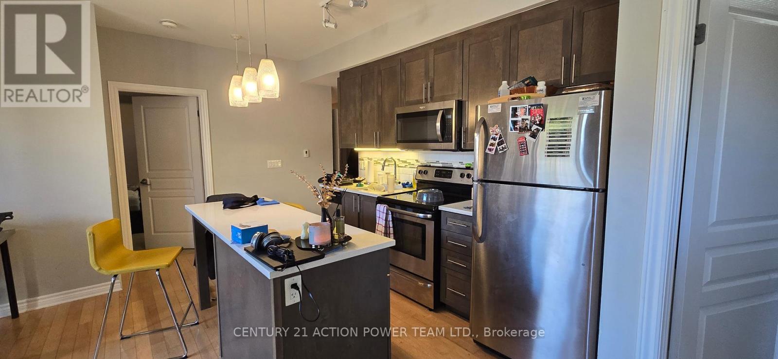 $573.48 MonthlyPrime location !!! This modern two bedroom two bathroom corner unit in the Brownstones at Cyrville is just over 800 square feet, has updated finishes including quartz countertop, hardwood floors , eat on kitchen island, stainless steel appliances ample storage, in unit laundry, three-piece ensuite bathroom in the primary, living room and office/dining area which opens to private closed in balcony. Building has a separate locker, elevator and bike room. Pet friendly, clean and well managed. Conveniently located close to everything, steps from the o-train, minutes to downtown , close to coffee shops, St Laurent Shopping Center, Gloucester Center, movie theater, Costco, a wide variety of restaurants and parks. Green Space just out front of the building. Move in and enjoy or invest and profit. (id:49712)