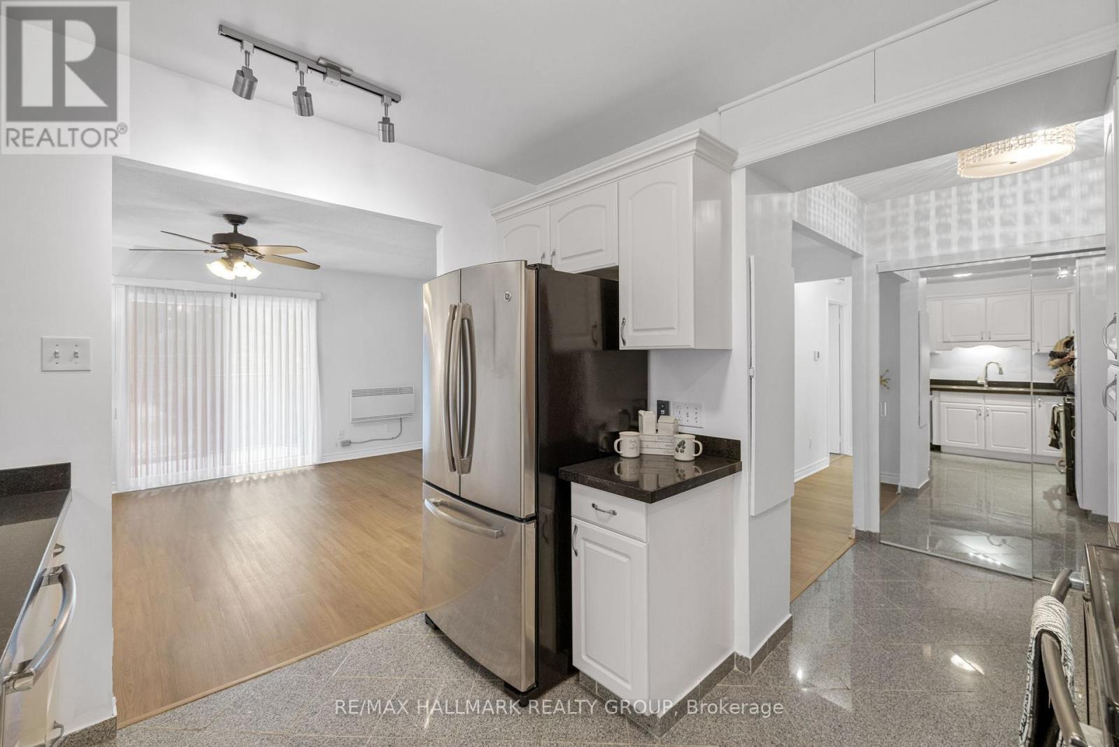 Rarely offered ground-floor 2 bedroom, 2 bathroom condo with solarium in the highly sought-after Atriums of Kanata. This bright and modern unit offers unbeatable accessibility with no elevator required and direct outdoor access from the solarium, perfect for walkers, wheelchairs, or anyone seeking a low-maintenance lifestyle. Enjoy peaceful, views of the private forest from every window and avoid the summer heat with your North West facing unit. The spacious floor plan includes a large living and dining area, a renovated kitchen with granite counters and stainless steel appliances, updated bathrooms, and in-unit laundry. The primary bedroom features a 3-piece ensuite and double closets, while the second bedroom works beautifully for guests or a home office. Recent upgrades include new windows (2023), new heat pump (2024), fresh paint, updated flooring, lighting, and more. The solarium provides a cozy retreat to snuggle up with a book or to get some fresh air. This well-managed and quiet building offers resort-style amenities: outdoor pool, BBQ area, tennis and squash courts, fitness centre hot tub, library, party room, workshop, bike storage, and forest walking trails. Includes indoor parking and an large storage locker. Cat-friendly building with no dogs or smoking as per condo rules. A rare opportunity for ground-level condo living in a vibrant, amenity-rich, adult-friendly community close to shopping, transit, parks, and green space. Immediate Occupancy available! *Some photos have been virtually staged. Schedule B must be included with all offers see attachment's. Rental application, credit report, pay stubs, and proof of employment must be submitted with the application. Immediate possession available, Please give MIN 72 hours irrevocable for landlord to review the applications (id:49712)