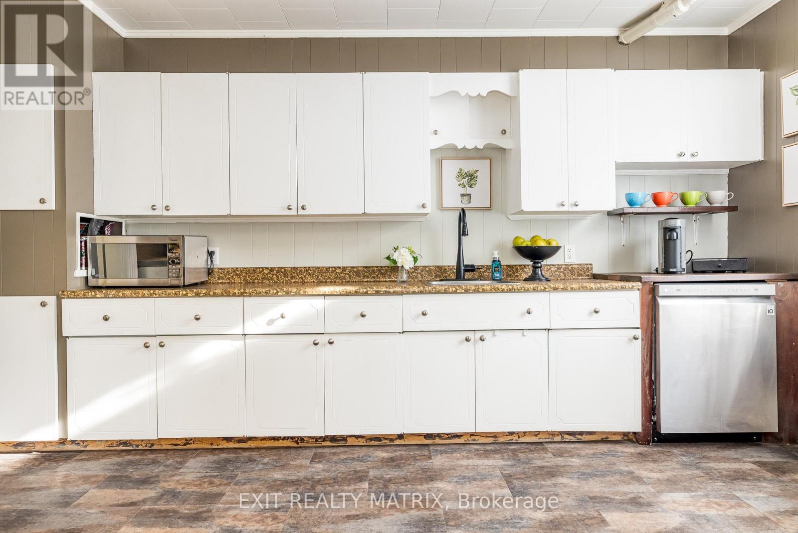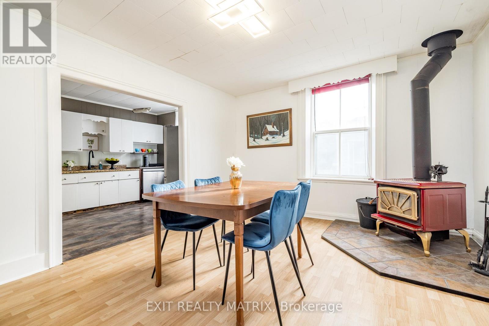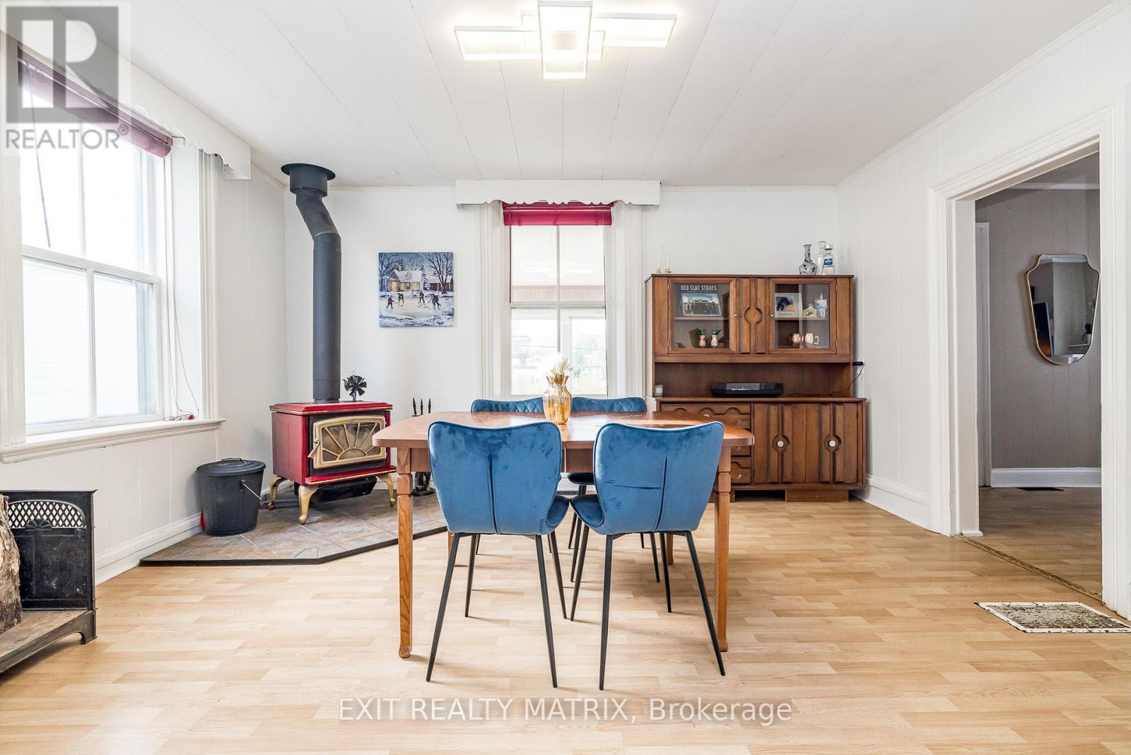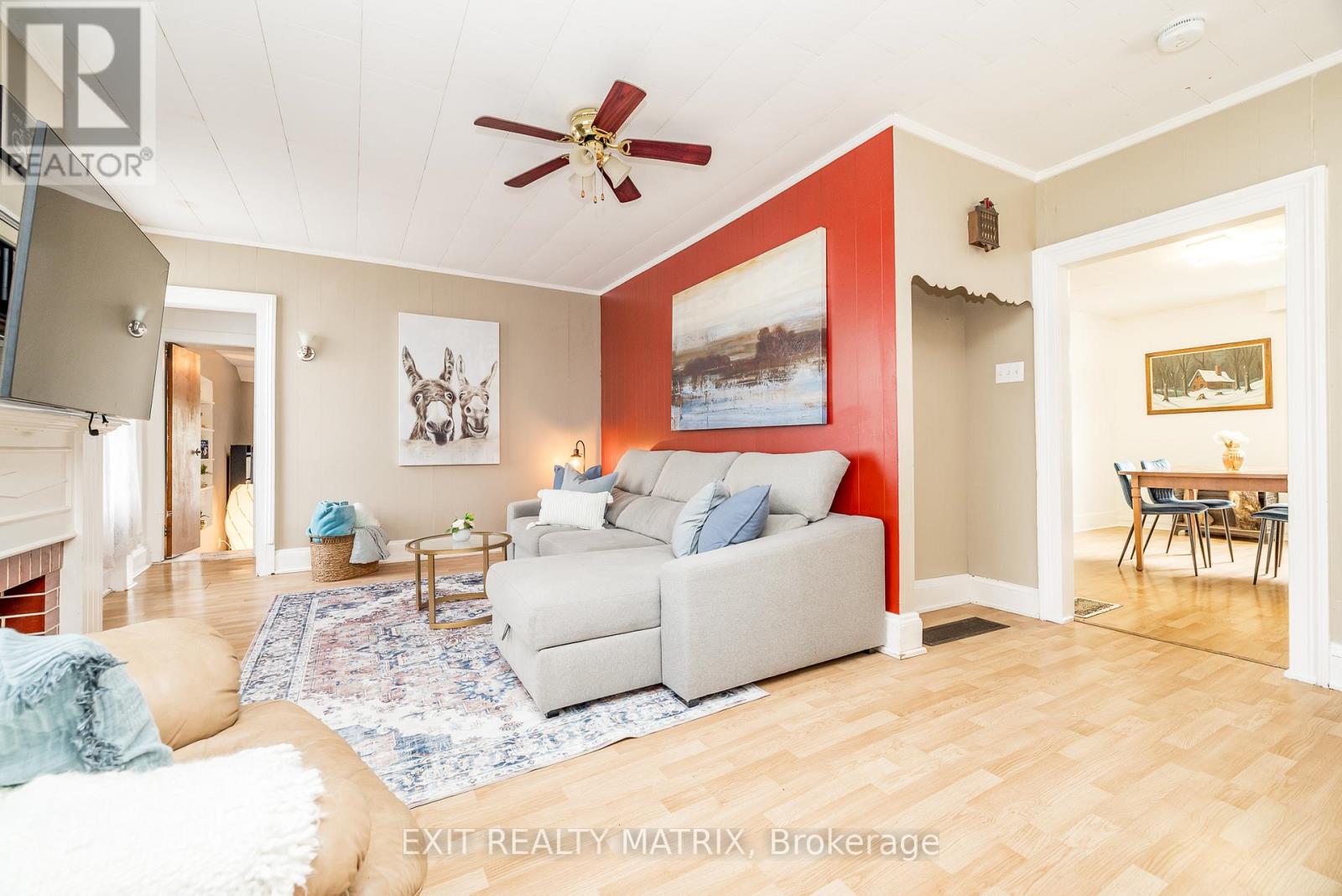 Welcome to 107 George Street - a warm and inviting home that perfectly blends rustic character with modern updates. Set in the heart of Lanark Highlands, just minutes from Perth and an easy commute to Ottawa via Highway 7, this property offers both tranquility and convenience.This spacious 3+1-bedroom home features a long, bright enclosed front porch with endless potential - a perfect spot to relax or transform into a cozy sunroom or creative space. Inside, the main floor offers a generous layout with a charming dining area anchored by a beautiful wood stove, a versatile bonus room ideal for an office, hobby space, or guest bedroom, and a large main-floor bathroom featuring a deep spa-like tub, separate glass shower, and convenient laundry area.Recent updates include a new steel roof (2020), a new Ecoflow septic system (2020), and board-and-batten siding (2025). The furnace was replaced in 2015, ensuring peace of mind for years to come.Step outside to enjoy the large back deck overlooking the private yard - perfect for entertaining, gardening, or simply taking in the quiet surroundings. There's also plenty of storage in the exterior barn and garage, providing ample room for tools, equipment, or recreational gear. Outdoor enthusiasts will love the nearby boat launch and easy access to the Clyde River and the Mississippi, ideal for fishing, kayaking, or weekend adventures.With its country charm, thoughtful updates, and proximity to Perth and the highway, 107 George Street is the perfect blend of comfort, character, and location - ready for you to make it your own. 24 hours irrevocable on all offers. (id:49712)