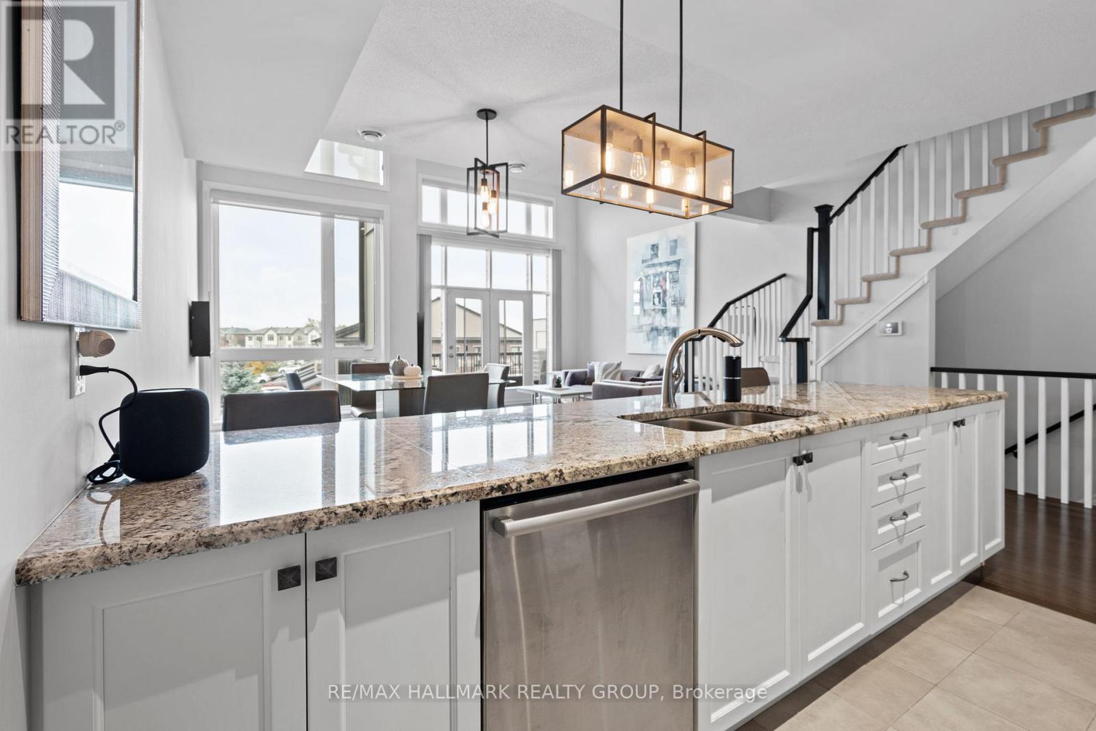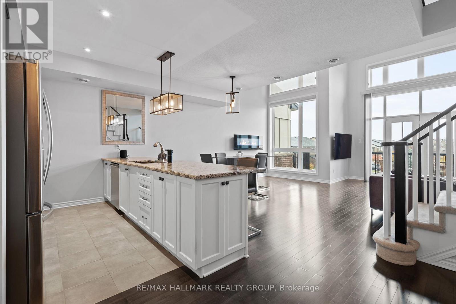 $522.83 MonthlyWelcome to 109 Poplin Street in sought-after Riverside South. This stylish townhouse-style condo offers a unique three-level layout with inside access to an oversized garage featuring a brand-new automatic door opener and excellent additional storage space, plus a tandem parking spot outside for added convenience. Perfectly positioned with no immediate neighbours in front, this home enjoys both privacy and practicality. Step inside to a welcoming foyer leading up to a bright open-concept main level featuring expansive windows, rich hardwood flooring, and elegant finishes throughout. The modern kitchen is equipped with granite countertops, upgraded cabinetry, stainless steel appliances, and a large island ideal for entertaining. The main level also includes a full bathroom, laundry, and a spacious bedroom with a walk-in closet. The open staircase with contemporary handrails leads to the upper floor with a versatile loft overlooking the living area, perfect for a home office or relaxing retreat. The impressive primary suite features a generous layout, a walk-in closet, and a spa-inspired ensuite complete with dual sinks, a soaker tub, and a separate shower. Enjoy a prime location close to parks, schools, walking trails, grocery stores, restaurants, fitness centres, and everyday conveniences, with easy access to LRT transit. This home offers the perfect blend of comfort, style, and modern living in one of Ottawa's most desirable communities. 24 hour irrevocable on all offers. (id:49712)