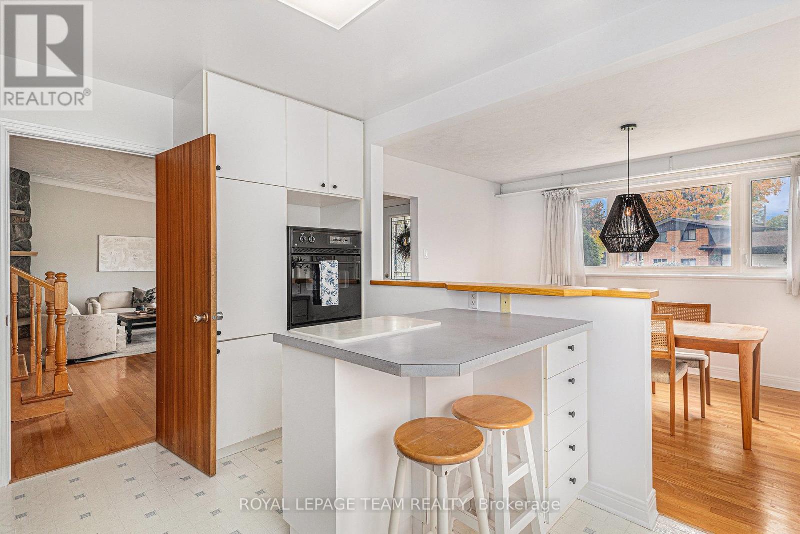 OPEN HOUSE SUNDAY OCTOBER 19th, 2:00pm-4:00pm. Not far from the banks of the Mighty Ottawa River, nestled on a quaint, tree-lined street, there is a mid-century masterpiece just waiting for you! This 3-bedroom, 2.5 bathroom back-split is a rare find, and a perfect blend of modern-meets-vintage design. Vaulted ceilings in the living room, a floor-to-ceiling stone fireplace, solid hardwood flooring throughout the main level and second level (under the carpet in the bedrooms too!). And a rare find a 3pc ensuite in the Primary Bedroom! The open concepted kitchen & dining spaces are perfect for entertaining with built-in pull-out drawers and organizers in the kitchen cupboards and dining hutch for all your seasonal décor and kitchen gadgets. Freshly painted main & second levels in neutral tones. The second bedroom features a built-in office, as well as access to the 3-season solarium and backyard. The fully finished basement features a large rec room space - perfect for movie nights or a games room, with built-in cabinets near the 2pc powder room and laundry room, and tons of extra storage in the crawlspace! Lakeview Park is easily one of the most well connected neighbourhoods in Ottawa; whether you're into bikes along the trans-canada trail, boats at the Nepean Sailing Club, trains via 2 future LRT stops (Moodie / Bayshore) or cars with easy access to the 416/417, this house is perfectly positioned to get you where you need to go! And just a stone's throw from Andrew Haydon Park-- don't miss out on this gem! (id:49712)