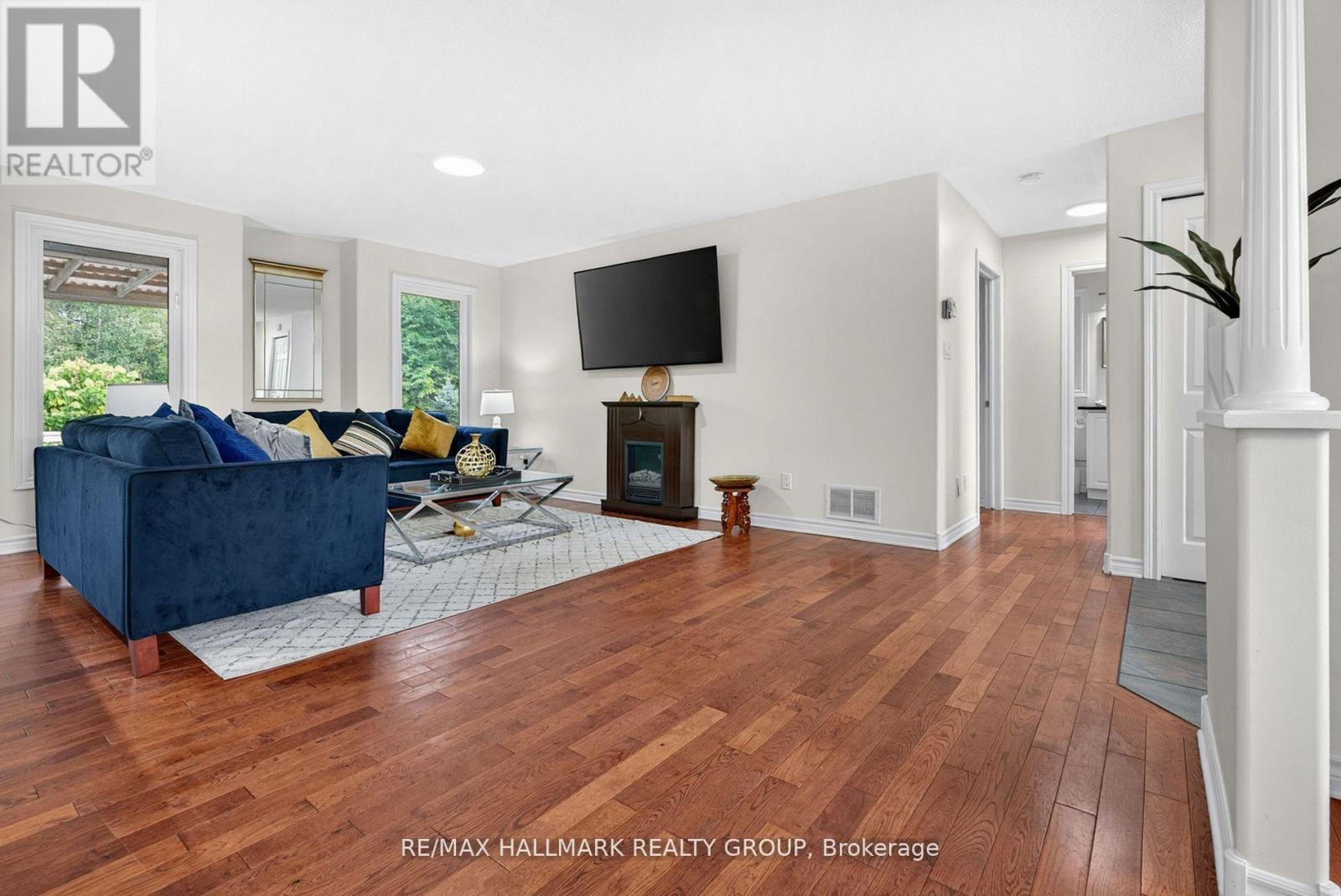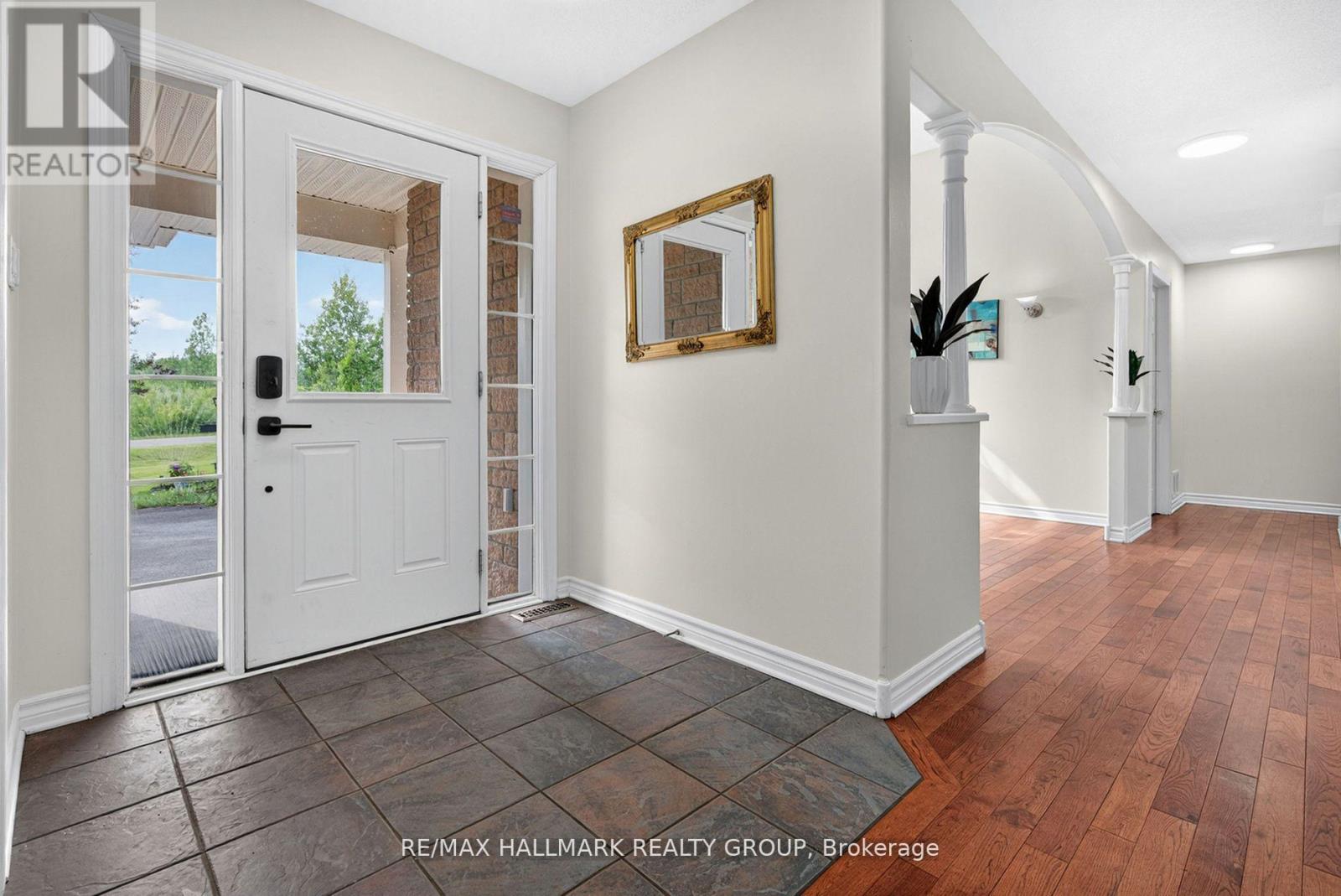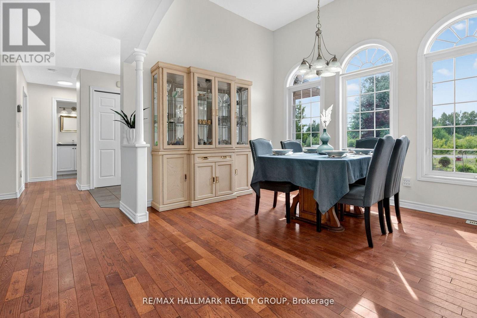 OPEN-HOUSE: Sunday, October 19, 11AM-1PM! Client RemarksExperience refined country living just minutes from the city! This stunning 6-bedroom bungalow sits on a lush, tree-lined 1-acre lot with no rear neighbours, offering the perfect blend of space, elegance, and privacy, ideal for growing families or multigenerational living. Step into the bright, open-concept main level featuring vaulted ceilings, rich hardwood floors, and an abundance of natural light. The gourmet kitchen is a chefs dream with quartz countertops, stainless steel appliances, and a cozy breakfast nook. The spacious dining area opens into a warm, inviting living room, perfect for family gatherings and entertaining. The luxurious primary suite boasts a spa-like 5-piece ensuite with a soaker tub, while two more generously sized bedrooms and a stylish 3-piece bath complete the main floor. Downstairs, the fully finished lower level offers exceptional flexibility with three additional bedrooms (all with oversized egress windows), a modern 3-piece bath, and a large family/rec room. A bonus kitchenette with a full-sized fridge, stove, and island makes it ideal for hosting or future in-law suite potential, especially with the separate entrance by the garage. Outside, enjoy a beautifully landscaped backyard backing onto nature. All of this is just 10 minutes to Kemptville, 20 minutes to Barrhaven Costco, and quick access to Highway 416.This is a rare opportunity to own a truly versatile, upscale home in a peaceful setting. (id:49712)