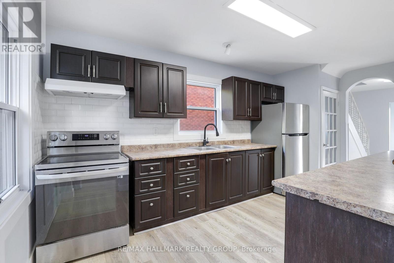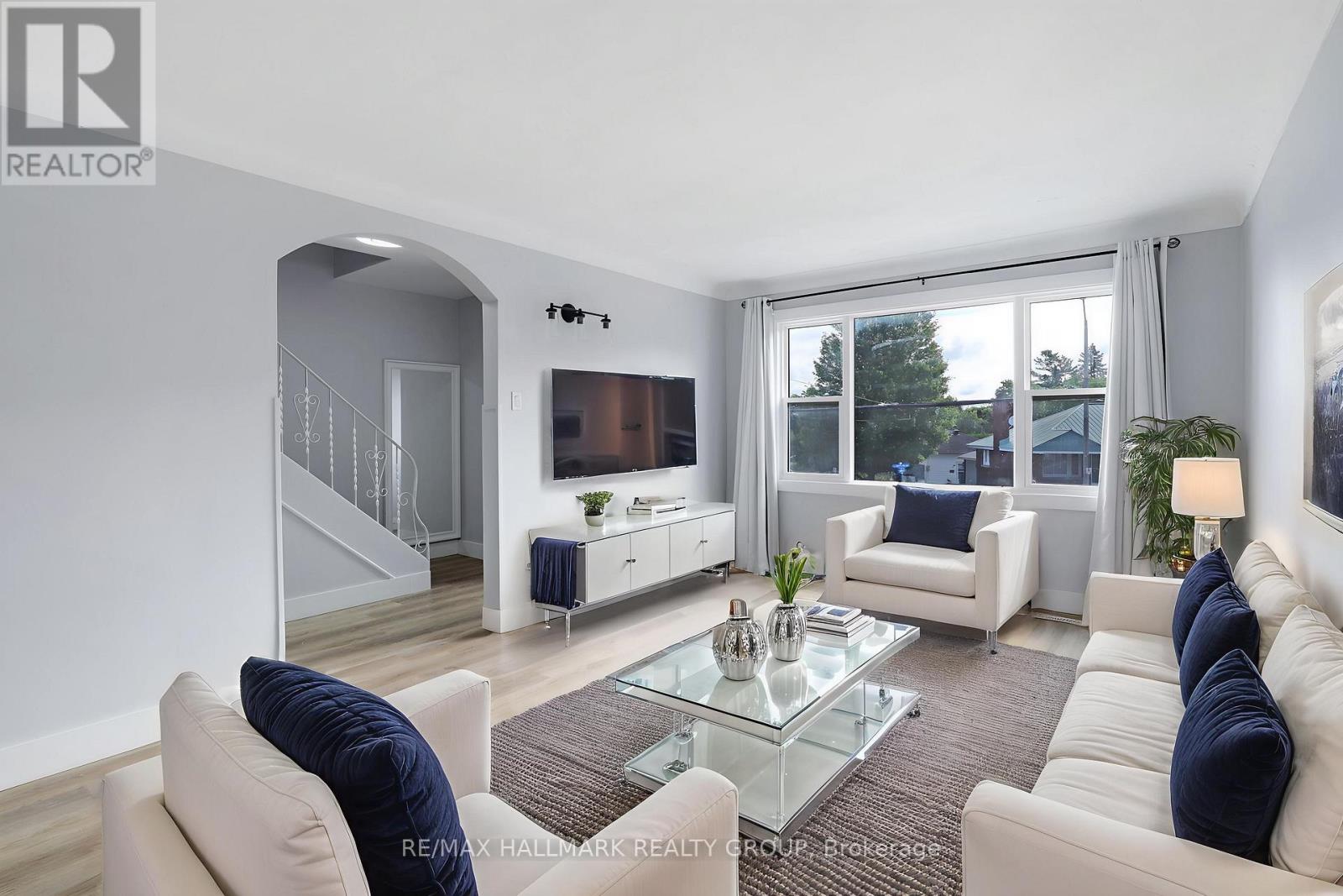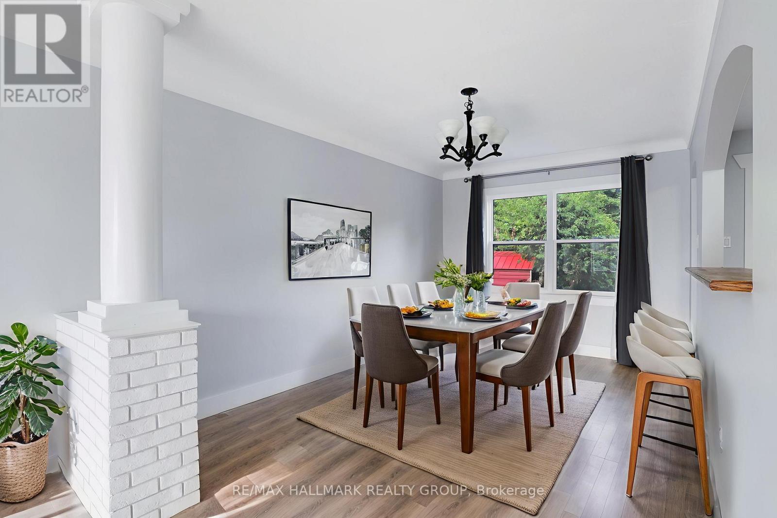 Welcome to 1108 Merivale Road a charming freehold semi-detached home offering space, comfort, and versatility in a central Ottawa location. The main floor features a bright layout with defined living, dining areas and a kitchen that opens to the dining space with a convenient breakfast bar perfect for casual meals or entertaining. Upstairs, you'll find three well-sized bedrooms and a full bathroom. The fully finished basement offers a large rec room and a second full bathroom ideal for guests, a home office, or additional living space. Step outside to enjoy a fully fenced backyard, perfect for summer gatherings or quiet relaxation. A dedicated parking space is included. Located close to transit, shopping, schools, and amenities, this home is a fantastic opportunity for first-time buyers, families, or investors. Key updates include: roof (2018), windows (2018), furnace (2014), main floor hardwood (2023), updated bathrooms (2017), updated kitchen (2017), lighting fixtures (2023), and fully finished basement (2023). (id:49712)