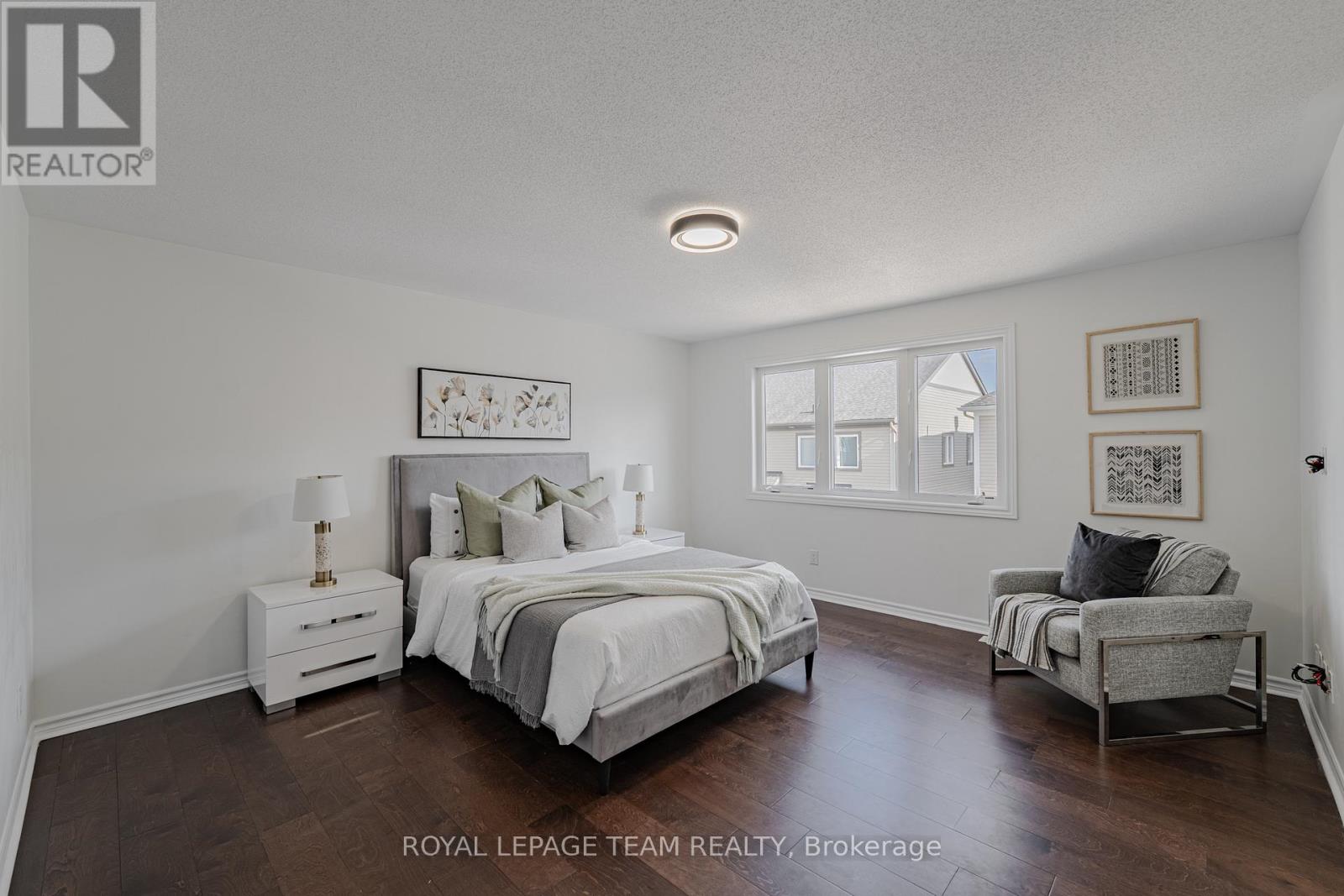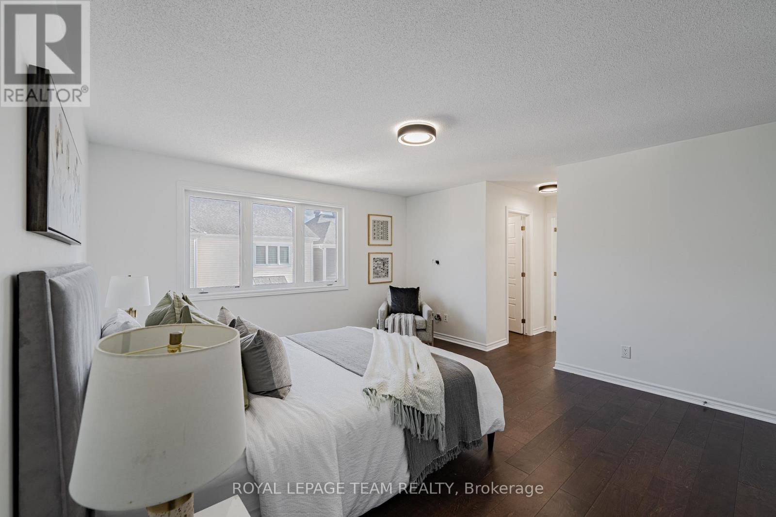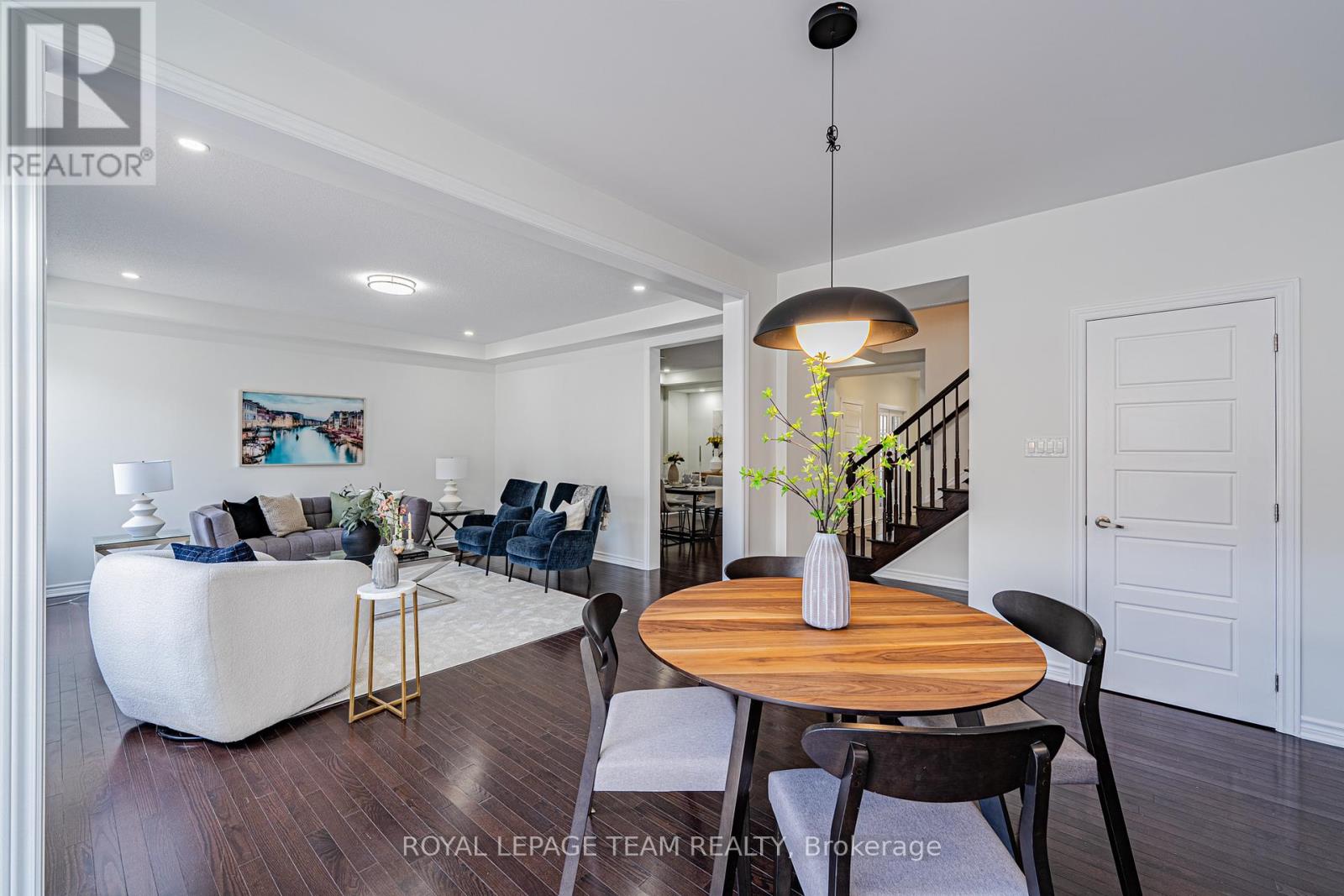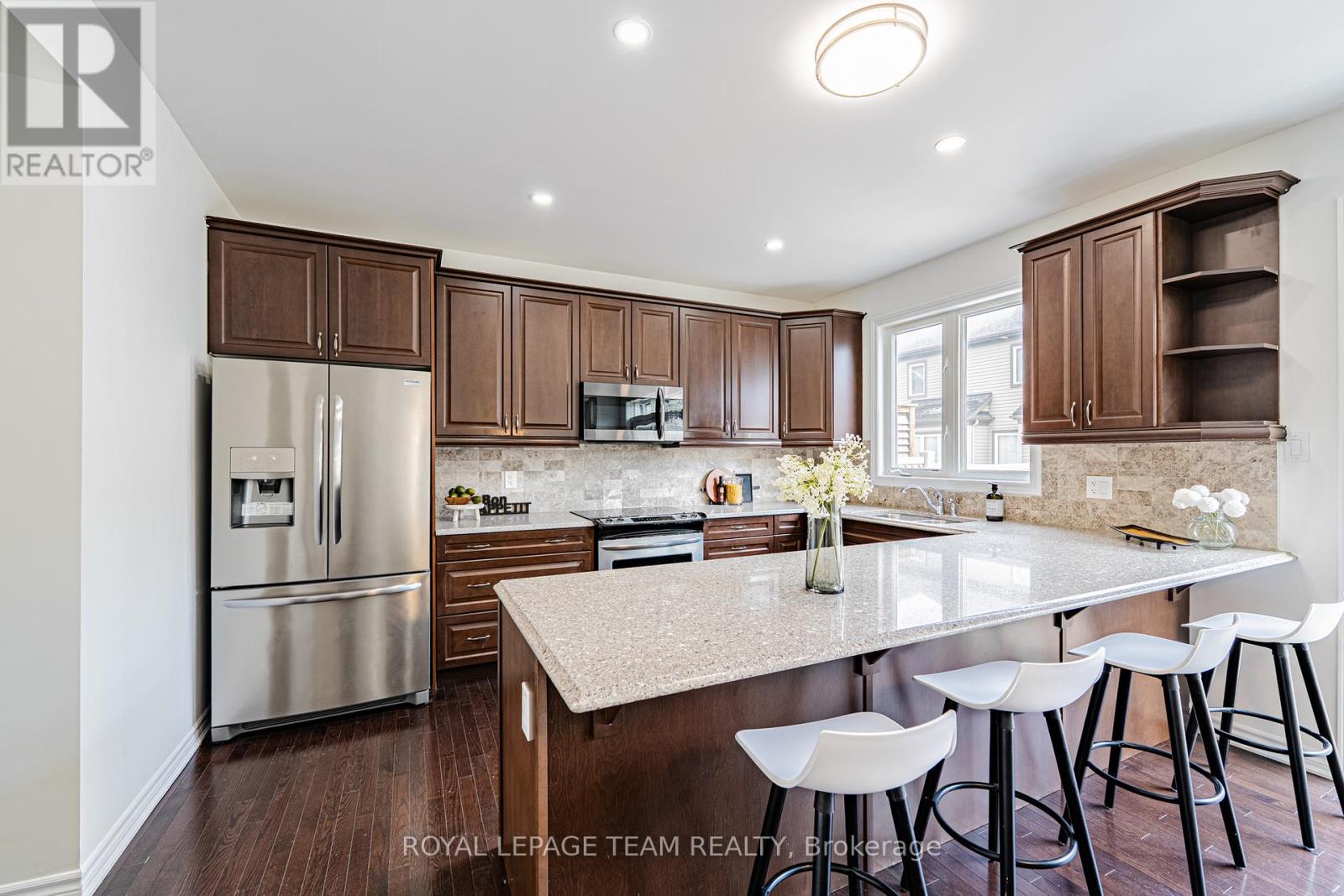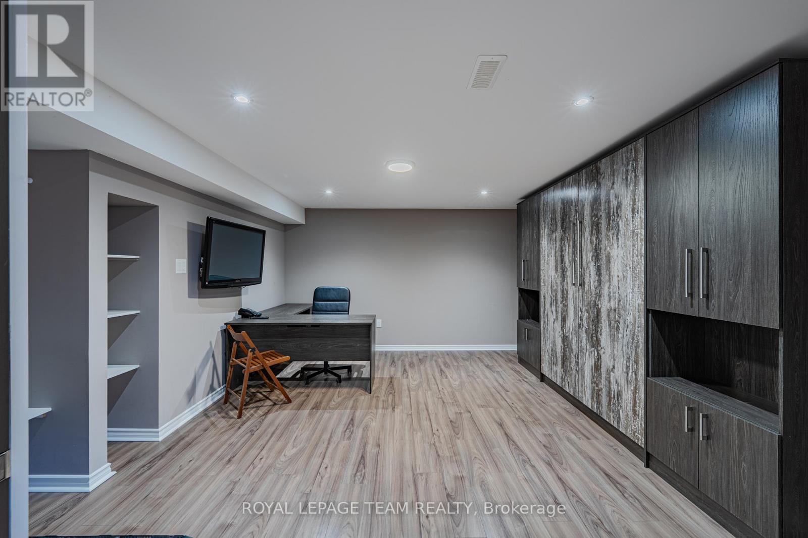 Luxury Living in Kanata South!Discover this stunning single-family home that truly has it all - 3 full bathrooms on the second floor, a fully finished basement with an extra bedroom and bath, complete professional landscaping, and exquisite finishes throughout. Perfectly located in a prime Kanata South neighbourhood close to parks, schools, shopping, and dining.Step inside to a grand, light-filled foyer leading to a beautiful front-facing office with elegant French doors and a custom backlit niche - ideal for working from home. The open-concept main level offers an impressive 36 feet of continuous rear width, with expansive south-facing windows and a large patio slider that fill the home with natural light.The chef-inspired kitchen features an oversized peninsula island, extended-height cabinetry, stainless steel appliances, ample storage, and a walk-in pantry. Hardwood floors, flush vents, hardwood stairs, and a statement fireplace with granite surround add warmth and sophistication. A spacious powder room, walk-in closet, and double-car garage complete the main floor.Upstairs, the luxurious primary suite boasts dual walk-in closets and a spa-like ensuite with a corner shower, jacuzzi tub framed by corner windows, dual sinks, and a private water closet. Three additional bedrooms are served by a second ensuite and a Jack-and-Jill bath. A full laundry room, walk-in linen closet, and hardwood throughout complete this level.The finished basement offers a home theatre area, fifth bedroom or second office, wet bar with fridge and sink, and another full bathroom - perfect for guests or entertaining.Fully landscaped and steps from the Monahan Drain greenspace, this exceptional home combines luxury, comfort, and convenience in the heart of Kanata South. (id:49712)