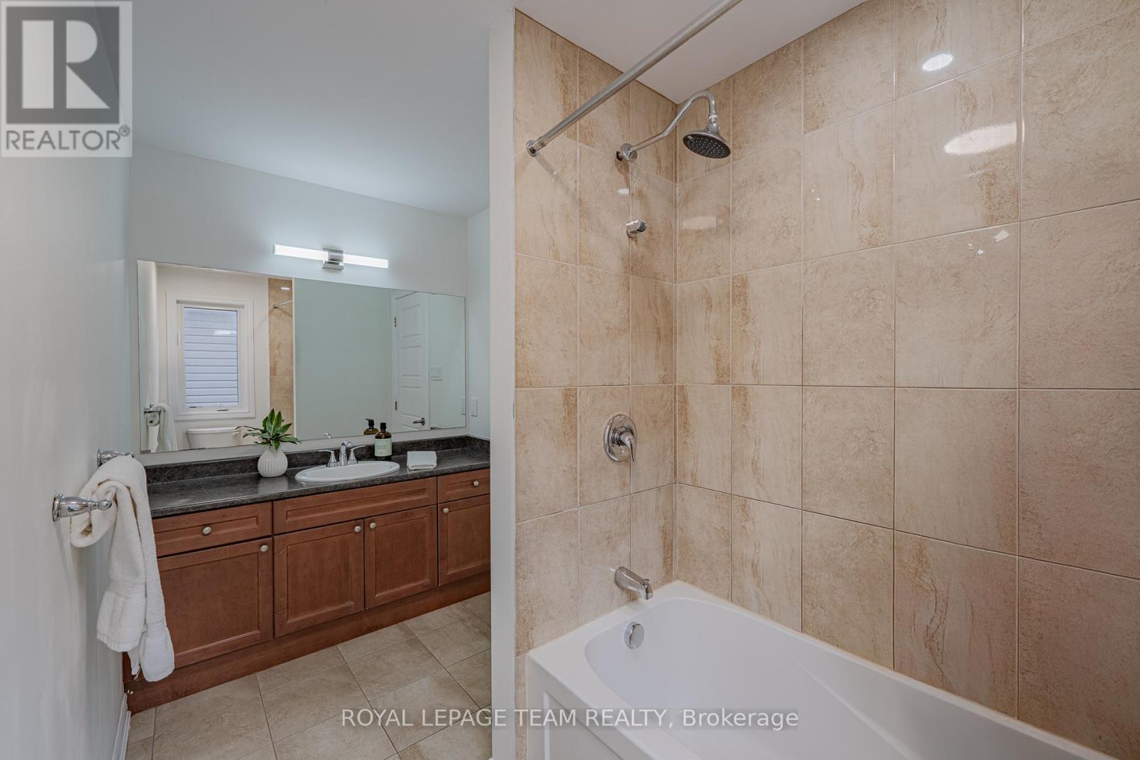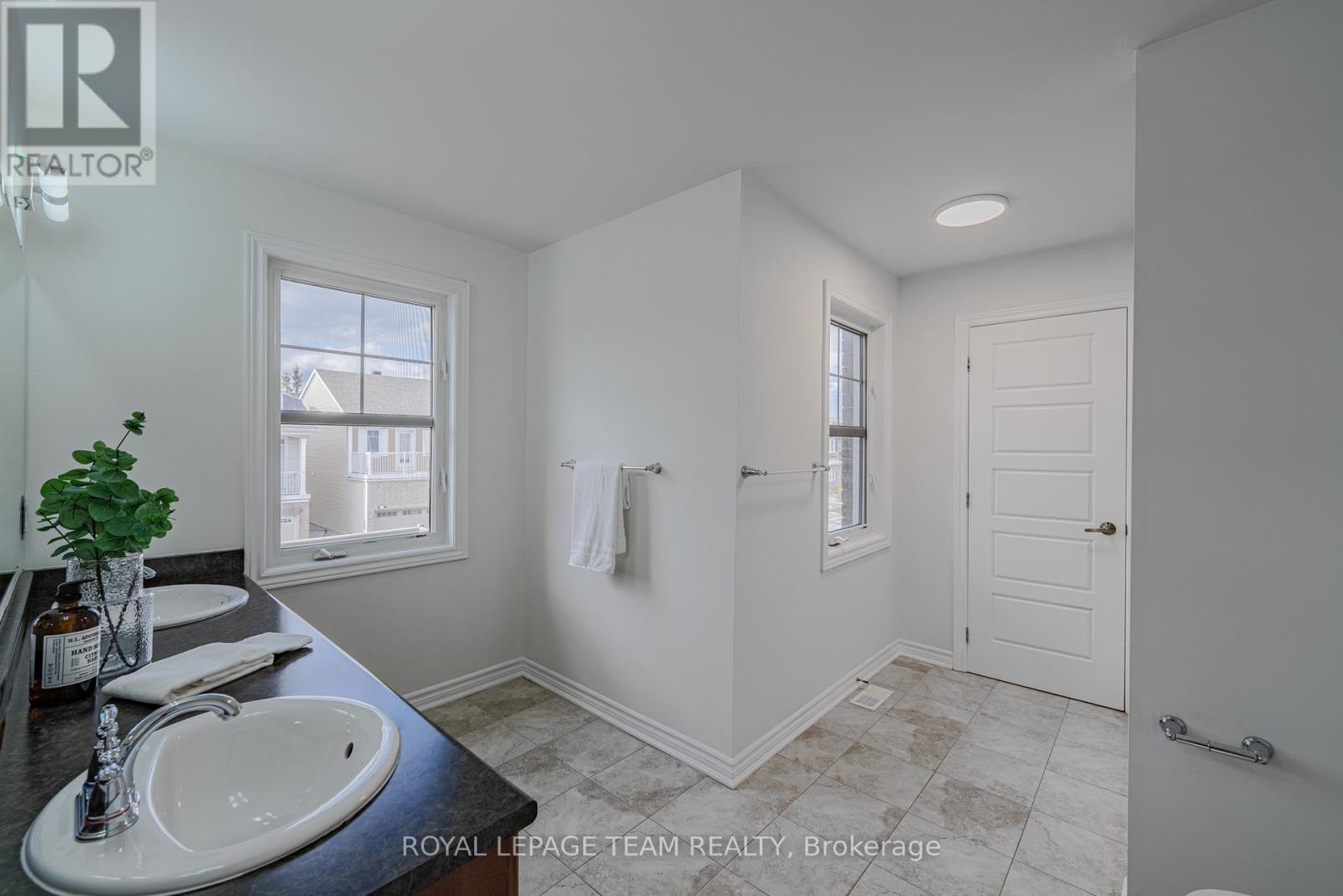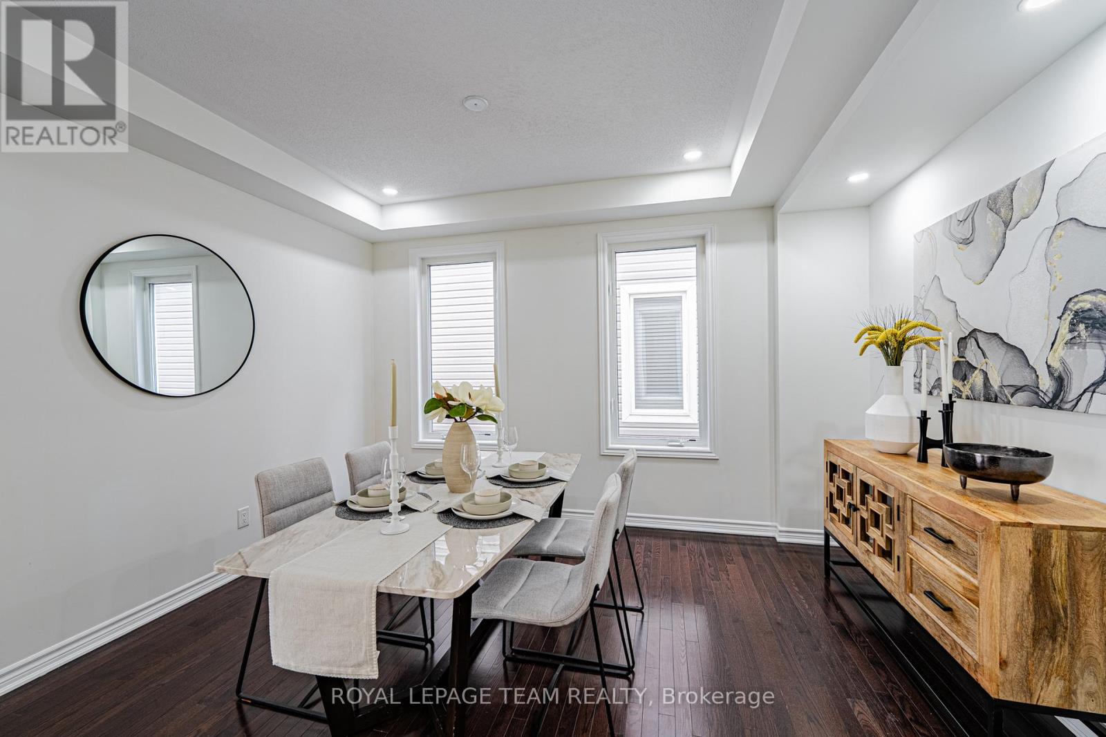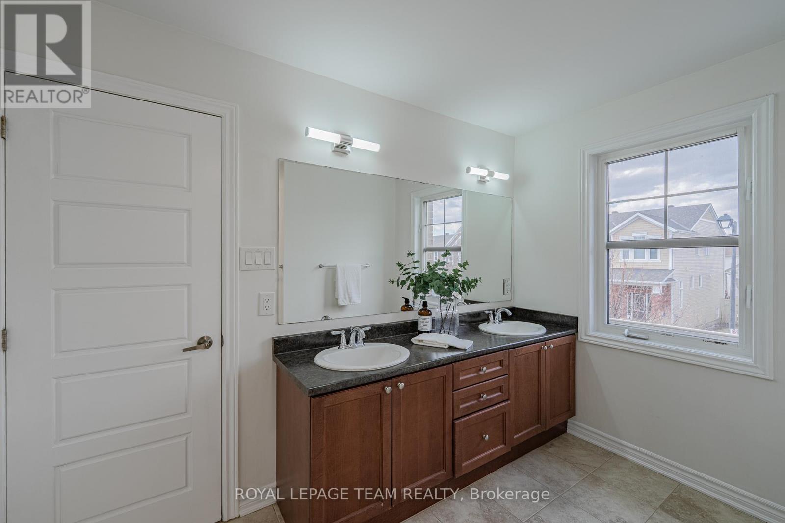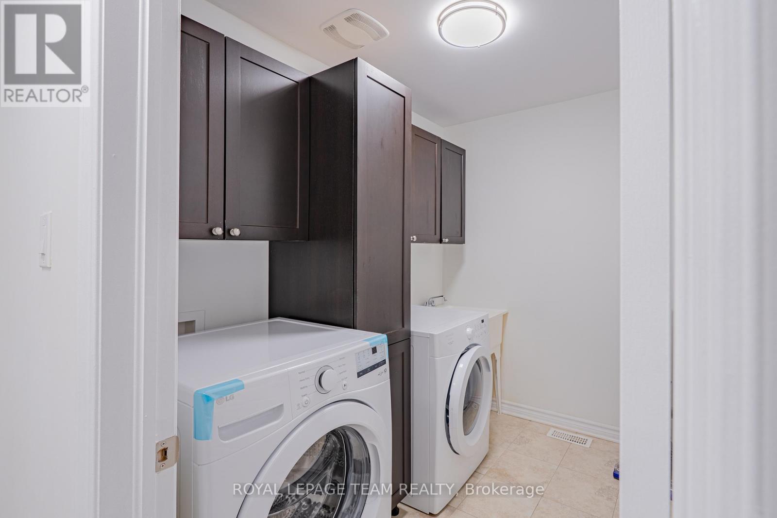 Luxury Living in Kanata South!Discover this stunning single-family home that truly has it all - 3 full bathrooms on the second floor, a fully finished basement with an extra bedroom and bath, complete professional landscaping, and exquisite finishes throughout. Perfectly located in a prime Kanata South neighbourhood close to parks, schools, shopping, and dining.Step inside to a grand, light-filled foyer leading to a beautiful front-facing office with elegant French doors and a custom backlit niche - ideal for working from home. The open-concept main level offers an impressive 36 feet of continuous rear width, with expansive south-facing windows and a large patio slider that fill the home with natural light.The chef-inspired kitchen features an oversized peninsula island, extended-height cabinetry, stainless steel appliances, ample storage, and a walk-in pantry. Hardwood floors, flush vents, hardwood stairs, and a statement fireplace with granite surround add warmth and sophistication. A spacious powder room, walk-in closet, and double-car garage complete the main floor.Upstairs, the luxurious primary suite boasts dual walk-in closets and a spa-like ensuite with a corner shower, jacuzzi tub framed by corner windows, dual sinks, and a private water closet. Three additional bedrooms are served by a second ensuite and a Jack-and-Jill bath. A full laundry room, walk-in linen closet, and hardwood throughout complete this level.The finished basement offers a home theatre area, fifth bedroom or second office, wet bar with fridge and sink, and another full bathroom - perfect for guests or entertaining.Fully landscaped and steps from the Monahan Drain greenspace, this exceptional home combines luxury, comfort, and convenience in the heart of Kanata South. (id:49712)