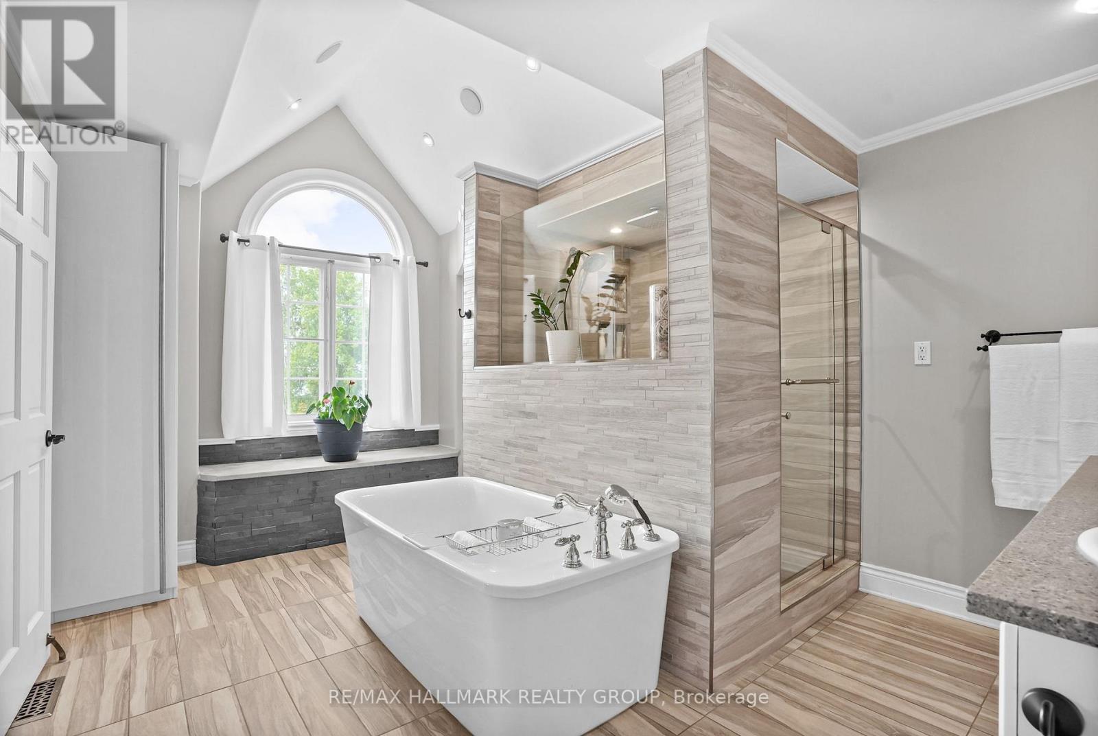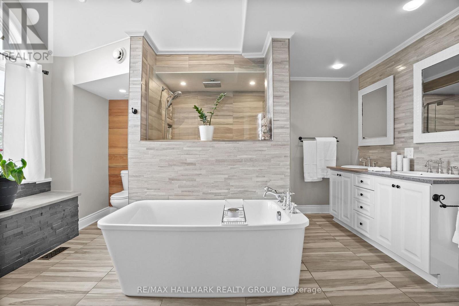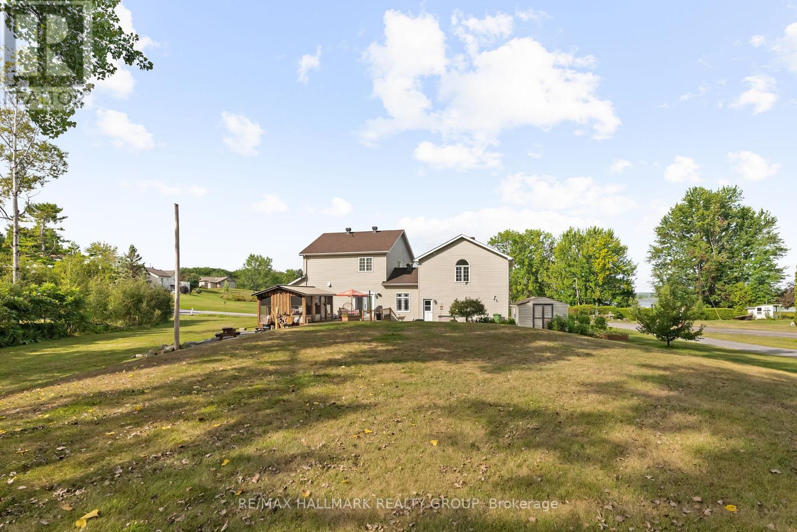 Welcome to this stunning 3-bedroom home perfectly situated next to the Ottawa River, offering incredible views, abundant natural light from its many windows, and the bonus of a private in-law suite. The home's inviting wraparound porch adds charm and plenty of space to relax outdoors, while inside, the gourmet kitchen features a gas stove, large island, and ample room for entertaining. The living room boasts a cozy three-sided fireplace, while bamboo floors and a feature dining room wall add warmth and character. The dining area overlooks the expansive back deck, which includes a fully enclosed gazebo (3.55mx4.70m) that functions as an outdoor living space, offering plenty of room to relax, dine, or entertain in comfort throughout the seasons. The main floor also includes a full 3-piece bathroom and laundry room for added convenience. Upstairs, you'll find a spacious primary bedroom, overlooking the water, paired with a truly stunning main bathroom that exudes luxury, featuring a freestanding soaking tub, oversized glass shower with rainfall showerhead, dual vanities, elegant tile work, and a vaulted window that floods the space with natural light, creating a spa-like retreat right at home. The fully finished lower level offers a home theatre room, perfect for movie nights. The in-law suite, privately set above the oversized two-car garage, provides versatile living space for extended family or guests. This home is truly one of a kind, ideal if you're looking for comfort, functionality, and a touch of something special right by the water. 24 hour irrevocable on all offers. (id:49712)