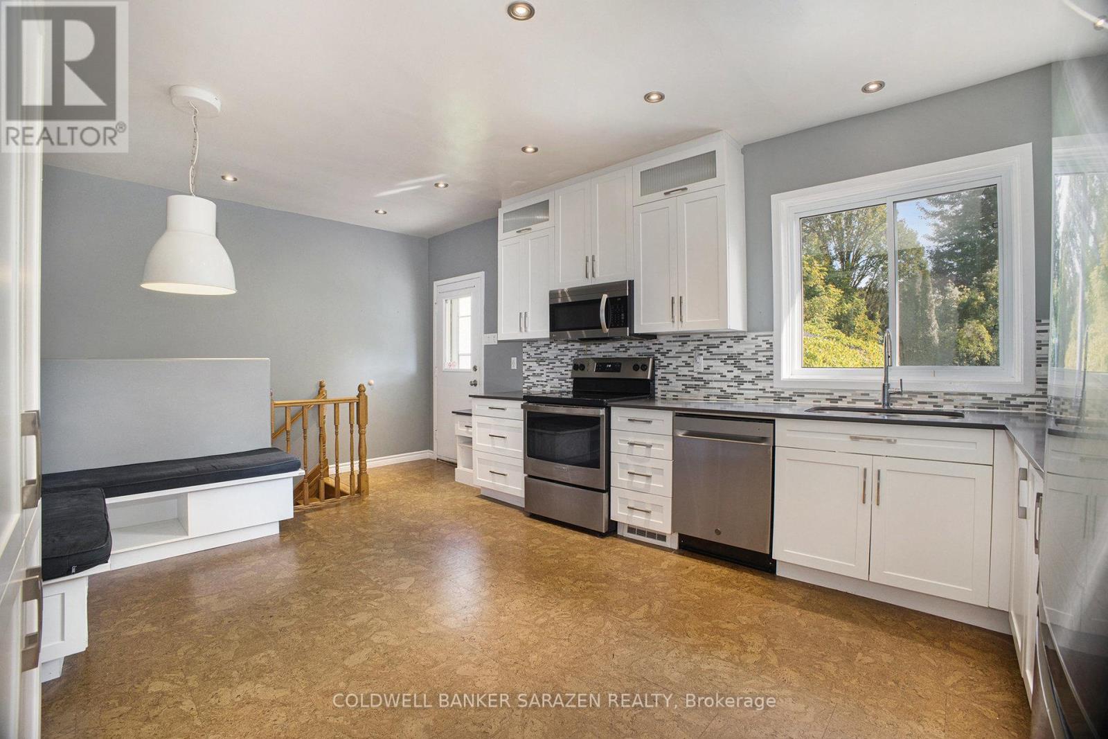 Step into this delightful bungalow just moments from the Experimental Farm, public transit, bike paths, shops, schools, and parks. Situated on an expansive 183-foot deep, fully hedged lot, this home offers both privacy and convenience.The sun-filled main level showcases gleaming hardwood floors, a spacious living room with a cozy wood-burning fireplace, and an updated kitchen. featuring quartz countertops, stainless steel appliances, pot lighting, and cork flooring. Enjoy casual meals in the eat-in area with a built-in bench and easy access to the backyard.The main floor also includes a generous primary bedroom, a second bedroom, and a full bathroom.The fully renovated lower level adds impressive living space with a large guest bedroom, a den, a workshop, laundry room, and abundant storage.Additional highlights include a long driveway, an oversized detached single garage, a large deck, and a huge backyard ideal for relaxing or entertaining.This is the perfect blend of character, space, and location. photos are from the previous listing. Updated pictures will be uploaded soon. (id:49712)