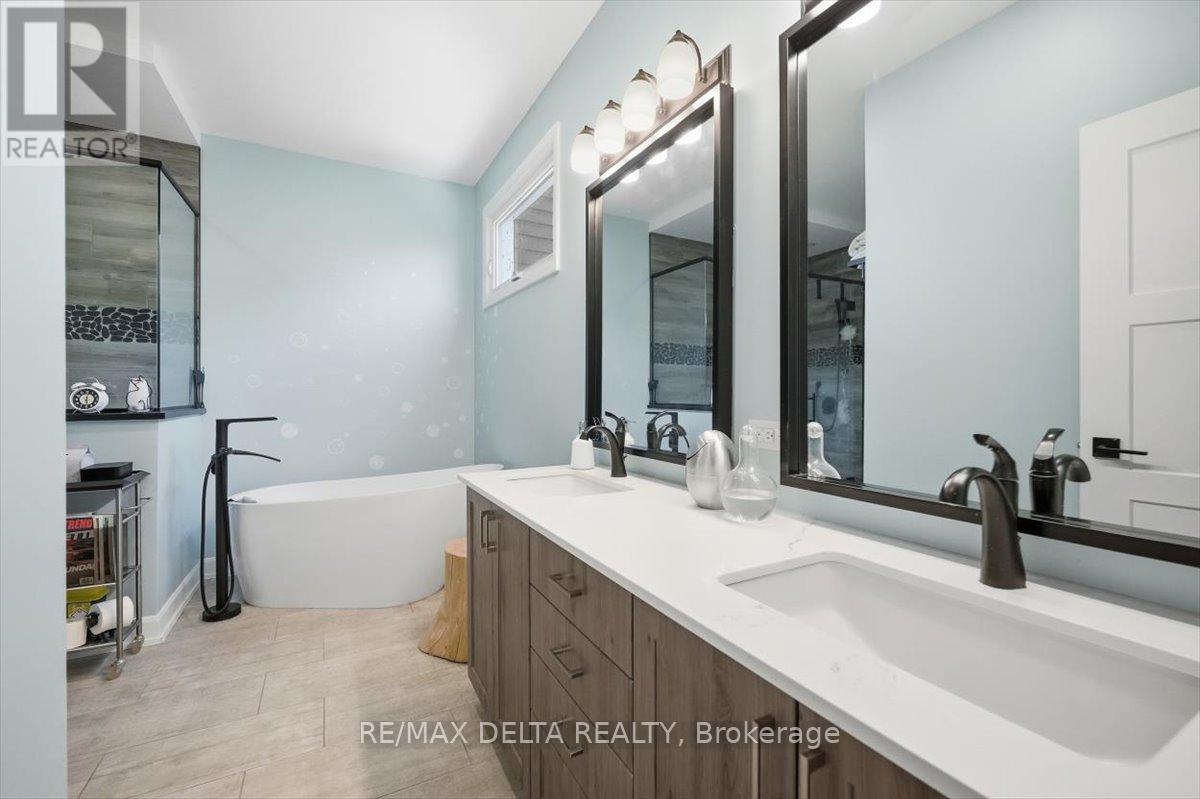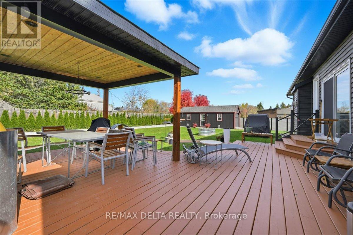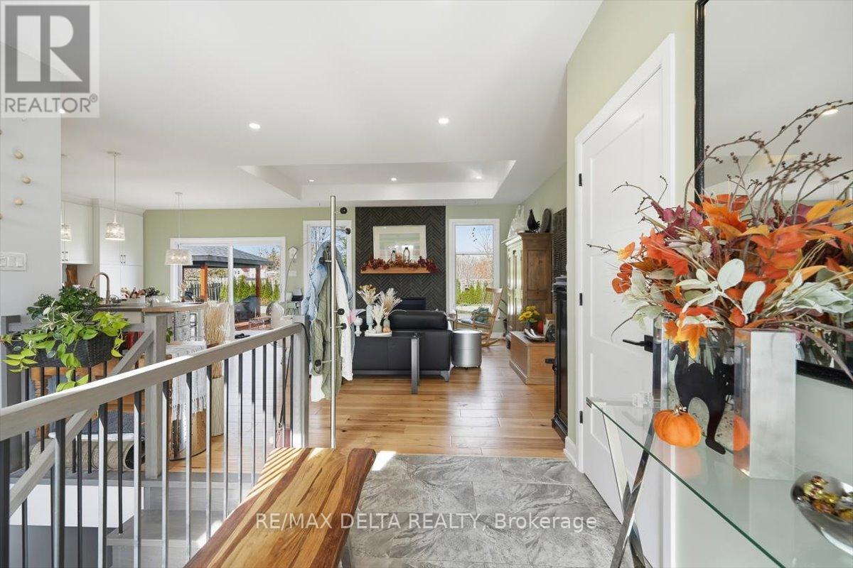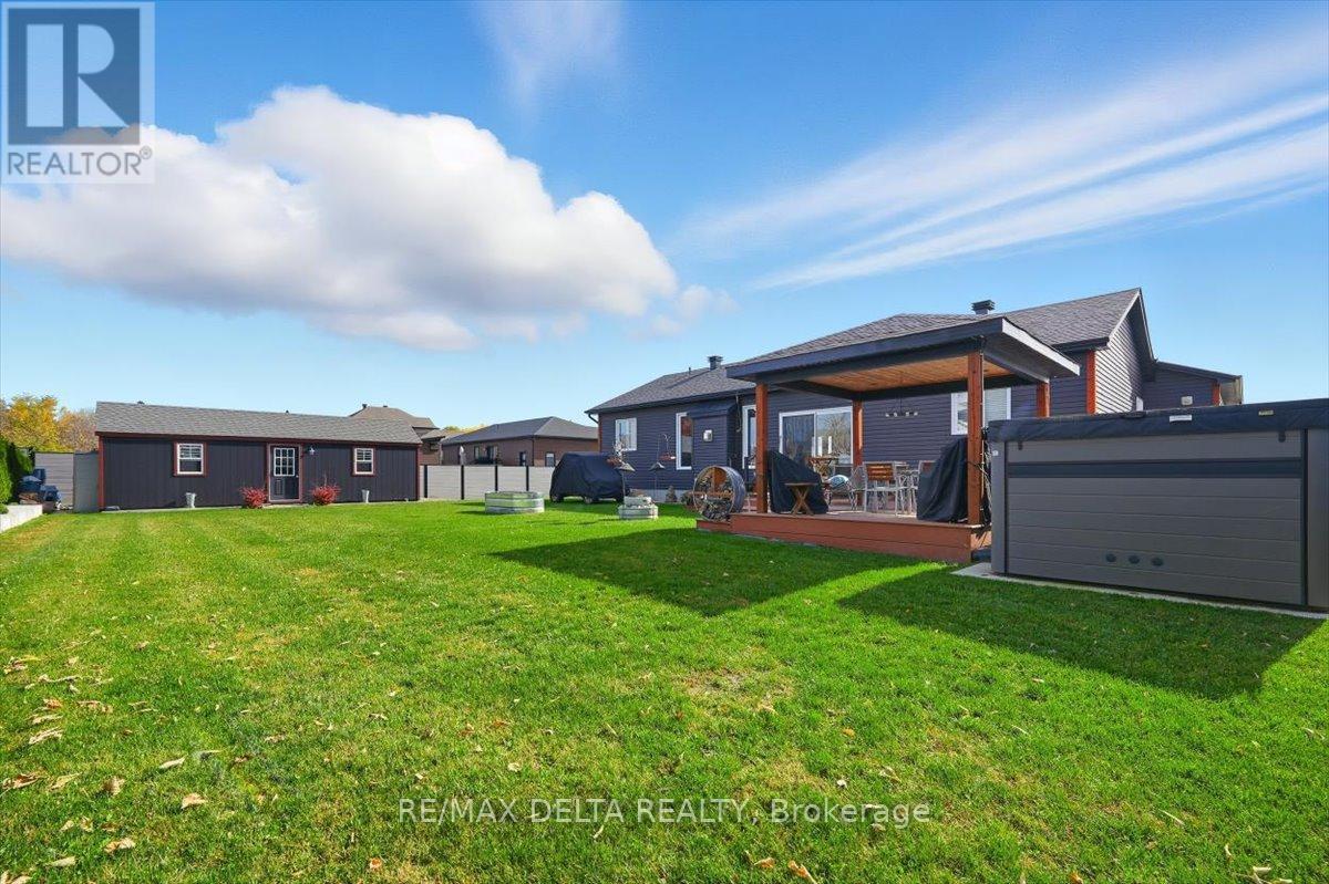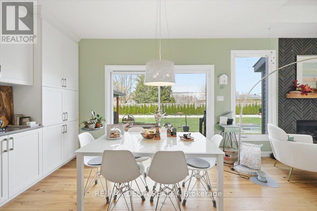 Welcome to 117 Danika. This beautiful bungalow has it all, style and quality workmanship. Beautifully designed and decorated with loads of upgrades. Separate list is attached. On the main floor, you will find an open concept kitchen with white cabinets with grey quartz countertops, stainless steel backsplash, practical water tap located over the gas range adds a rare feature to the cooking area, dining and living areas with plenty of natural light with an 8ft patio door, gleaming hardwood floors, a natural gas fireplace to cozy up and relax, beautiful neutral colors to suit all styles. 3 generous size bedrooms on the main floor + 1 large bedroom in the lower level. A spa style 4 pce ensuite, another 3 pce main bathroom on the main floor PLUS a 2 pce bathroom in the lower level. Fully finished lower level includes a very large rec room, a workshop/utility room. The beauty of this home is the exterior, fully landscaped with custom timber framed privacy screen for additional privacy on each side of the home with matching solid timber on the garage & facade.reddish lumber trim beams with quality stainless steel plates and carriage bowls, stylish custom built gazebo with pot lights, trees, stunning concrete front patio, PLUS a large detached garage 30 ft X 12 ft on concrete foundation with hydro perfect for the hobbyist in the family, added window wells,. Plug-in ready for future generator. With over $150,000 in upgrades (laneway paved, wood floor on main level, concrete front patio, concrete curbed mow strip, gazebo, added 4th garage, backyard underground draining piping with downspouts connected, concrete block retaining wall, and the list goes on. This makes this home one of a kind that you won't want to miss. Complete list of renos available upon request. No front neighbours (wooded area). (id:49712)