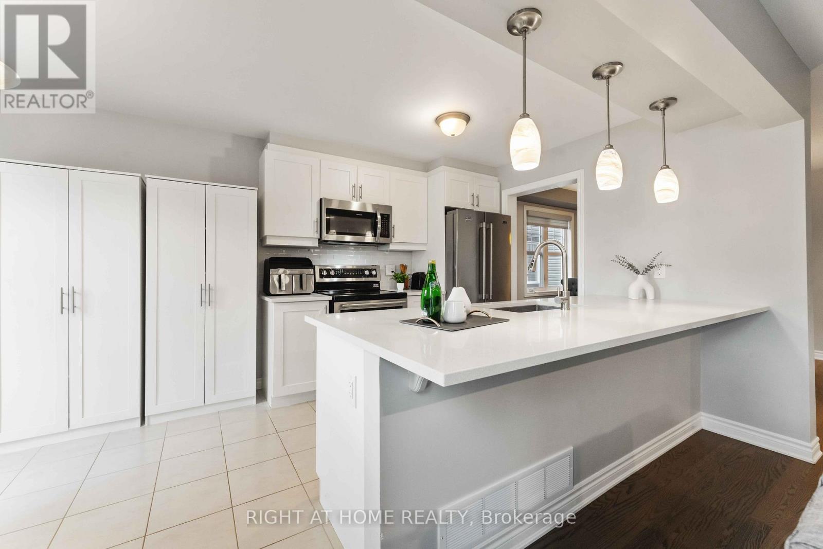 Welcome Home to Modern Comfort and Style in Avalon! Experience the perfect blend of elegance and functionality in this show stopping, immaculate, move-in-ready end-unit townhome in the highly sought-after Avalon community. Built in 2018, this 2-bedroom, 2.5-bath gem offers 1,473 sq ft of bright, open living space, filled with natural light, high-end finishes, and thoughtful upgrades throughout.Step into a spacious foyer that sets the tone for the home, featuring interior garage access, a well-designed laundry area, and a convenient powder room for guests.The main living level showcases gleaming hardwood floors and a chef-inspired kitchen with a massive quartz island, stainless steel appliances, and abundant storage-perfect for cooking, entertaining, or enjoying family meals. The open-concept living and dining area flows seamlessly onto a sun-filled balcony, ideal for relaxing or your morning coffee.Upstairs, the spacious primary bedroom offers a calm, inviting retreat, complemented by a beautifully finished full bathroom with a large standing shower, double sinks, and a generous vanity. A second bright bedroom and an additional full bathroom complete the upper level.This end-unit home offers extra privacy, sunlight from three sides, and professional interlock landscaping that enhances its curb appeal. Located just minutes from the new hospital, top-rated schools, parks, shopping, restaurants, and transit, this home delivers modern elegance, comfort, and convenience. Move-in ready with premium upgrades and an unbeatable location-this is the one you've been waiting for! (id:49712)