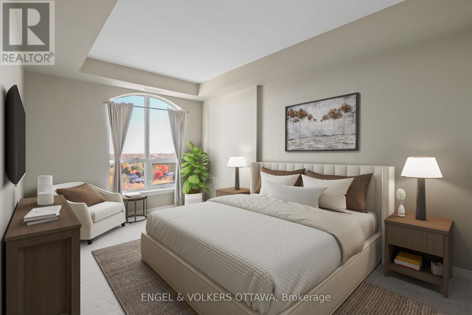Welcome to 120 Grant Carman Drive, an exceptionally well-maintained residence in one of Ottawa's most sought-after and well-run condominium communities. This spacious penthouse suite has been lovingly cared for by its original owner and offers a wonderful opportunity to enjoy a maintenance-free lifestyle without compromise. Featuring 9-foot ceilings and an inviting layout, the home offers generous living and dining spaces, a bright kitchen with ample cabinetry, and a den that can easily serve as a home office, guest room, or reading nook. The expansive primary bedroom is a standout feature, complete with a walk-in closet and cheater ensuite, providing both space and functionality. The brand-new carpeting in the bedroom and den adds warmth and comfort underfoot. Additional highlights include in-unit laundry, heated underground parking, and a storage locker for added convenience. Le Crystelle is renowned for its excellent management, vibrant community, and outstanding amenities including a fitness centre, indoor pool, hot tub, sauna, and party room. Residents enjoy a friendly and social atmosphere, with organized activities such as happy hours, bridge, euchre, and gentle fitness classes, as well as a resident-run library. Enjoy peace of mind with condo fees that include heat, water, and air conditioning, and plenty of visitor parking for guests. Experience comfort, community, and convenience, all from the top floor of this beautifully maintained building. Some photos are virtually staged. (id:49712)