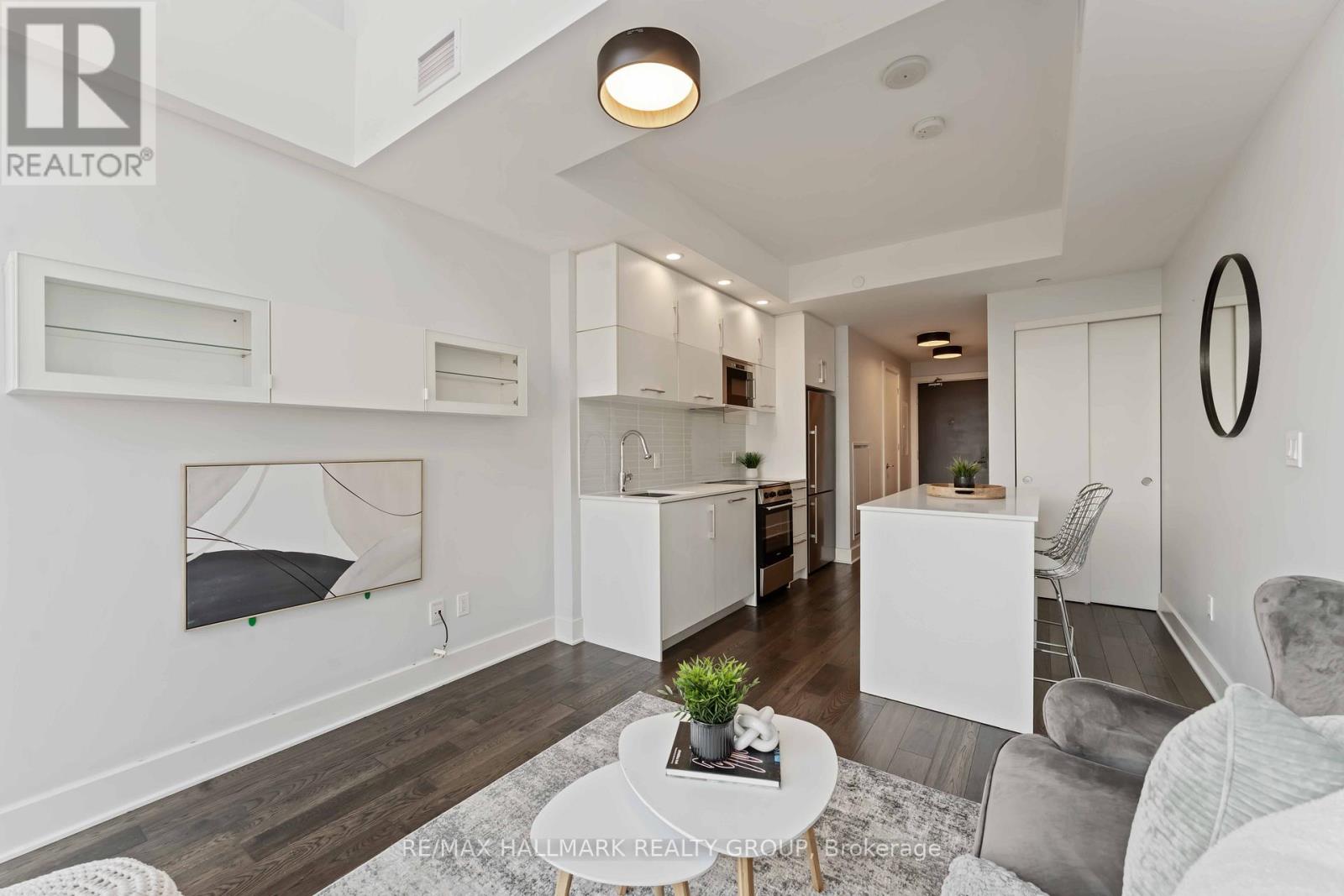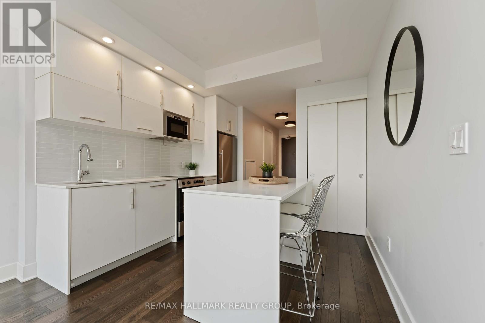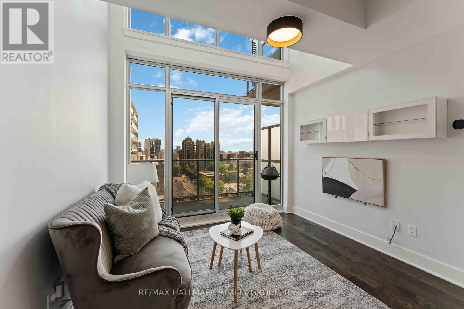 Stylish 2-Storey Loft in The Bowery 1 Bed + 1.5 Bathrooms | Parking & Locker Included! Welcome to The L1, a rare and stunning two-storey loft-style condo in The Bowery one of Centretown Ottawas most sought-after buildings. Perched on the 12th floor, this 1-bedroom, 1.5-bath unit boasts dramatic 18-foot ceilings, massive windows, and dark hardwood floors throughout. This home features a convenient main-floor powder room, perfect for guests. The sleek kitchen offers two-tone cabinetry, white quartz countertops, stainless steel appliances, and a moveable island that doubles as a prep station and dining space for four. Upstairs, you'll find the primary suite with ensuite bath and in-unit laundry.Enjoy your morning coffee or evening wine on your private balcony elevated above the neighbouring building for enhanced views and privacy. INCLUDES PARKING AND A STORAGE UNIT, with secure underground bike storage available to all residents.Top-tier amenities on the buildings rooftop level include a fully-equipped gym, heated saltwater pool, sauna, party room (reservable), conference room, BBQs, and three patios with incredible views of downtown Ottawa.Just steps from the Lyon LRT Station, this unbeatable location puts you in the heart of the city with effortless access to transit, shops, restaurants, and more. (id:49712)