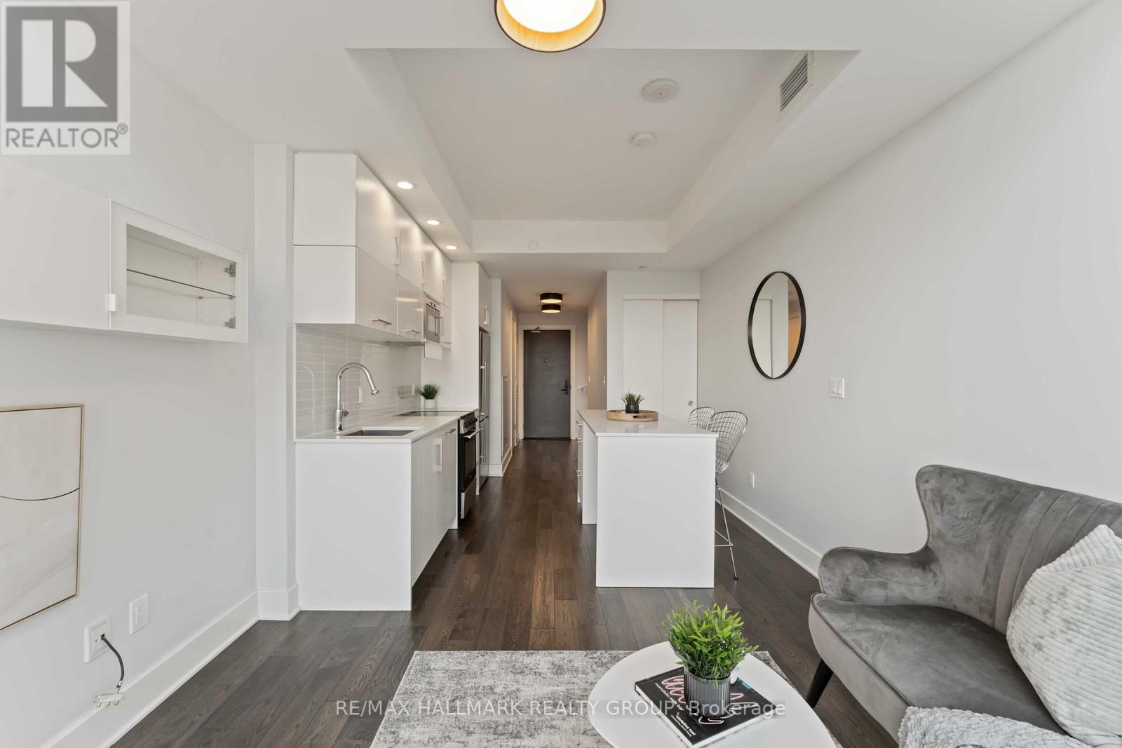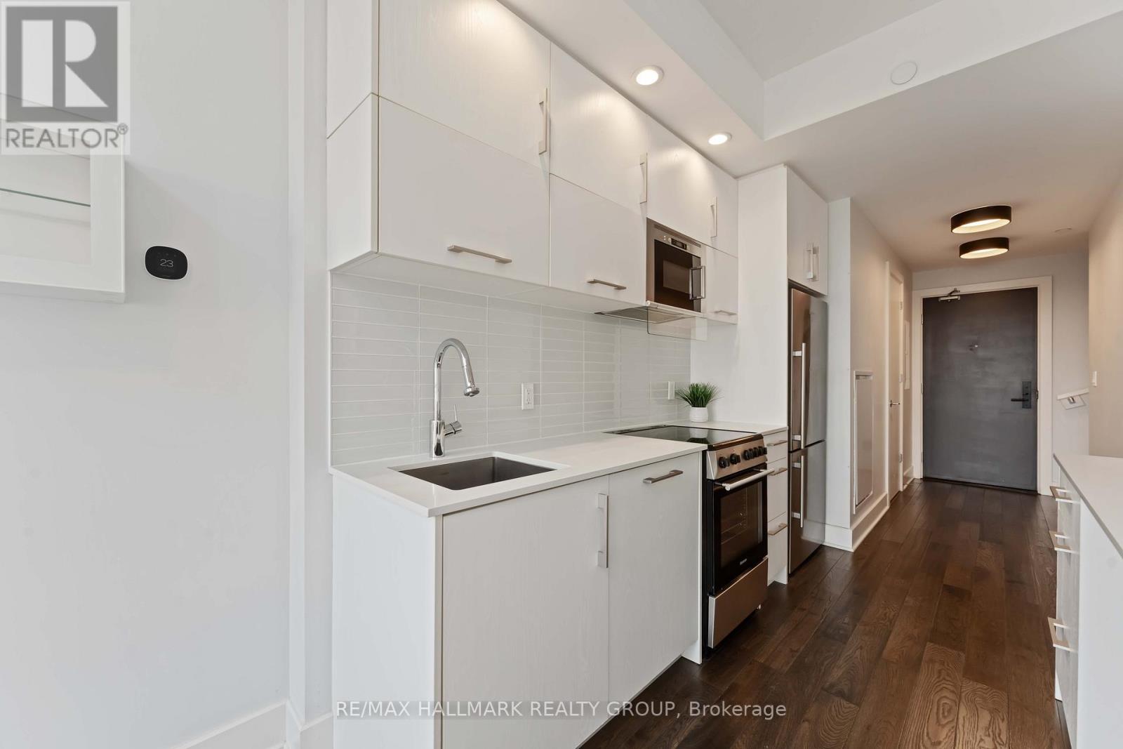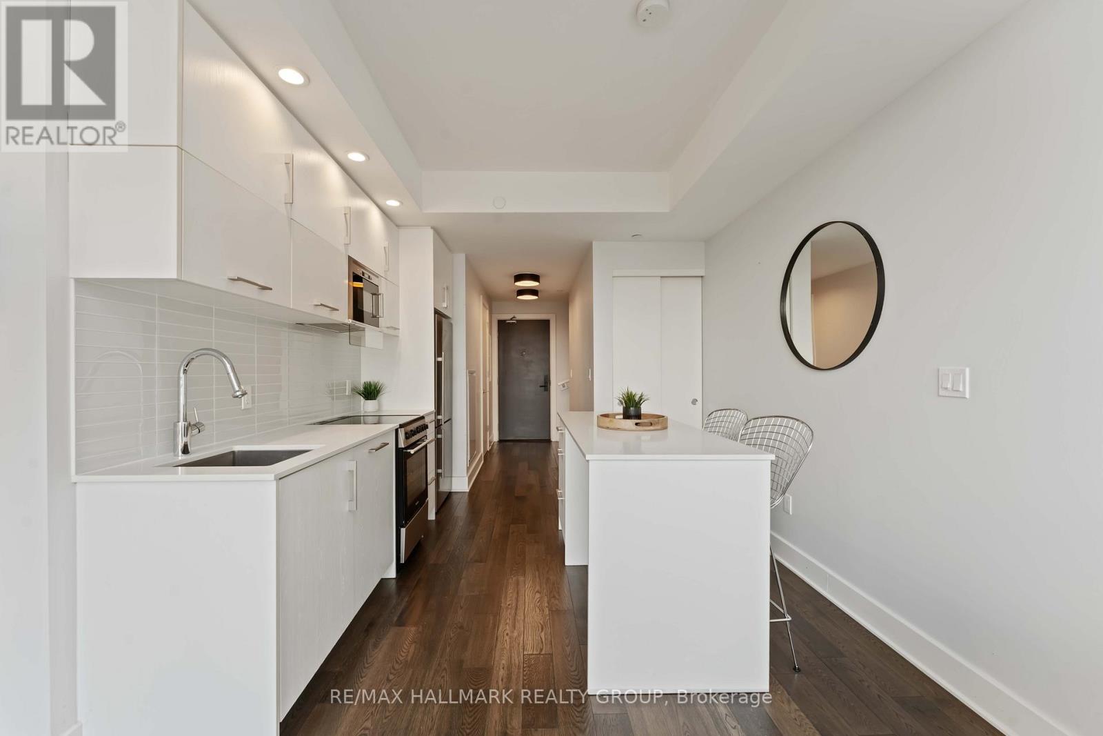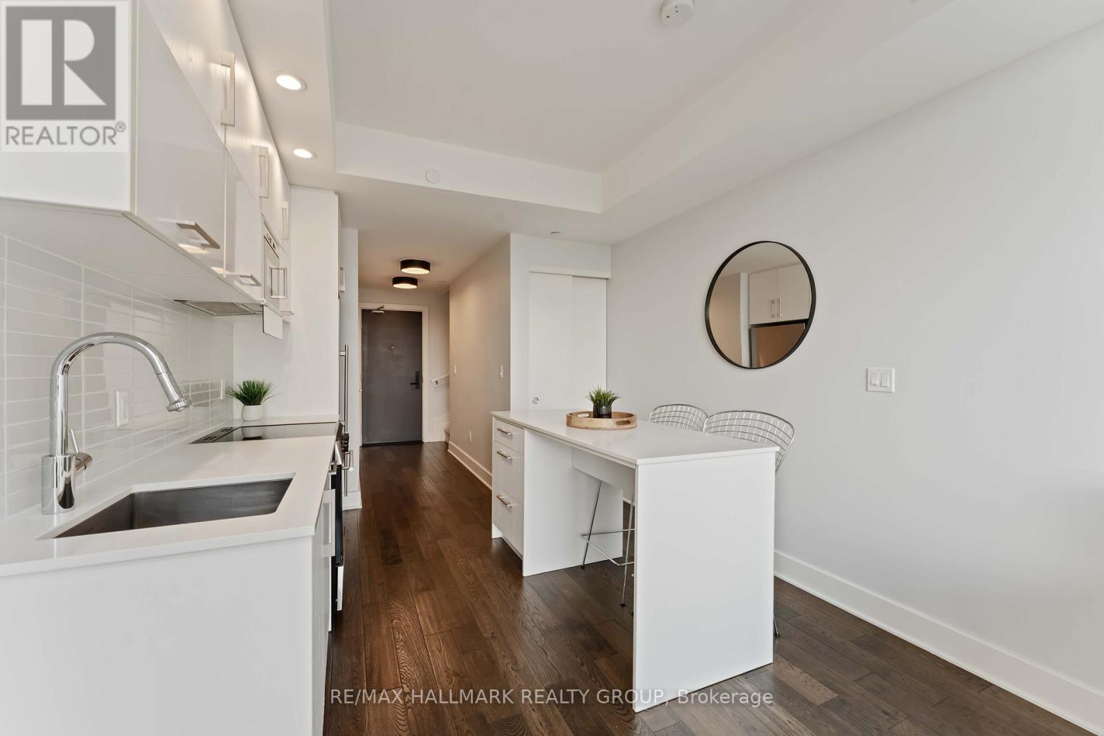 Stylish 2-Storey Loft in The Bowery 1 Bed + 1.5 Bathrooms | Parking & Locker Included! Welcome to The L1, a rare and stunning two-storey loft-style condo in The Bowery one of Centretown Ottawas most sought-after buildings. Perched on the 12th floor, this 1-bedroom, 1.5-bath unit boasts dramatic 18-foot ceilings, massive windows, and dark hardwood floors throughout. This home features a convenient main-floor powder room, perfect for guests. The sleek kitchen offers two-tone cabinetry, white quartz countertops, stainless steel appliances, and a moveable island that doubles as a prep station and dining space for four. Upstairs, you'll find the primary suite with ensuite bath and in-unit laundry.Enjoy your morning coffee or evening wine on your private balcony elevated above the neighbouring building for enhanced views and privacy. INCLUDES PARKING AND A STORAGE UNIT, with secure underground bike storage available to all residents.Top-tier amenities on the buildings rooftop level include a fully-equipped gym, heated saltwater pool, sauna, party room (reservable), conference room, BBQs, and three patios with incredible views of downtown Ottawa.Just steps from the Lyon LRT Station, this unbeatable location puts you in the heart of the city with effortless access to transit, shops, restaurants, and more. (id:49712)