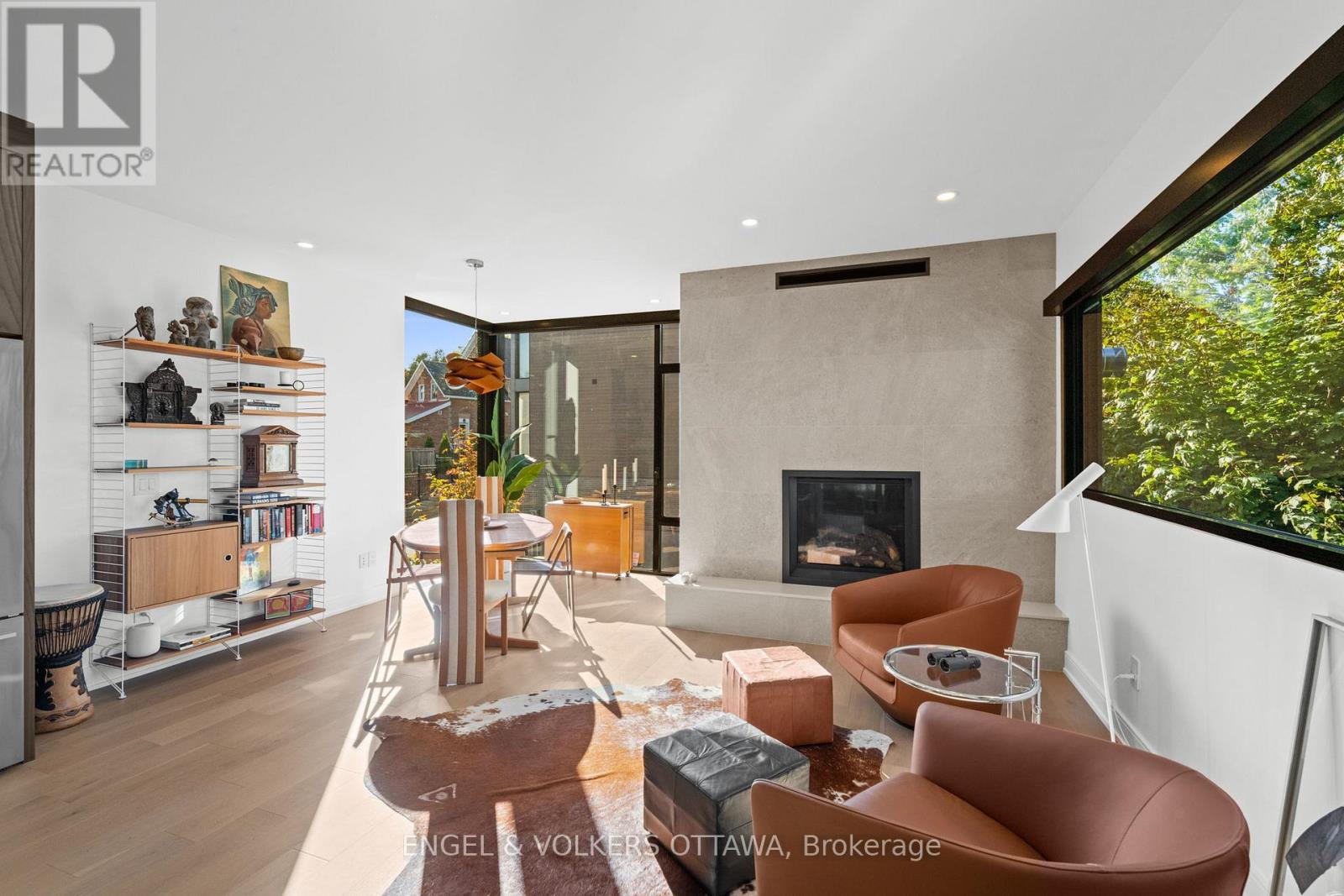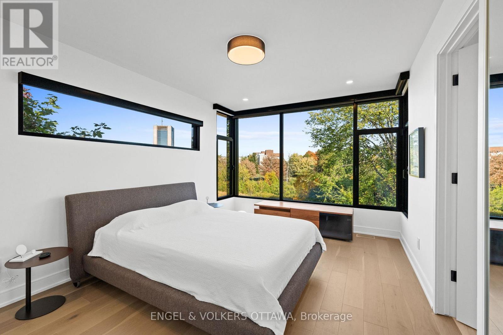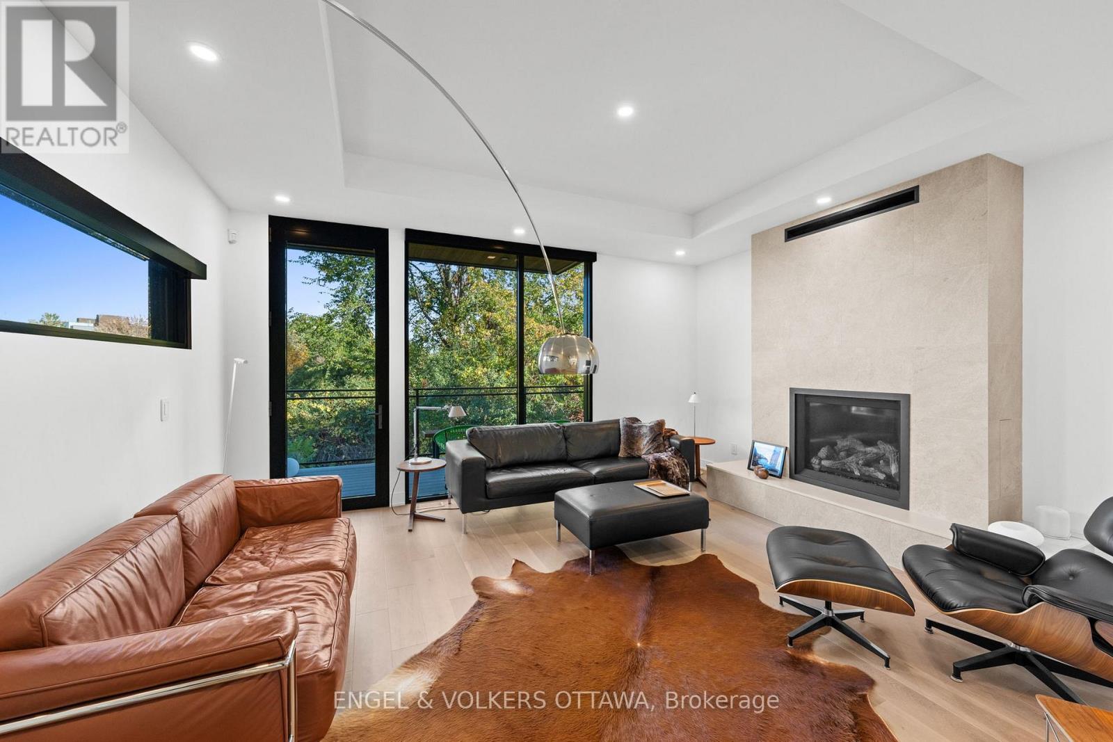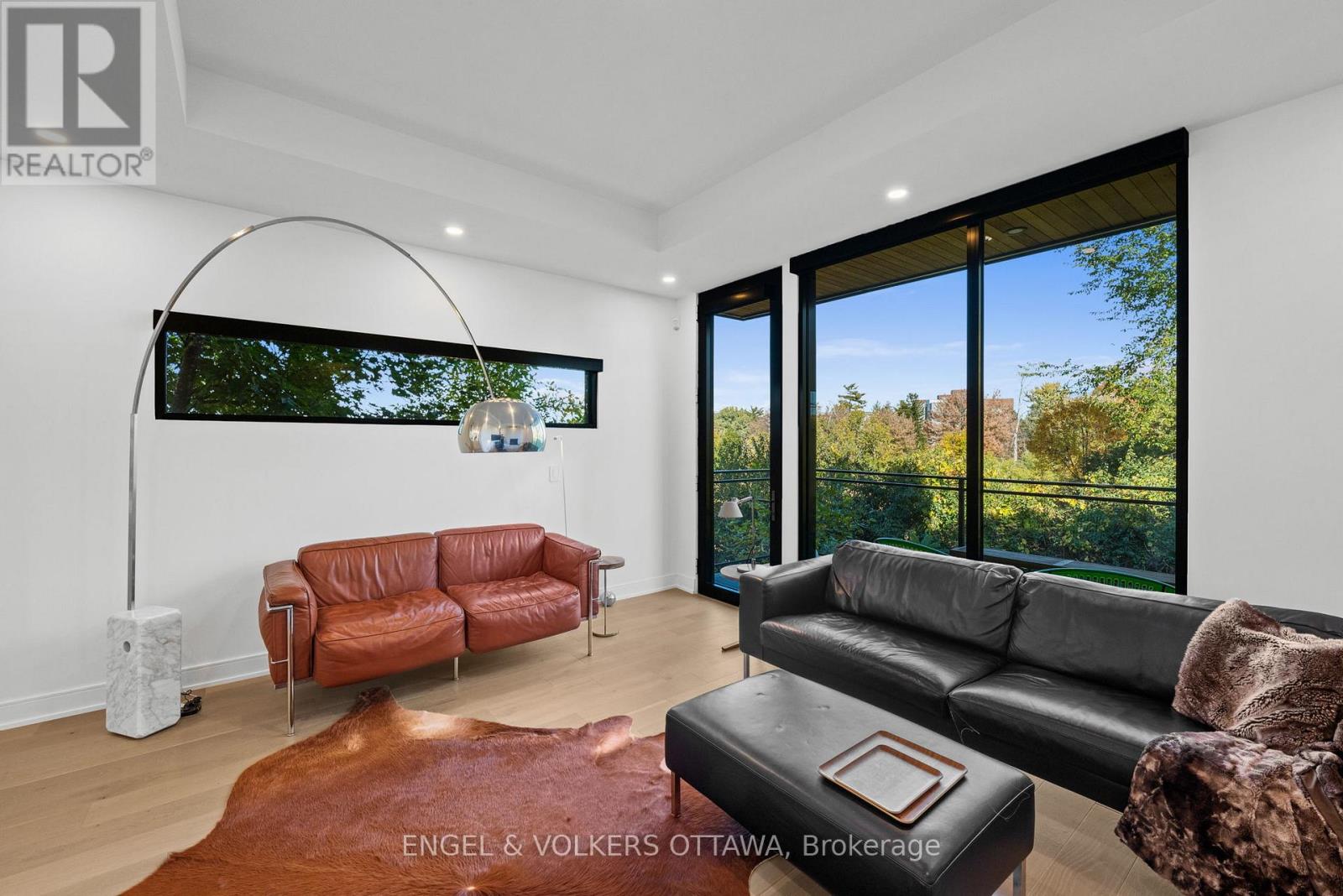 Welcome to 127 Peridot Private, an exceptional residence in an award-winning enclave of just seven luxury homes by Gemstone Developments. This exclusive community blends refined design, natural surroundings, and a prime central location. As the only home in the community featuring an extended private driveway and back deck, as well as incredible additional custom windows, this home offers rare, unobstructed views of the Experimental Farm and the Rideau Canal. Winner of a GOHBA award for interior design, this 3-bedroom, 4-bathroom home showcases over 2,400 sq. ft. of thoughtfully curated living space. The main level is perfect for stylish entertaining, featuring a chef's kitchen with a waterfall quartz island, custom cabinetry, gas range, walk-in pantry with sink, and designer finishes. Two elegant living areas with upgraded gas fireplaces and a sleek powder room complete the space. Amazing views from every room and private balcony off the back living room. Upstairs, the serene primary suite impresses with expansive windows and a spa-inspired ensuite with a soaker tub, expanded two-person glass shower, double vanity, and bidet. Two additional bedrooms, a full bath, and a laundry closet with a sink and custom cabinetry provide flexibility for guests or a home office. Ground level features a spacious foyer and a versatile area currently used as a stylish home gym, easily adaptable as a family room or office, along with a convenient powder room. Upgraded stringer staircase with open glass panels adds a striking architectural element while preserving the homes airy, contemporary feel. An extended lower back deck provides direct access to a beautifully landscaped backyard - offering a peaceful retreat surrounded by nature. Just moments from Little Italy, Dows Lake, and the Civic Hospital, with walking and bike paths at your doorstep. Visit the website for full list of upgrades. (id:49712)