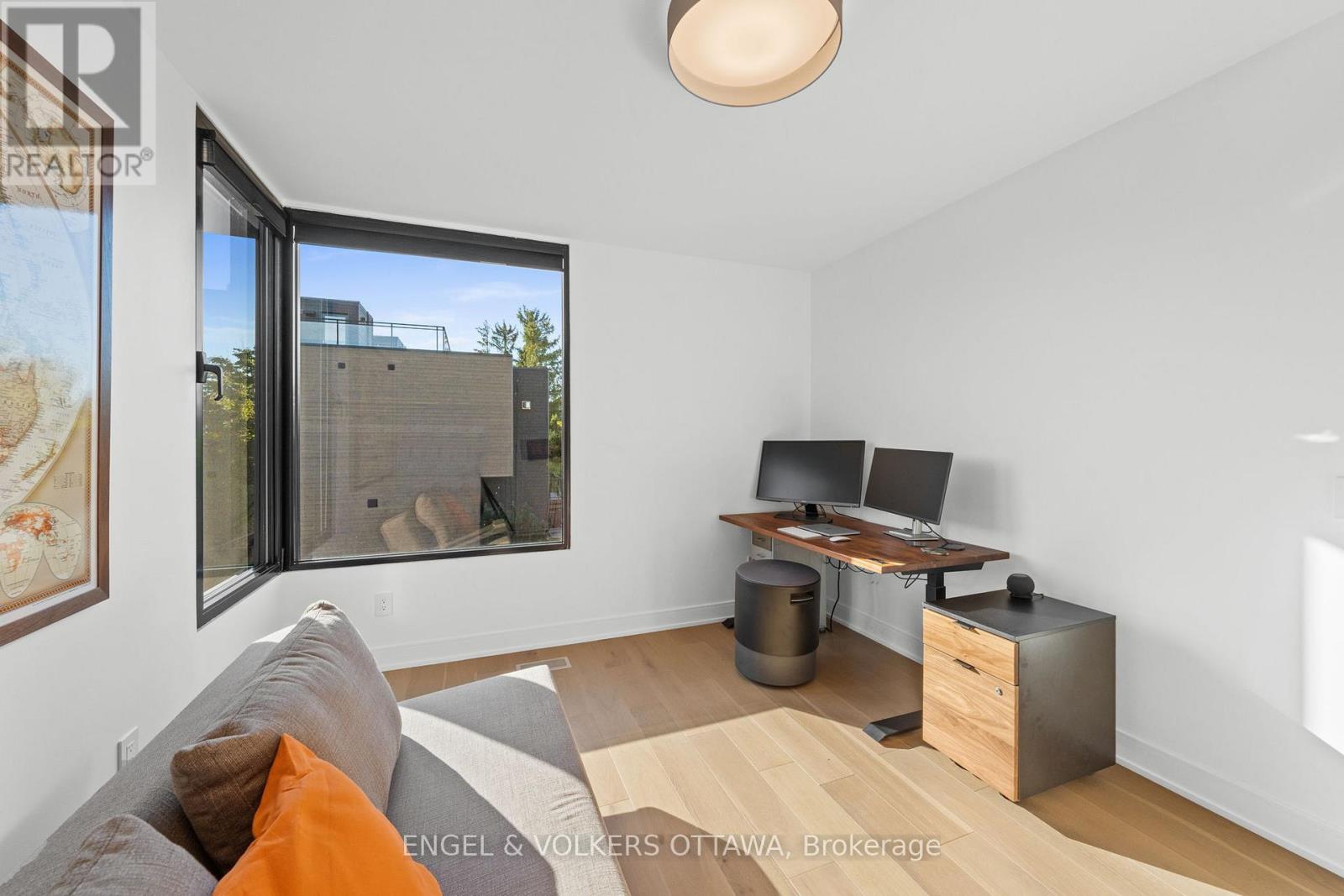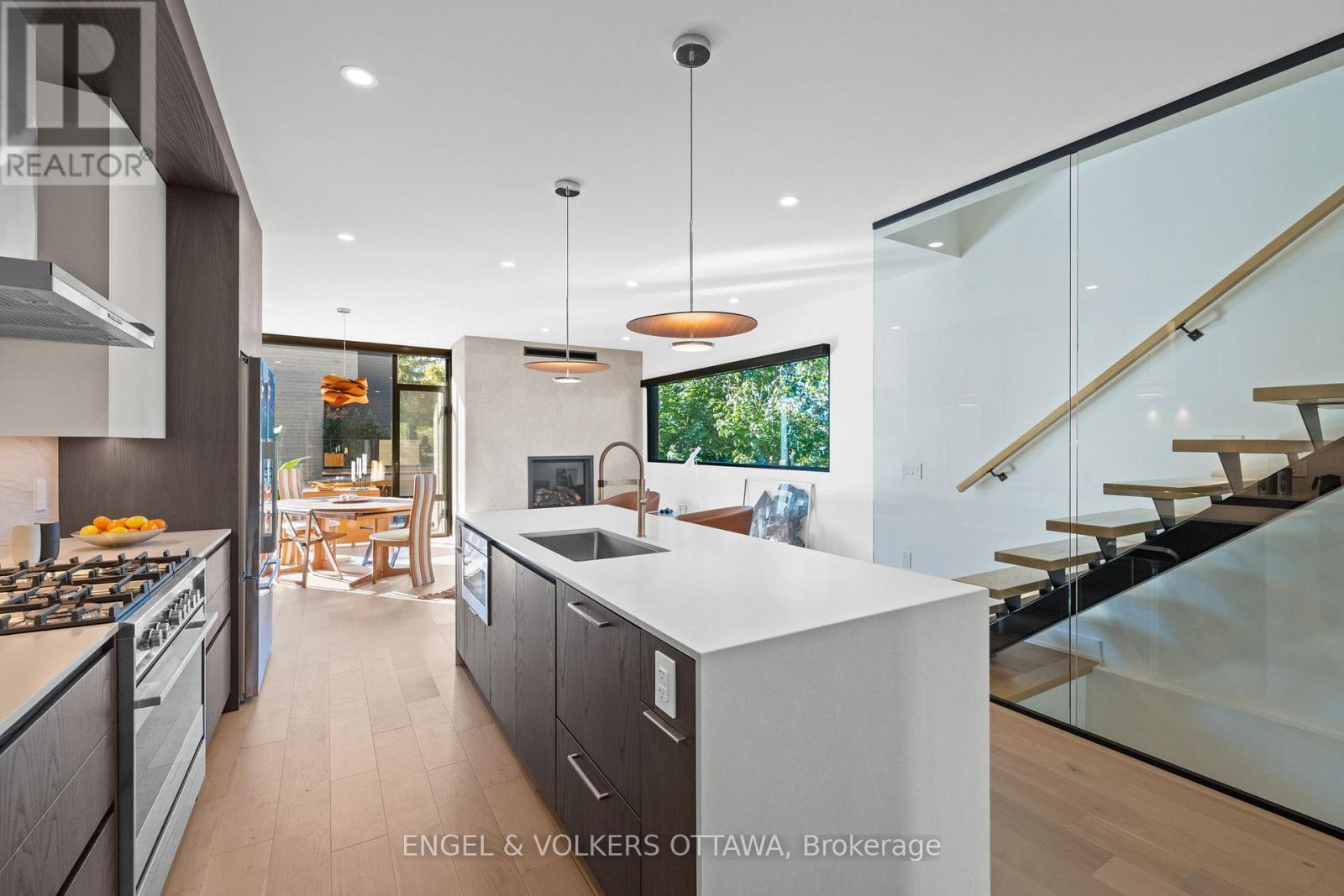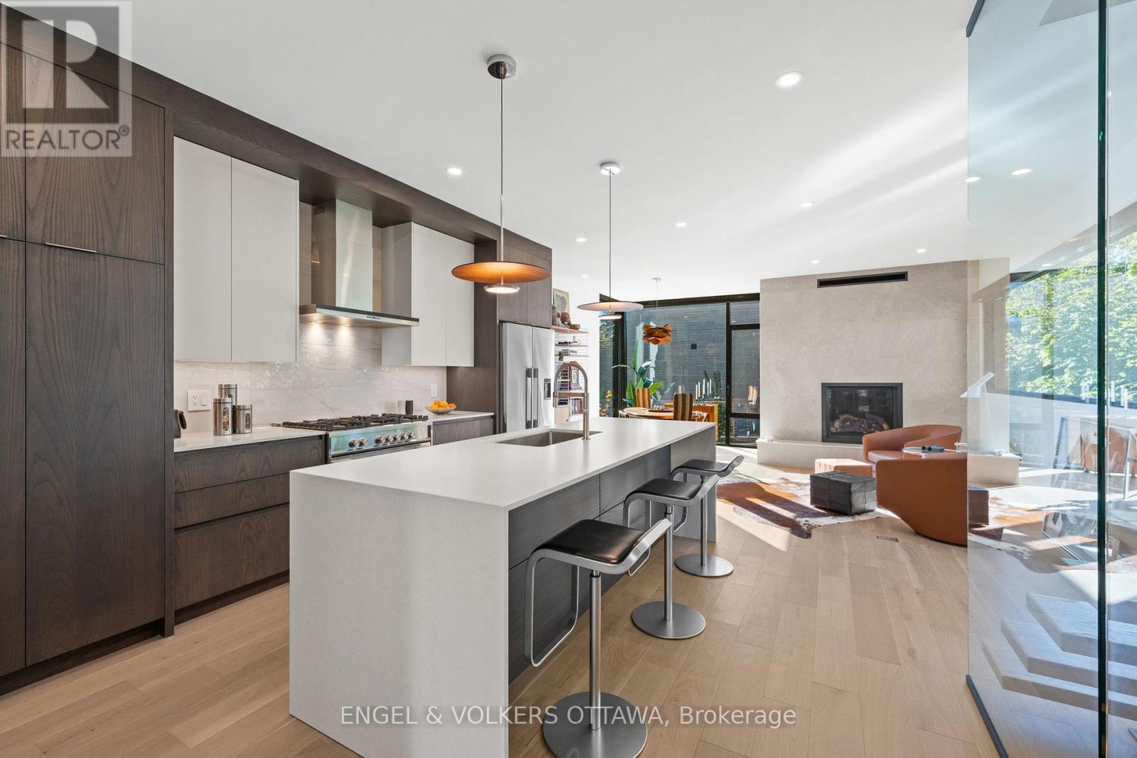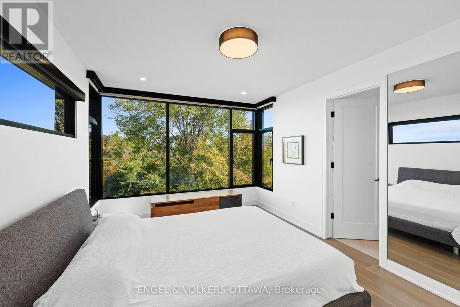 Welcome to 127 Peridot Private, an exceptional residence in an award-winning enclave of just seven luxury homes by Gemstone Developments. This exclusive community blends refined design, natural surroundings, and a prime central location. As the only home in the community featuring an extended private driveway and back deck, as well as incredible additional custom windows, this home offers rare, unobstructed views of the Experimental Farm and the Rideau Canal. Winner of a GOHBA award for interior design, this 3-bedroom, 4-bathroom home showcases over 2,400 sq. ft. of thoughtfully curated living space. The main level is perfect for stylish entertaining, featuring a chef's kitchen with a waterfall quartz island, custom cabinetry, gas range, walk-in pantry with sink, and designer finishes. Two elegant living areas with upgraded gas fireplaces and a sleek powder room complete the space. Amazing views from every room and private balcony off the back living room. Upstairs, the serene primary suite impresses with expansive windows and a spa-inspired ensuite with a soaker tub, expanded two-person glass shower, double vanity, and bidet. Two additional bedrooms, a full bath, and a laundry closet with a sink and custom cabinetry provide flexibility for guests or a home office. Ground level features a spacious foyer and a versatile area currently used as a stylish home gym, easily adaptable as a family room or office, along with a convenient powder room. Upgraded stringer staircase with open glass panels adds a striking architectural element while preserving the homes airy, contemporary feel. An extended lower back deck provides direct access to a beautifully landscaped backyard - offering a peaceful retreat surrounded by nature. Just moments from Little Italy, Dows Lake, and the Civic Hospital, with walking and bike paths at your doorstep. Visit the website for full list of upgrades. (id:49712)