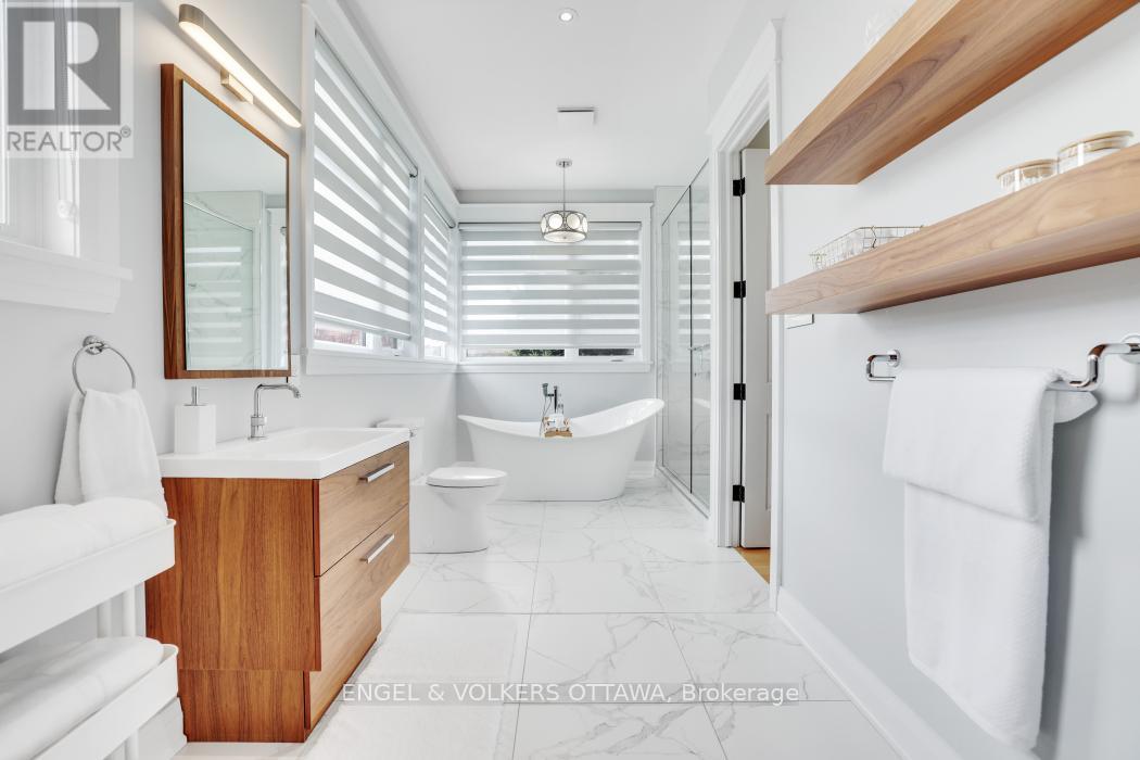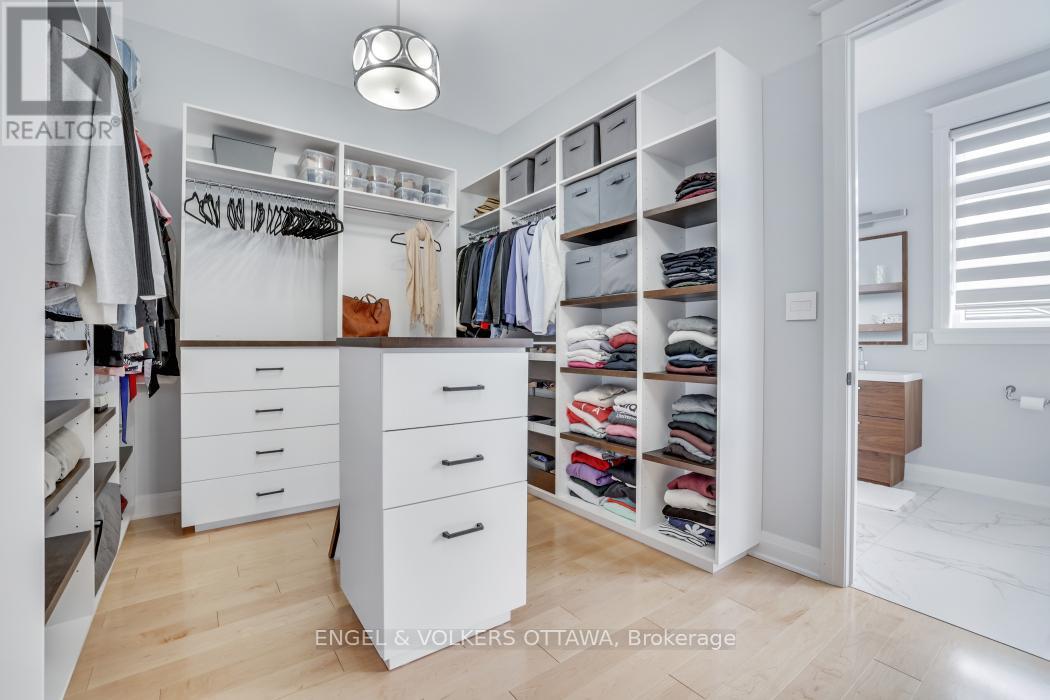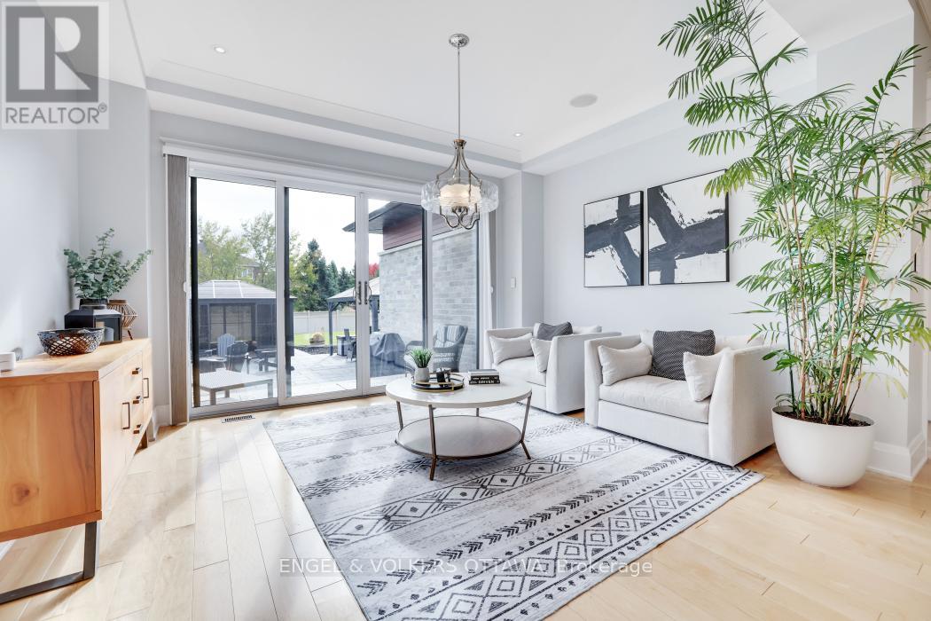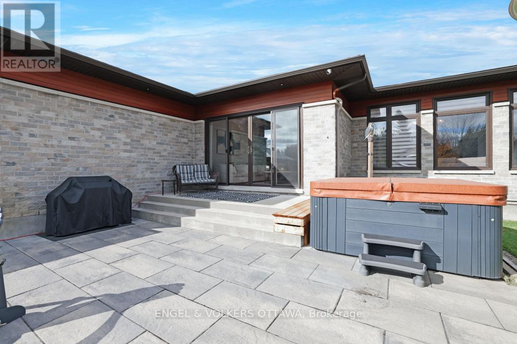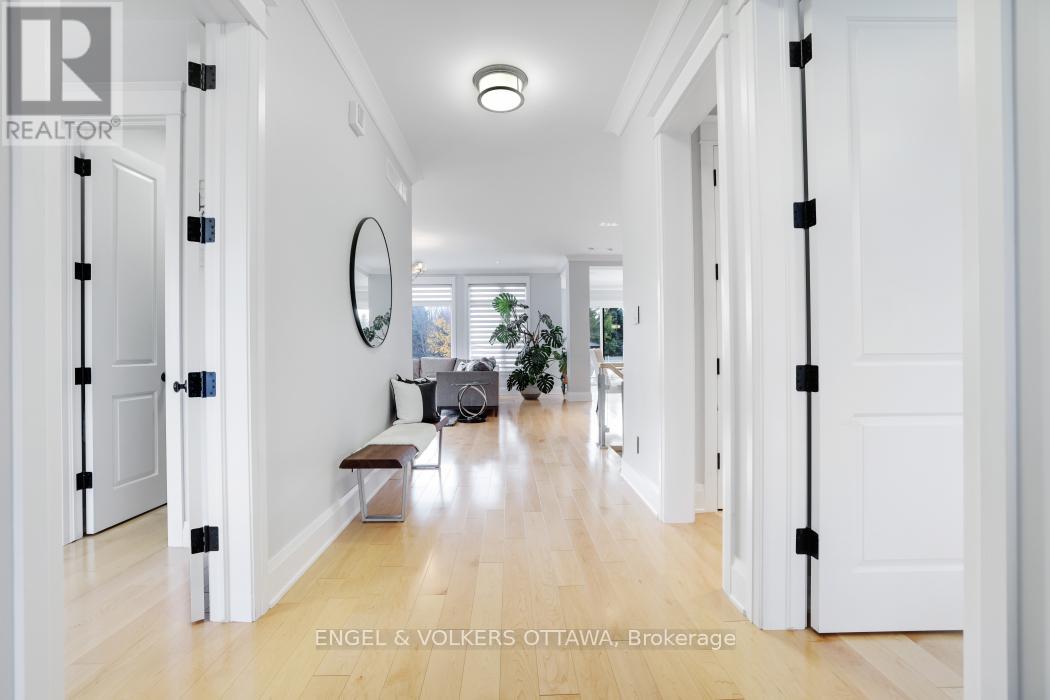 Live your Luxury in Manotick! Crafted by Woodstruct Construction in 2018, this custom bungalow harmonizes quality design, refined finishes and a perfected layout for daily living and sophisticated entertaining. Expect to be wowed by the exquisite detail and workmanship - 10 ft ceilings, natural maple & walnut accents, stunning hardwood flooring and the expansive south-facing windows where the sunlight pours in throughout the day. A showpiece kitchen with quartz counters, a statement island, walk-in pantry, and Bosch suite (gas cooktop, oven, convection oven/microwave, dishwasher) finished with USB outlets and reverse-osmosis water. Relax in the serene primary retreat with dual walk-ins and a spa-level 5-piece ensuite. Four of the five bedrooms enjoy private ensuites; a fifth bedroom flexes as an office, den or organized storage room. Downstairs, a thoughtfully finished, apartment-style level-also accessible from the insulated two-car garage supports multi-generational living with a gym, living and dining areas, office, theatre room and a wet bar rough-in.The backyard living space offers a low-maintenance irrigated yard. Perfect for entertaining in the large gazebo, the oversized solarium, or hot tub; the fenced lot and trees allow for privacy with minimal neighbouring presence. ENERGY STAR heating/cooling/water with Wi-Fi controls, triple-pane front windows, manifold plumbing with individual shut-offs, UV water treatment with softener/iron, high-end two-bed septic, generator with automatic transfer switch, EV outlet, built-in speakers and digital alarm. Eight-foot solid-core Cambridge doors, crown/baseboard and window trim. Minutes to Manotick Village and Hwy 416 with an easy commute to downtown-perfect for the buyer who values craftsmanship, luxury, and design. (id:49712)