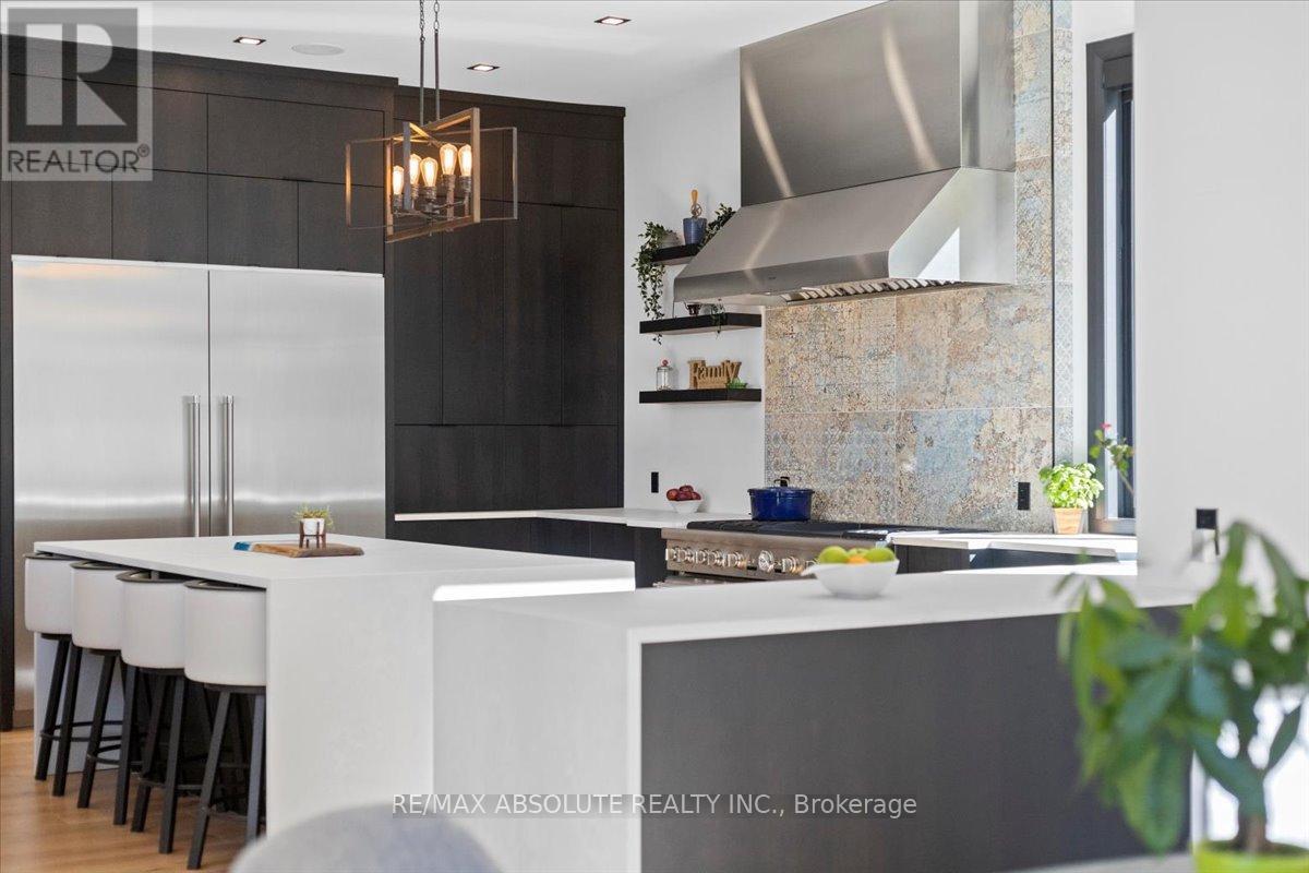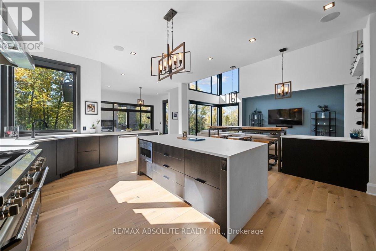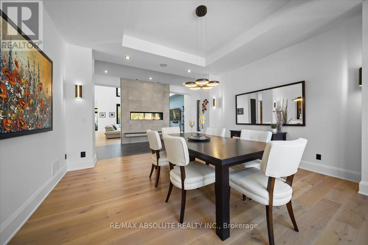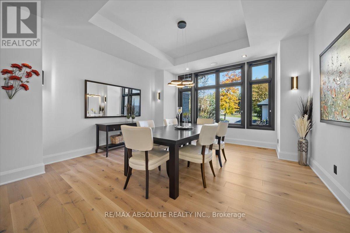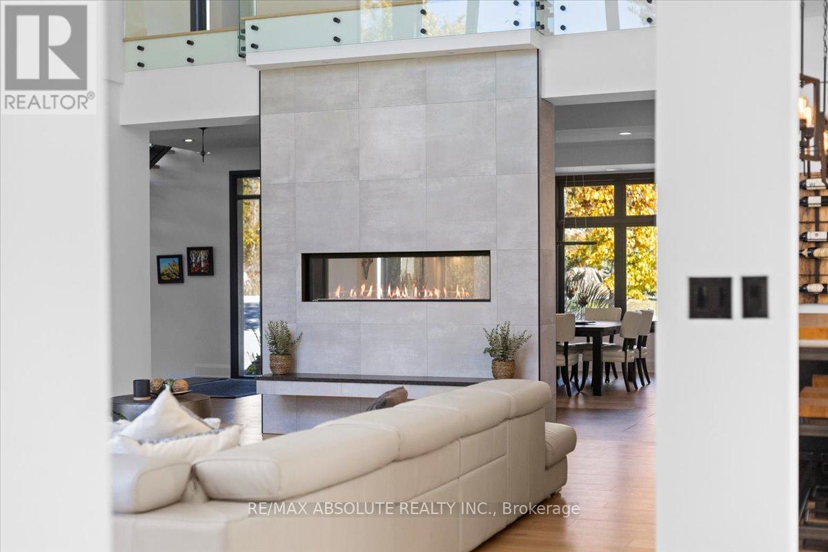 A BREATHTAKING private family retreat awaits! This is the ideal urban escape situated on over 2 acres in one of Ottawa's most beautiful estate communities! The circular PAVED driveway guides you towards a residence that demands attention! Strategically situated, professional landscaped, stone & stucco surround PLUS the gorgeous mature trees provide a memorable first tranquil impression! In floor heat can be found in the separate garage- an enthusiasts dream! Spanning approximately 7000 square feet of finished space, this home represents the pinnacle of modern luxury! The thoughtful floor plan offers meticulous craftsmanship, floor to ceiling windows, a 2 story GREAT room, 10 foot ceilings on the main & 9 on the upper & lower level & 8"oak hardwood. The Deslaurier kitchen was designed for both style & function, it offers TOP of the line Chef's appliances, everything on your DREAM WISH list & more INCLUDING the most amazing walk in pantry you have seen! The oversized patio doors allow for seamless indoor/outdoor living & guide you to the AMAZING outdoor living area! The 2 sided fireplace allows dining to become an experience in the formal dining room! PLENTY of enviable designs throughout including the mudroom & laundry room (2 washer & 2 dryers)! This home offers 2 primaries- 1 on the main & one of the 2nd! 5 bedrooms, 4 ensuites PLUS 2 powder rooms & a MAIN floor office! The glass used within the home enhances the feeling of spaciousness throughout especially on the staircase & the landing! The 2nd floor primary retreat offers a fireplace, private balcony, INCREDIBLE walk in closet & a SUPER LUX 5 piece ensuite. ALL baths offer heated floors. The FULLY finished WALKOUT lower level is an absolute masterpiece with OVER 2000 SF of finished space, glass walls in the gym & the large open area is SURE to impress! 200 amp, 20Kw Generator, Top of the line water filtration system, auto lighting & window blind system controlled through the Lutron app. NO expense spared! (id:49712)