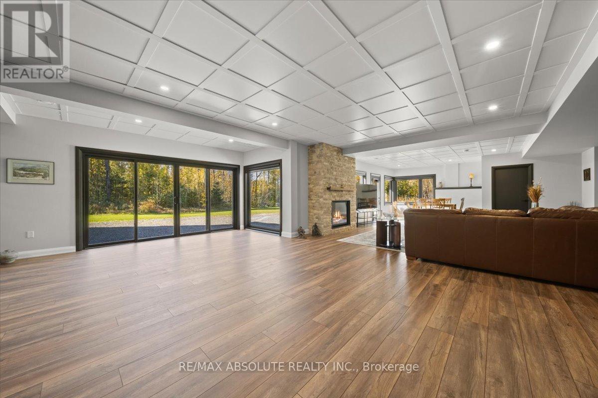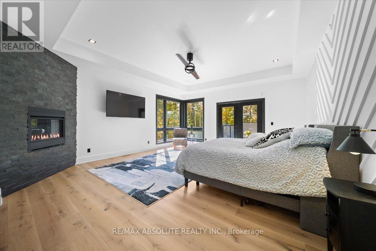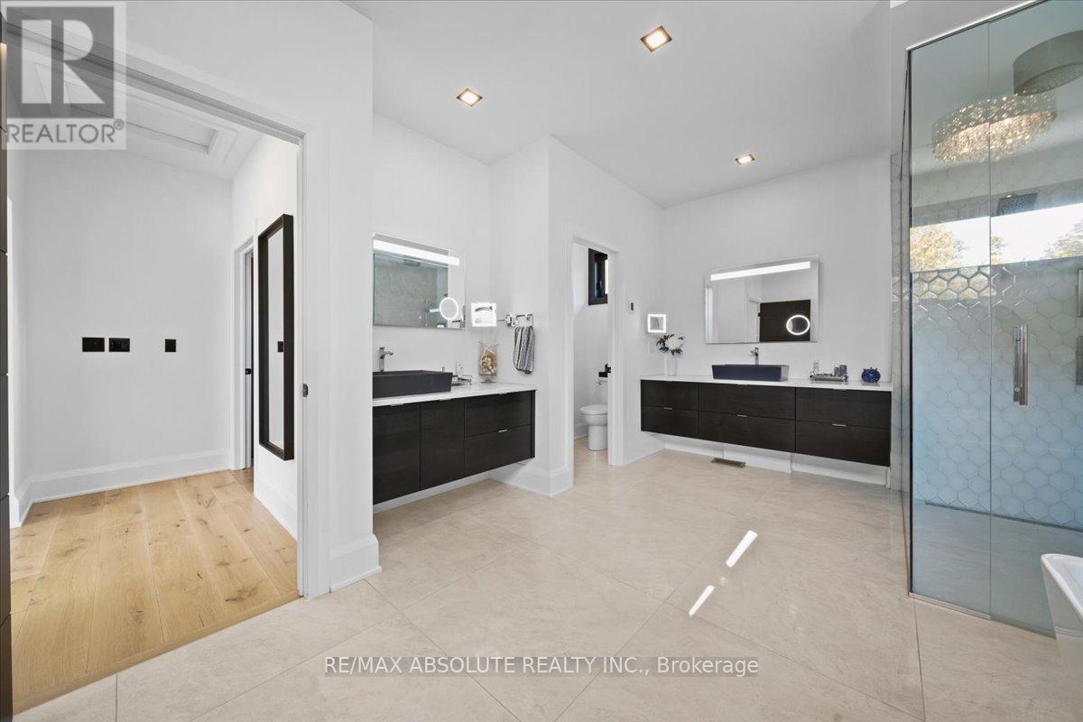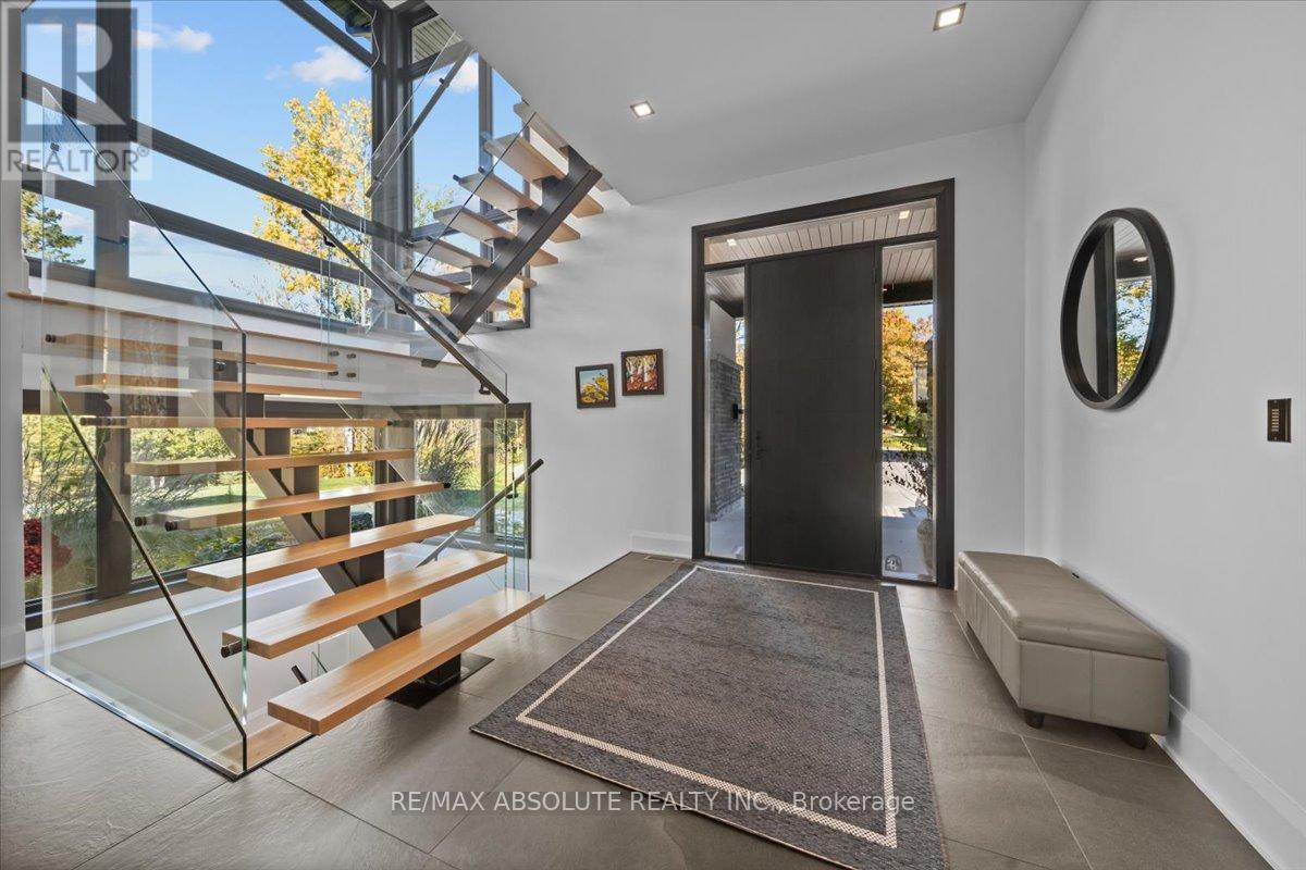 A BREATHTAKING private family retreat awaits! This is the ideal urban escape situated on over 2 acres in one of Ottawa's most beautiful estate communities! The circular PAVED driveway guides you towards a residence that demands attention! Strategically situated, professional landscaped, stone & stucco surround PLUS the gorgeous mature trees provide a memorable first tranquil impression! In floor heat can be found in the separate garage- an enthusiasts dream! Spanning approximately 7000 square feet of finished space, this home represents the pinnacle of modern luxury! The thoughtful floor plan offers meticulous craftsmanship, floor to ceiling windows, a 2 story GREAT room, 10 foot ceilings on the main & 9 on the upper & lower level & 8"oak hardwood. The Deslaurier kitchen was designed for both style & function, it offers TOP of the line Chef's appliances, everything on your DREAM WISH list & more INCLUDING the most amazing walk in pantry you have seen! The oversized patio doors allow for seamless indoor/outdoor living & guide you to the AMAZING outdoor living area! The 2 sided fireplace allows dining to become an experience in the formal dining room! PLENTY of enviable designs throughout including the mudroom & laundry room (2 washer & 2 dryers)! This home offers 2 primaries- 1 on the main & one of the 2nd! 5 bedrooms, 4 ensuites PLUS 2 powder rooms & a MAIN floor office! The glass used within the home enhances the feeling of spaciousness throughout especially on the staircase & the landing! The 2nd floor primary retreat offers a fireplace, private balcony, INCREDIBLE walk in closet & a SUPER LUX 5 piece ensuite. ALL baths offer heated floors. The FULLY finished WALKOUT lower level is an absolute masterpiece with OVER 2000 SF of finished space, glass walls in the gym & the large open area is SURE to impress! 200 amp, 20Kw Generator, Top of the line water filtration system, auto lighting & window blind system controlled through the Lutron app. NO expense spared! (id:49712)