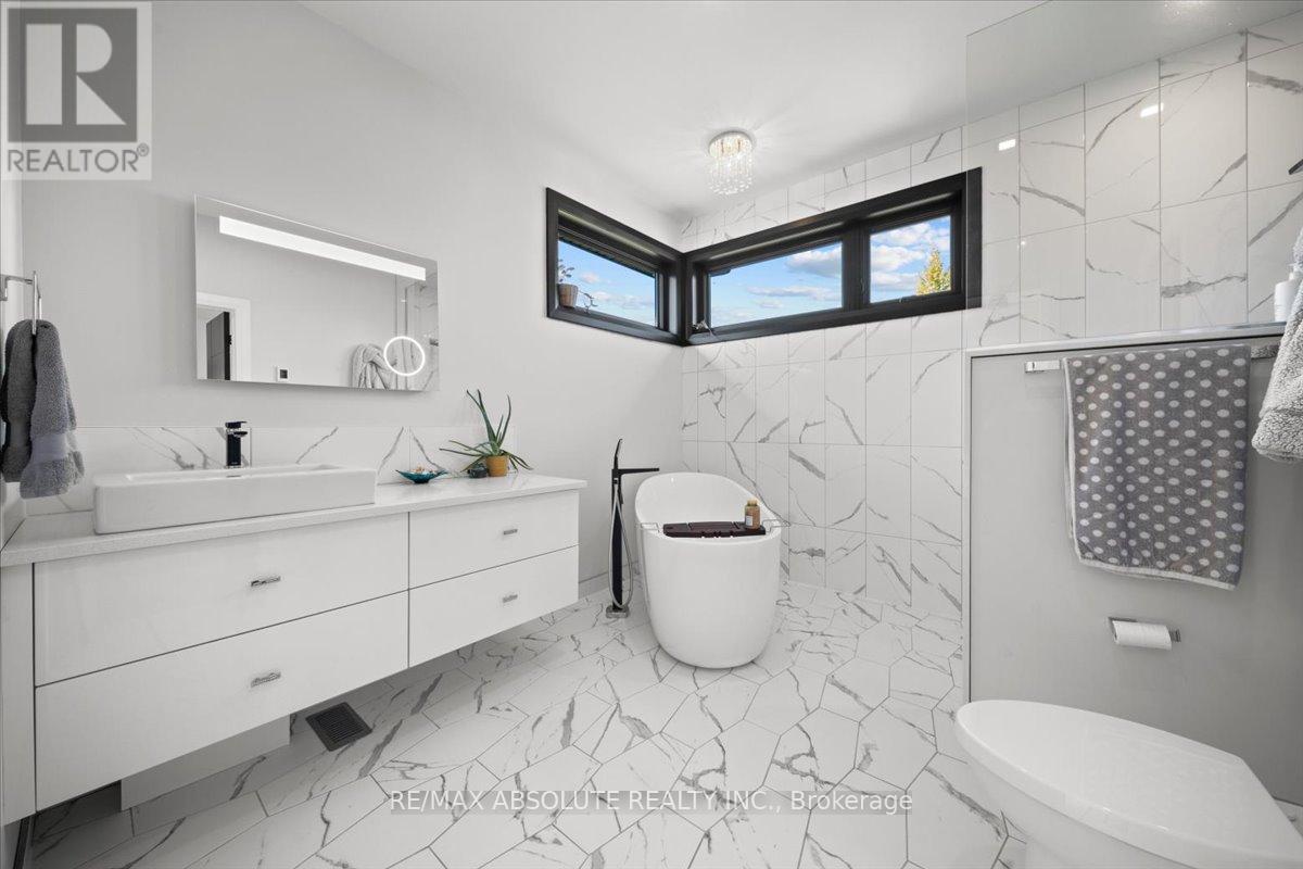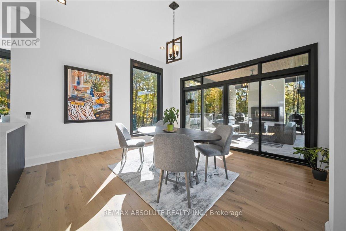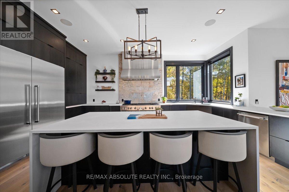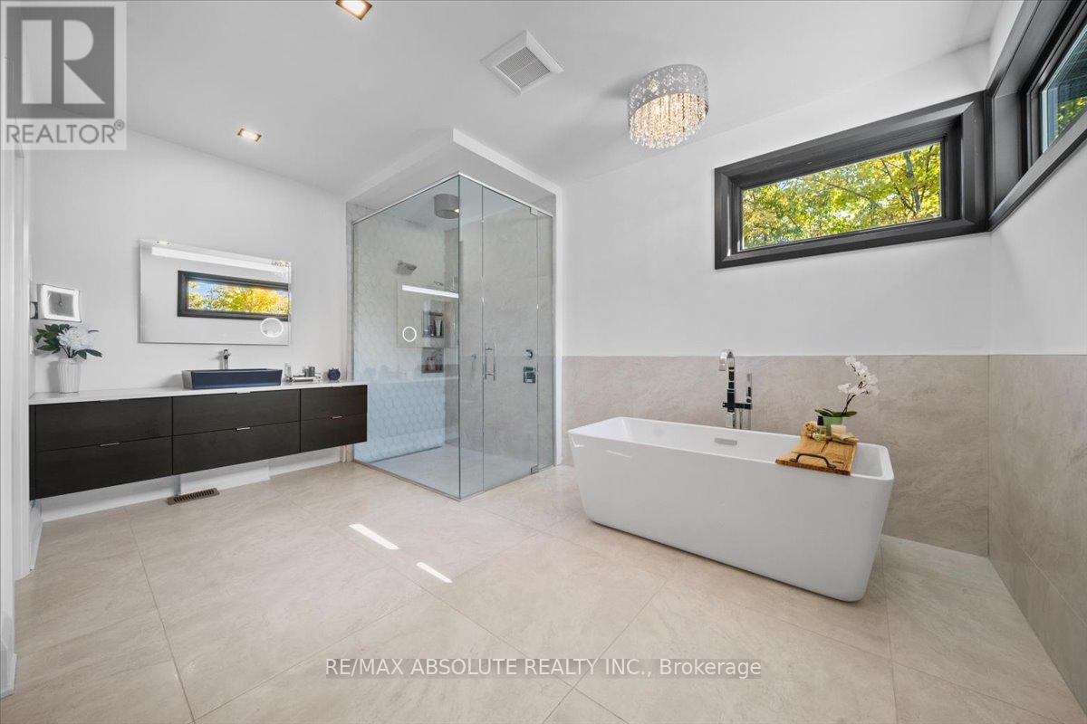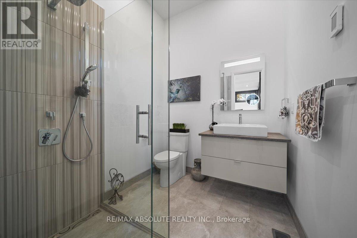 A BREATHTAKING private family retreat awaits! This is the ideal urban escape situated on over 2 acres in one of Ottawa's most beautiful estate communities! The circular PAVED driveway guides you towards a residence that demands attention! Strategically situated, professional landscaped, stone & stucco surround PLUS the gorgeous mature trees provide a memorable first tranquil impression! In floor heat can be found in the separate garage- an enthusiasts dream! Spanning approximately 7000 square feet of finished space, this home represents the pinnacle of modern luxury! The thoughtful floor plan offers meticulous craftsmanship, floor to ceiling windows, a 2 story GREAT room, 10 foot ceilings on the main & 9 on the upper & lower level & 8"oak hardwood. The Deslaurier kitchen was designed for both style & function, it offers TOP of the line Chef's appliances, everything on your DREAM WISH list & more INCLUDING the most amazing walk in pantry you have seen! The oversized patio doors allow for seamless indoor/outdoor living & guide you to the AMAZING outdoor living area! The 2 sided fireplace allows dining to become an experience in the formal dining room! PLENTY of enviable designs throughout including the mudroom & laundry room (2 washer & 2 dryers)! This home offers 2 primaries- 1 on the main & one of the 2nd! 5 bedrooms, 4 ensuites PLUS 2 powder rooms & a MAIN floor office! The glass used within the home enhances the feeling of spaciousness throughout especially on the staircase & the landing! The 2nd floor primary retreat offers a fireplace, private balcony, INCREDIBLE walk in closet & a SUPER LUX 5 piece ensuite. ALL baths offer heated floors. The FULLY finished WALKOUT lower level is an absolute masterpiece with OVER 2000 SF of finished space, glass walls in the gym & the large open area is SURE to impress! 200 amp, 20Kw Generator, Top of the line water filtration system, auto lighting & window blind system controlled through the Lutron app. NO expense spared! (id:49712)