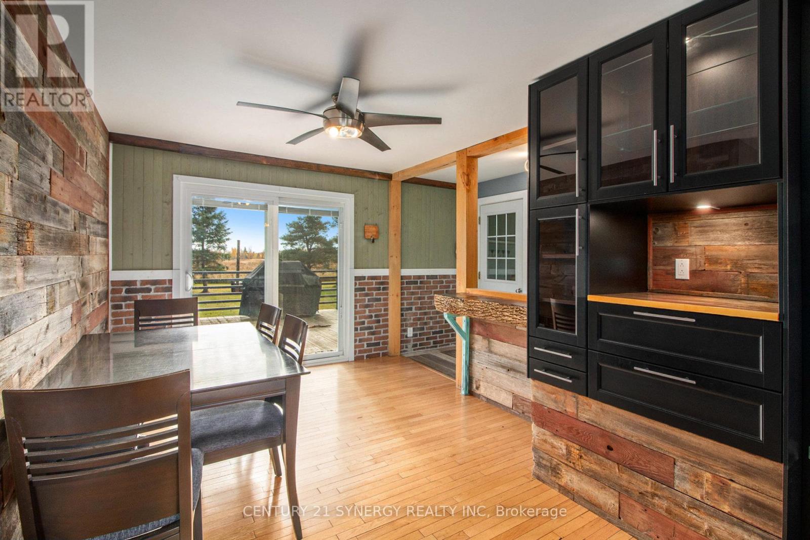 1 ACRE LOT Country Charm Meets In-Town Convenience! Discover the perfect blend of rural tranquility and urban accessibility with this beautifully maintained 3-bedroom, 2-bathroom detached bungalow, nestled on a spacious 1-acre lot in the heart of Casselman. Backing onto open farmland with no rear neighbours, this property offers breathtaking country views and a sense of privacy that's hard to find. Inside, the home features a functional main floor layout with a spacious primary bedroom and two additional well-sized rooms with custom built in closets, perfect for family, guests, or a home office. Hardwood and tile floors run throughout the main level, adding a clean, elegant touch. The heart of the home is the stylishly renovated kitchen (2018), complete with warm butcher block countertops and ample custom cabinetry ideal for home chefs and entertainers alike. A bright, updated 4-piece bathroom (2010) serves the main floor, while the fully finished basement includes a second large 4-piece bathroom with a double vanity, ideal for guests or a growing family. A cozy woodstove (2016) brings warmth and character to the lower level. Step outside to a beautifully landscaped backyard oasis featuring a 14 X 25 rough cut deck off the dining room, raised firepit, a productive vegetable garden, and plenty of open space to roam or relax. The oversized single garage (14' x 26') offers radiant floor heating & is perfect for parking, storage, or use as a workshop. Additional highlights Detached double door storage shed and the opportunity to build your own shop, ready for hydro with 2 4" conduit from the home to the shop area! Peaceful country living with easy access to local amenities, schools, and transportation. Don't miss this rare opportunity to own a slice of countryside comfort with all the modern features you need! (id:49712)