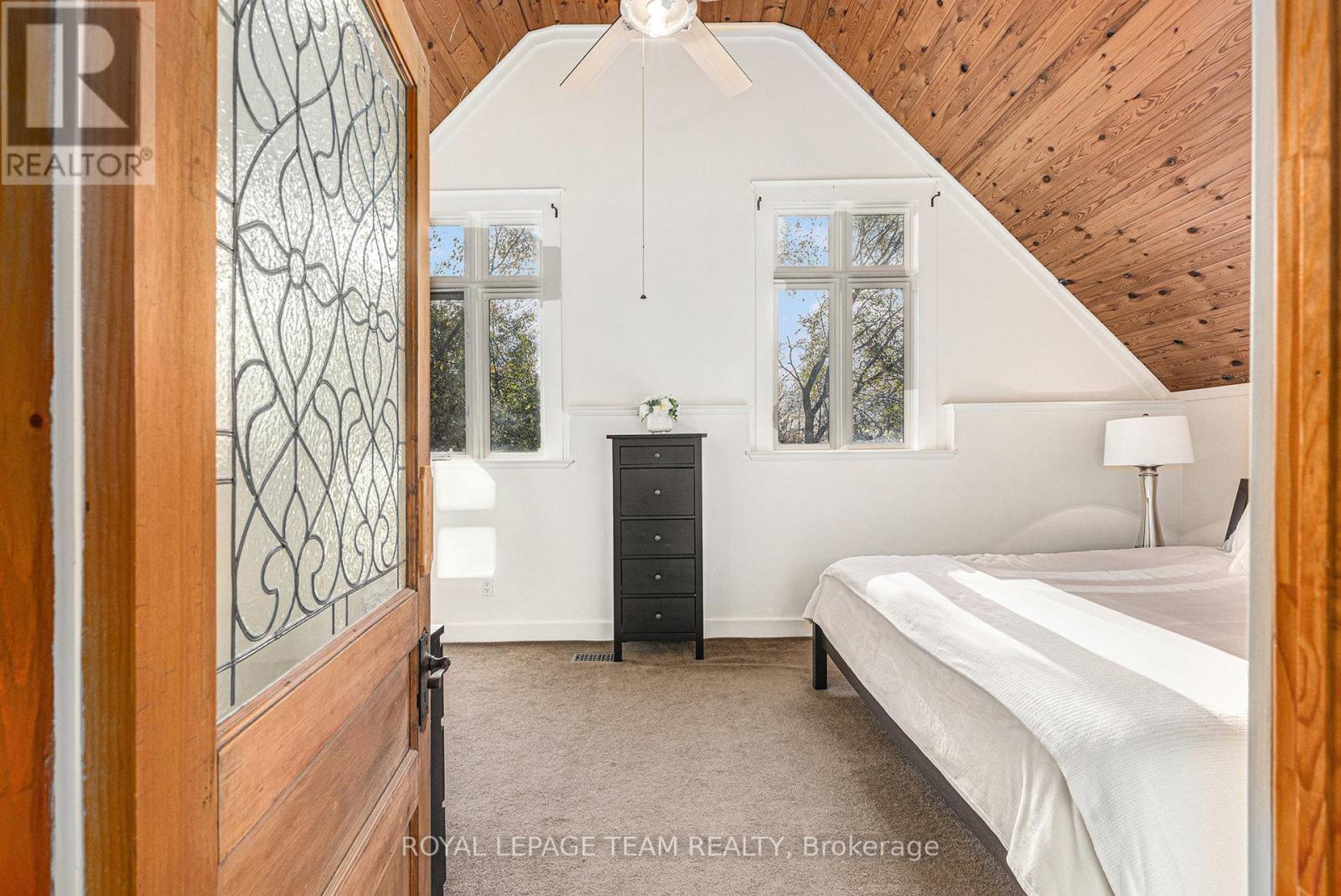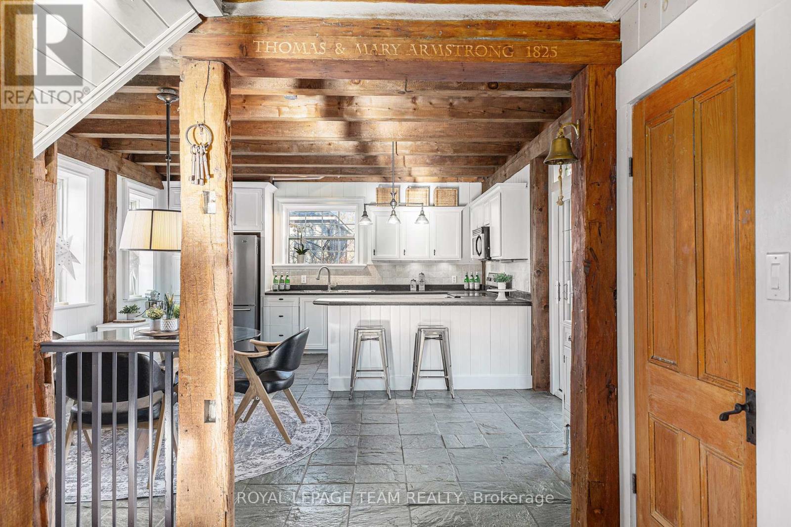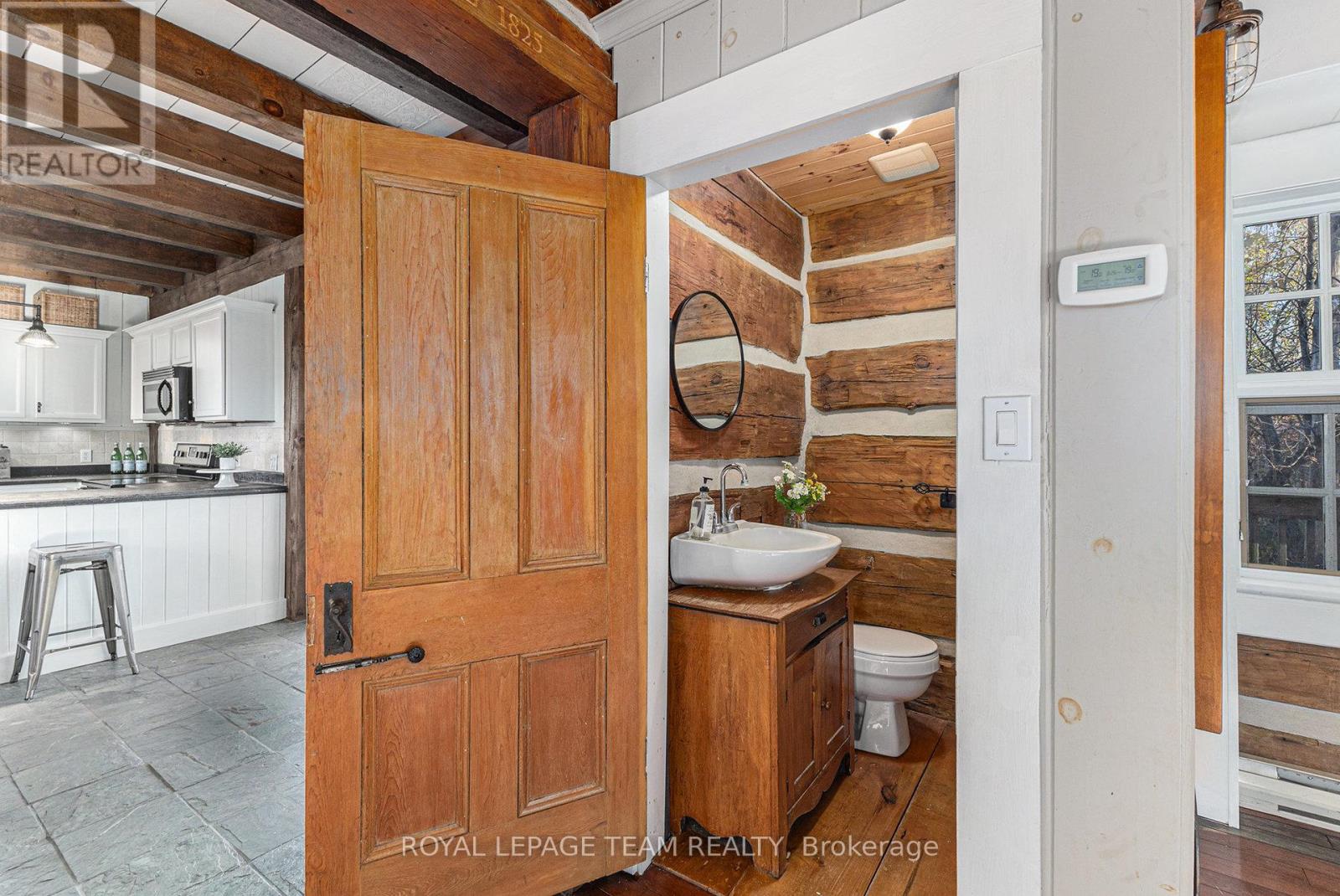 Step into a gorgeous one-of-a-kind log home, expertly crafted in 2006 by re-imagining and joining two original log houses from the 1800s. Every hand-tagged cedar and white-pine log tells a story of rebirth-dismantled, carefully numbered, and seamlessly woven into a magnificent single residence. Here, vintage charm meets modern comfort. As you cross the threshold, a bright and open-concept living space welcomes you. Sunlight pours in through generous windows, illuminating the rich log walls and exposed beams - lending a sense of rustic elegance and relaxed sophistication throughout. The spacious living room with a handsome gas fireplace create the perfect setting for both quiet evenings and lively gatherings. The oversized kitchen is sure to become a favourite gathering place. Generous counters wrap around a central peninsula and flow into the large eating area. An abundance of windows bathe the space in natural light, while a patio door opens onto a rear deck. Upstairs you'll find three beautifully proportioned bedrooms beneath vaulted ceilings, and a luxurious four-piece bathroom featuring a separate shower. The fully finished basement is the perfect extension of your family's living space. There's a cozy family room that's great for movie nights, game time, or just relaxing together. An extra area provides the ideal spot for working from home or helping the kids with homework/ gym. The exterior offers recreational space ( fire pit) as well as a superb bunkie with a loft/ bunk-bed area. Your new home is a short walk from both the Fitzroy provincial beach area and the Carp river. This is more than a house - it's a legacy of craftsmanship and character, ready to become your home. (id:49712)