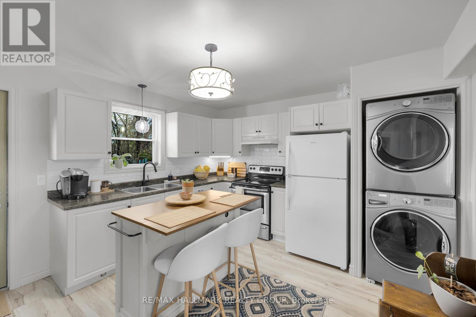 Welcome to 142 Park Street, this beautifully cared for 2-bedroom, 1-bathroom home, is perfectly situated just steps from schools, downtown shopping, and the stunning St. Lawrence River. Whether you're a young family, professional, or looking to downsize, you'll love the convenience and comfort this property offers. The main level has been fully renovated, featuring a bright and modern layout. Enjoy a stylish kitchen with clean finishes, an open dining and living space, plus a den area and convenient main-floor laundry - designed for today's lifestyle and effortless living. Upstairs, you'll find two inviting bedrooms and a gorgeous updated bathroom boasting a spa-like feel with penny tile flooring and a timeless tub surround. Every detail feels fresh, crisp, and thoughtfully curated. Step outside to your large, fully fenced backyard - an ideal retreat offering privacy for relaxing, entertaining, or enjoying family time. Impeccably maintained and move-in ready, this home blends charm and modern updates. Want all this to be yours? Call today to book your private showing! (id:49712)