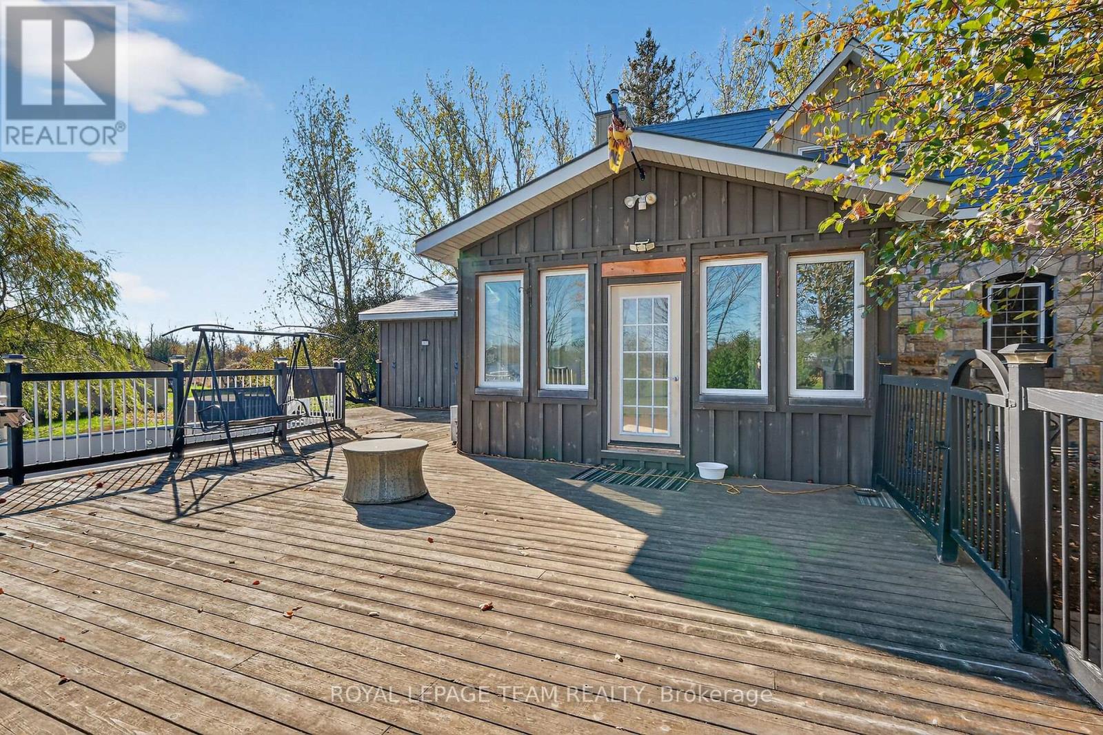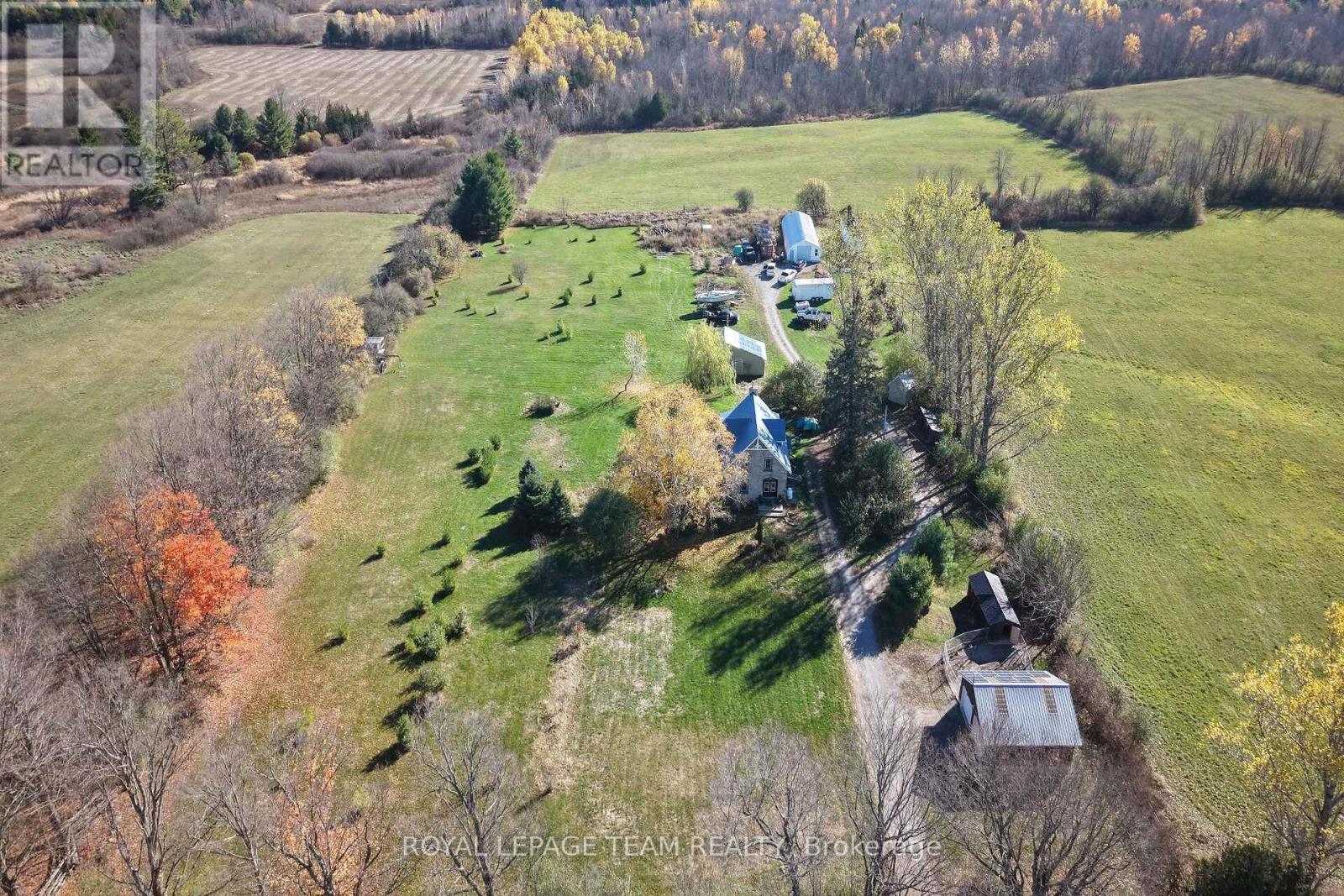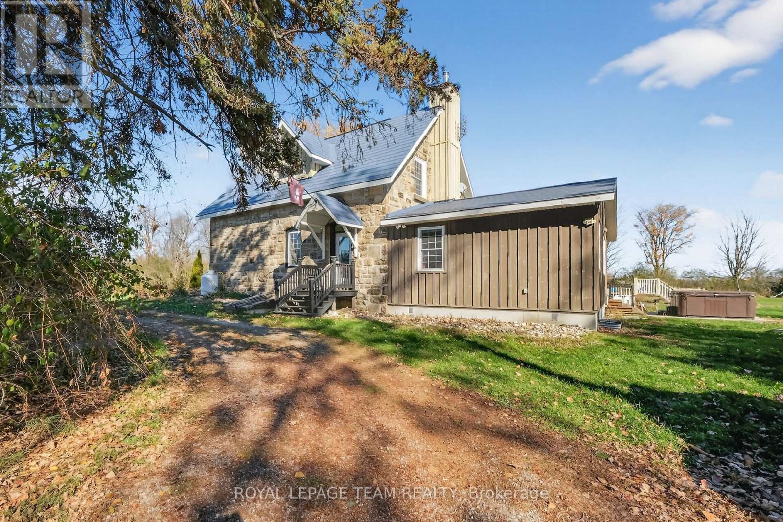 Just south of the growing town of SmithsFalls on a tree lined country road you will find this Century stone farm home. Its perched on the high point of the cedar rail fenced 4.29 acres of land that it has watched over for 110 plus years! The home is set back from the road on these tranquil acres, is surrounded by mature maples and farm hay fields. I hope you take a moment to think about the horse that likely pulled a bucket to excavate for its stone foundation or the craftsmen that toiled to build it with chisels, axes all long before conventional tools were born to our current trades. This home is an exceptional example of homestead that has been loved and improved. You'll appreciate that its stone joints have been repointed, a metal roof has been installed, windows and doors replaced while maintaining the interiors deep wall character and period trim, the plumbing and electrical systems have been updated, there is a new furnace and energy efficient heat pump, the country kitchen was rebuilt and this home has been lovingly expanded to suite our modern life style needs for more family spaces using a board and batten exterior to compliment the stone. Through the ornamental gates there is a separate 2 car garage, an updated septic system ( aprox 2012 ), a 24' x 70' insulated, heated hobby quonset building professionally built at the rear of the property for those that dream big with their hobbies. But it's time for a new chapter to be added to its 110 year old story and for that, its now looking for a new family to call it home. Please take the time to explore the many photos for this 3 bedroom 2 bath home, its virtual tour and the attached home plan layout. Book a private showing, walk the grounds, sit on the deck, fall in love and add your chapter into this stone homes story. (id:49712)