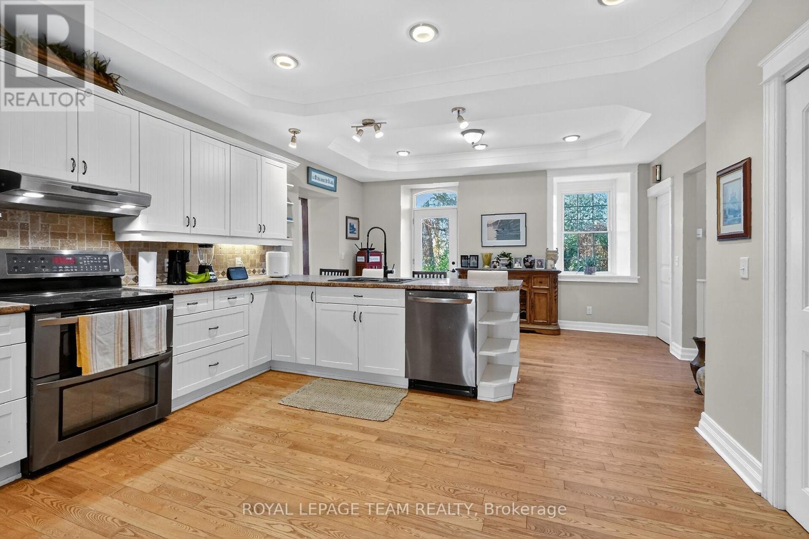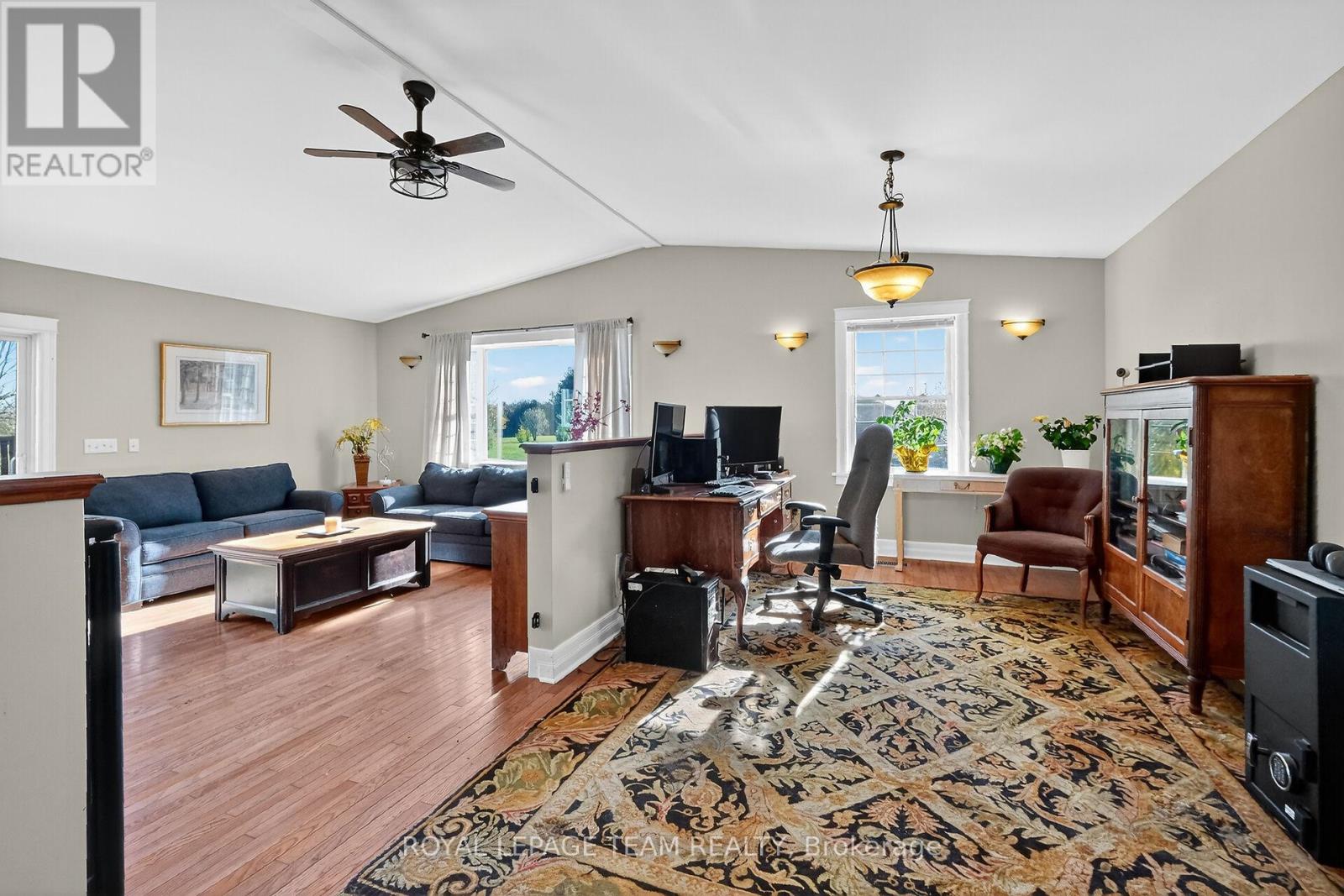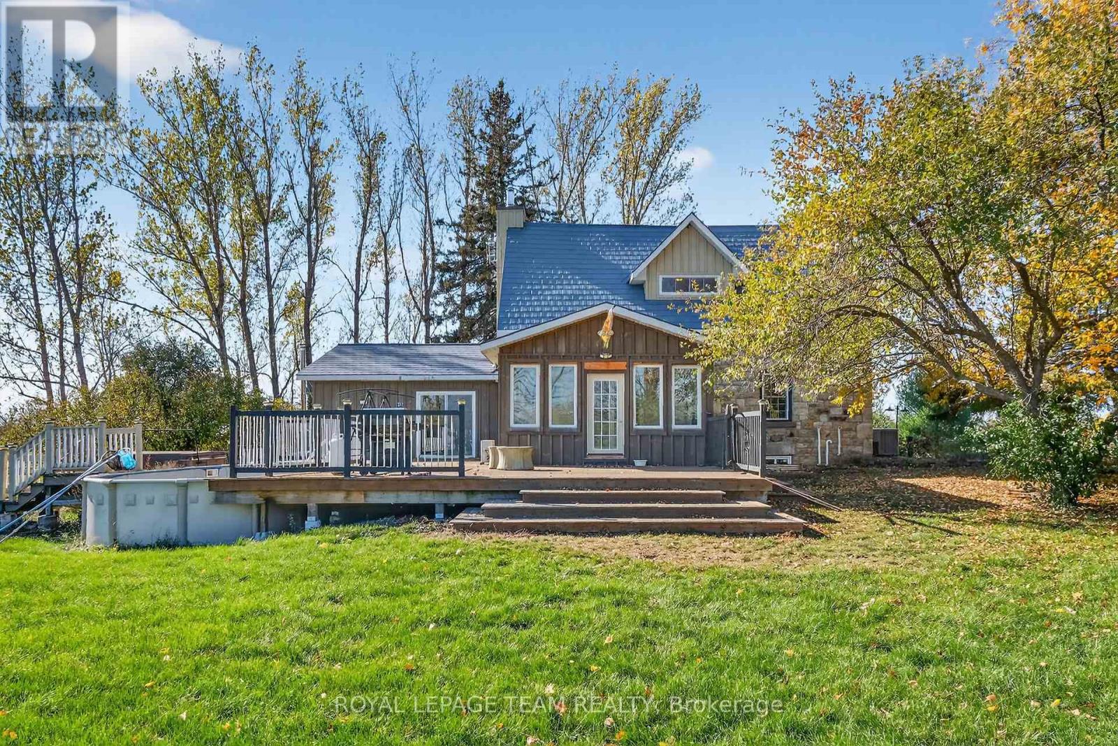 Just south of the growing town of SmithsFalls on a tree lined country road you will find this Century stone farm home. Its perched on the high point of the cedar rail fenced 4.29 acres of land that it has watched over for 110 plus years! The home is set back from the road on these tranquil acres, is surrounded by mature maples and farm hay fields. I hope you take a moment to think about the horse that likely pulled a bucket to excavate for its stone foundation or the craftsmen that toiled to build it with chisels, axes all long before conventional tools were born to our current trades. This home is an exceptional example of homestead that has been loved and improved. You'll appreciate that its stone joints have been repointed, a metal roof has been installed, windows and doors replaced while maintaining the interiors deep wall character and period trim, the plumbing and electrical systems have been updated, there is a new furnace and energy efficient heat pump, the country kitchen was rebuilt and this home has been lovingly expanded to suite our modern life style needs for more family spaces using a board and batten exterior to compliment the stone. Through the ornamental gates there is a separate 2 car garage, an updated septic system ( aprox 2012 ), a 24' x 70' insulated, heated hobby quonset building professionally built at the rear of the property for those that dream big with their hobbies. But it's time for a new chapter to be added to its 110 year old story and for that, its now looking for a new family to call it home. Please take the time to explore the many photos for this 3 bedroom 2 bath home, its virtual tour and the attached home plan layout. Book a private showing, walk the grounds, sit on the deck, fall in love and add your chapter into this stone homes story. (id:49712)