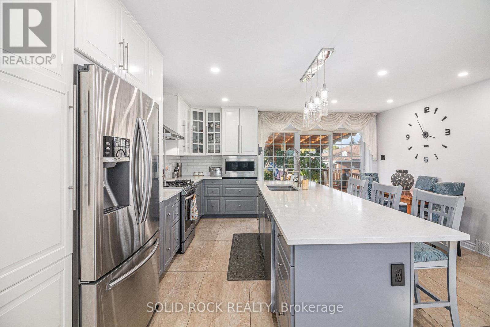 Beautifully Renovated 4 Bedroom Brick Bungalow in a Quiet Residential Neighbourhood. Welcome to this well-maintained and completely renovated brick bungalow, perfectly situated in a quiet, family-friendly area. This stunning 4 bedroom, 2 full bathroom home offers the perfect blend of modern luxury and everyday comfort. Step inside to discover manmade marble slab floors, elegant granite countertops and two granite wall fireplaces, one gas and one electric, creating warmth and sophistication throughout. The open-concept living, dining and kitchen area is bright and inviting, featuring an oversized patio door that leads to a private deck, ideal for morning coffee or evening relaxation. The home has been completely updated with new insulation, drywall, windows, doors and roof shingles within the last 5 years, ensuring peace of mind and energy efficiency. A spacious laundry room and ample storage, natural gas furnace and hot water on demand add to the homes practical appeal, while the fenced backyard, detached garage, and storage shed provide plenty of space for outdoor living and hobbies. Beautifully finished and move-in ready, this property offers the best of both style and substance, a true gem in a wonderful neighbourhood in Cornwall. (id:49712)