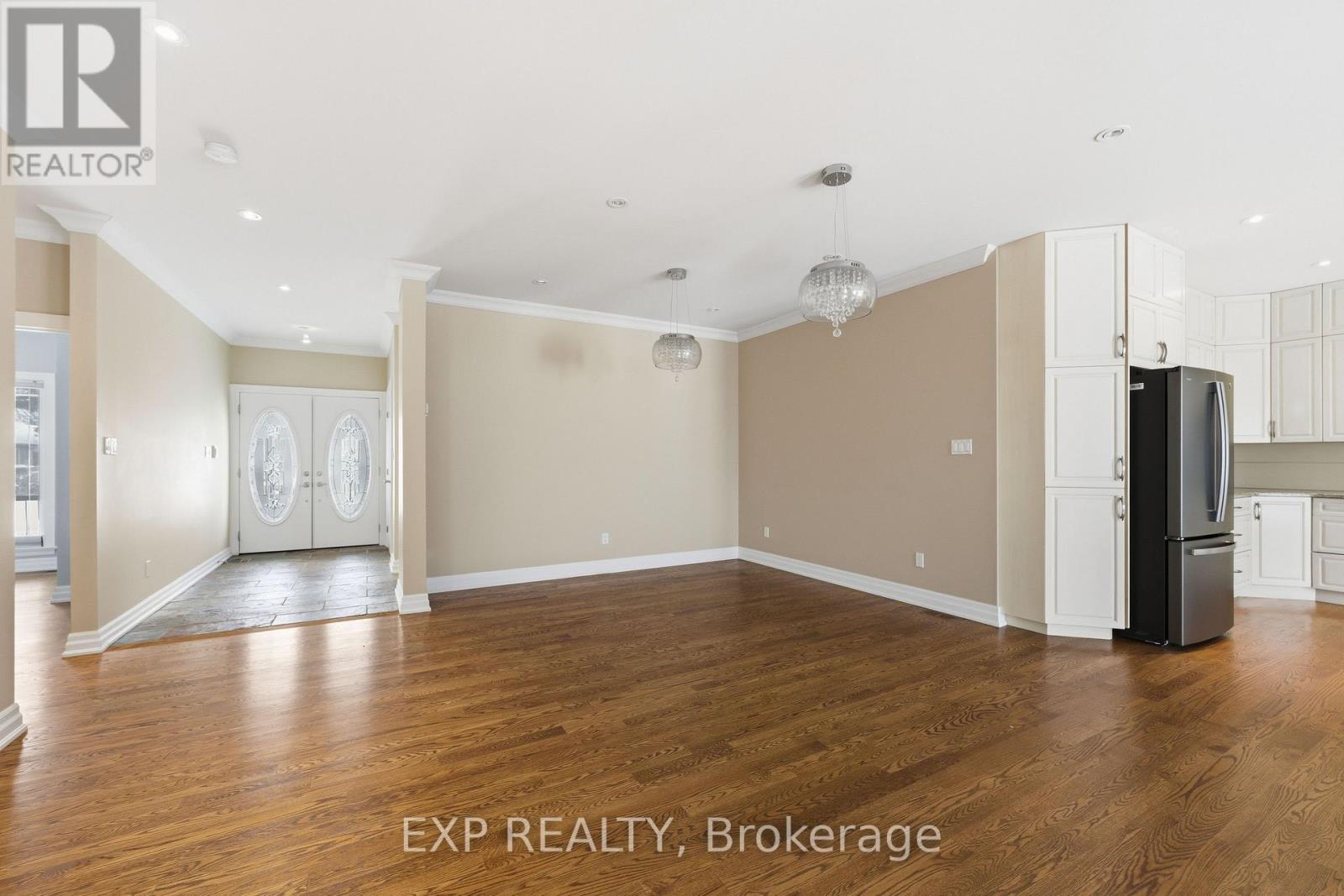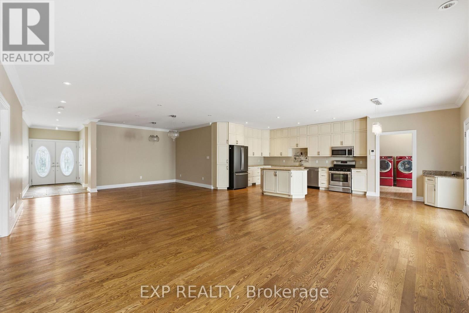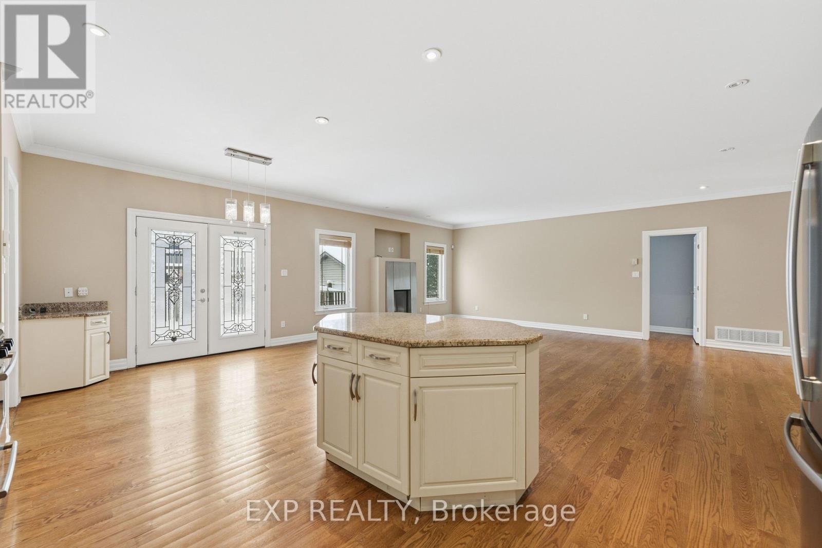 Welcome to 16 Chippewa Avenue, an impressive custom-built bungalow that combines refined finishes, exceptional space, and a full separate lower-level unit. Thoughtfully designed and beautifully maintained, this home offers comfort, versatility, and a welcoming atmosphere from the moment you step inside. The main level opens with a bright foyer leading into a stunning open-concept living space. Warm hardwood floors, elegant crown moulding, and generous windows fill the home with natural light. The living area features a sleek modern fireplace, while the dining and kitchen spaces connect seamlessly for easy everyday living and effortless hosting. The chef-inspired kitchen offers extensive cabinetry, granite counters, stainless steel appliances, and a large centre island that anchors the room. A dedicated dining area sits just off the kitchen with patio doors that lead outside. The main level includes three spacious bedrooms and two and a half bathrooms. The primary suite provides a peaceful retreat with abundant space, a large window, and a luxurious ensuite complete with double vanity, walk-in shower, and deep soaker tub. The additional bedrooms are well-sized and positioned near the main bath and upper-level laundry. The lower level features a fully separate one-bedroom, one-bathroom unit with its own kitchen, living area, and private entry through the attached oversized two-car garage. The floors in the basement will be added before tenants move in, ensuring a polished finish throughout. Tenants are also free to sublet the basement if they wish, offering added flexibility and income potential. Outdoors, the wide front porch, elegant stone exterior, and large driveway create an inviting presence. The lot offers ample room for outdoor enjoyment and future customization. Located in the Meadowlands area with convenient access to transit, shopping, and everyday amenities, 16 Chippewa Avenue delivers space, flexibility, and timeless appeal. (id:49712)