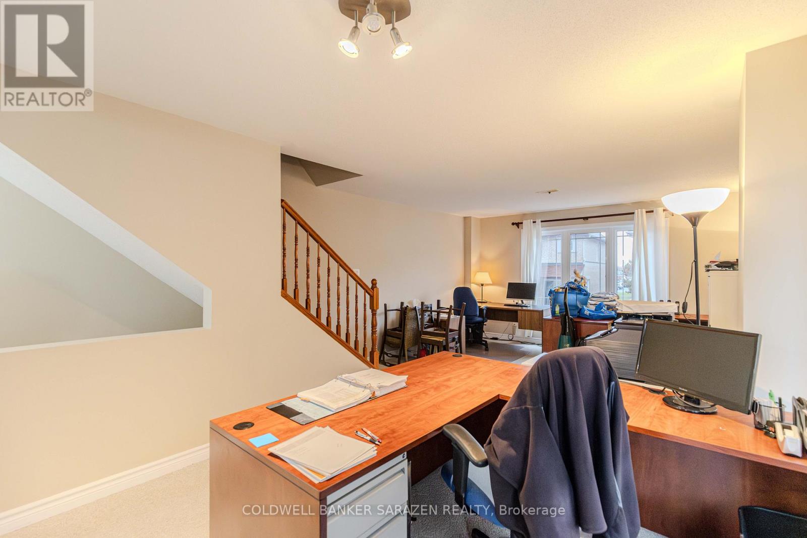 Welcome to 160 Paseo Private, a beautifully maintained three-level condominium townhouse located in the heart of Centrepointe, Nepean. Built in 2008 and offering nearly 1,400 sq. ft. of living space, this home combines modern comfort with an unbeatable location. The open-concept main level features a spacious living and dining area, a chef-inspired kitchen with extended countertops, a full pantry wall, and patio doors leading to a balcony. A convenient powder room completes this floor.Upstairs, the primary bedroom impresses with vaulted ceilings, a wall of closets, a private balcony with sunset views, and a full ensuite bath. The second bedroom has cheater-ensuite access to another full bathroom, along with a laundry/utility area and a storage room on the same level. The top-floor loft provides versatile space-ideal as a home office, media room, or third bedroom.Parking spot #104 right at your doorstep, and plenty of visitor parking. The monthly condo fee $397.67 covers road and walkway maintenance, snow removal, landscaping, building security, janitorial services, waste disposal, and insurance for common areas. Situated steps from Centrepointe Park, College Square shopping, Ben Franklin Place, the Ottawa Public Library, Meridian Theatre, and public transit, this property offers both lifestyle and convenience. Close to Algonquin College, Hwy 417, and multiple shopping centers, it's perfect for homeowners and investors alike. (id:49712)