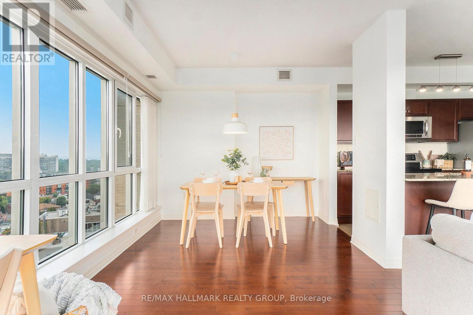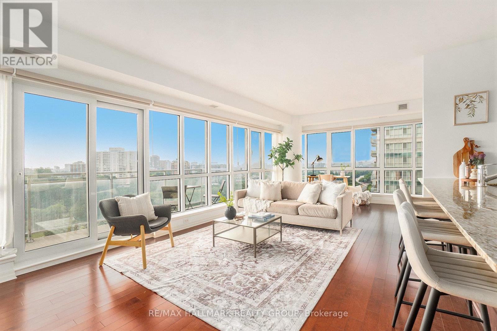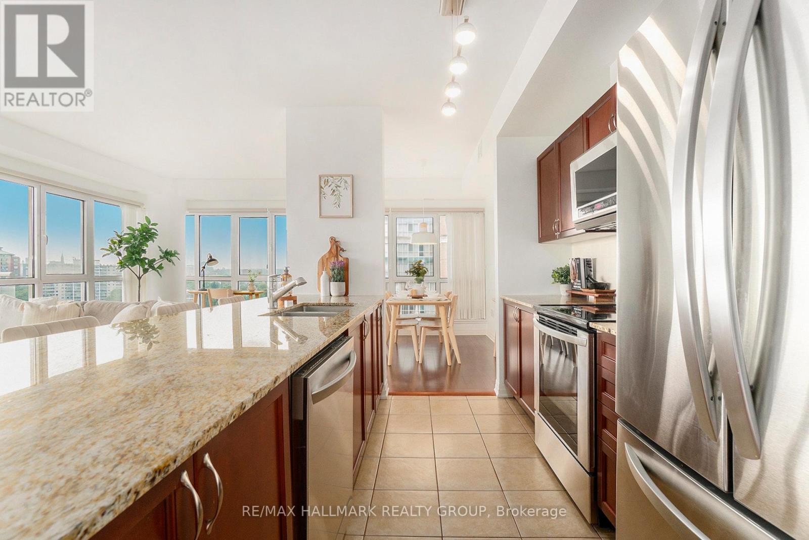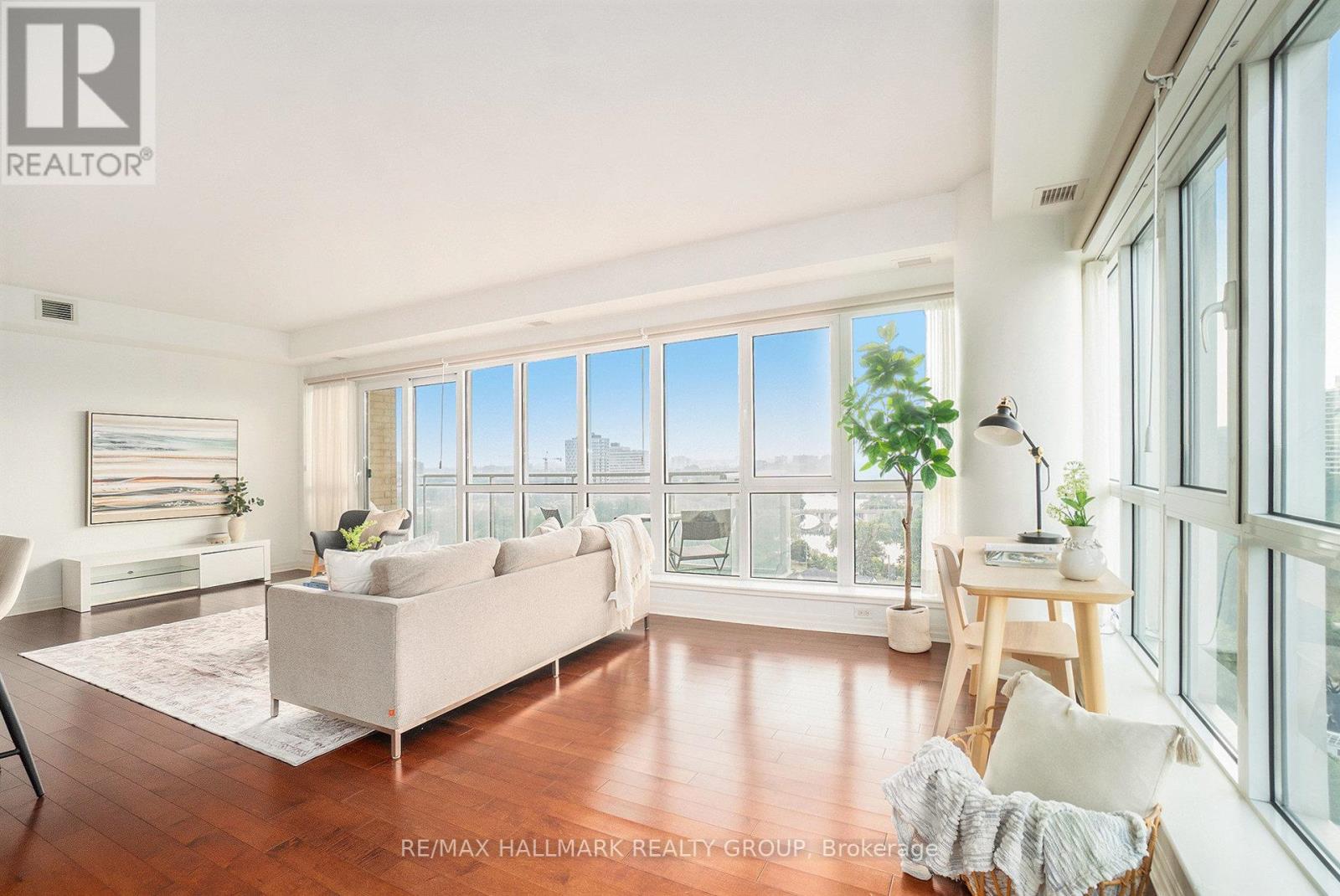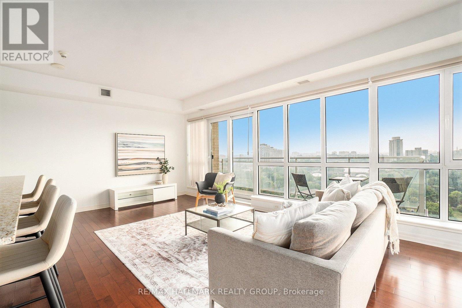 Welcome to 1602-90 Landry Street - a bright and spacious corner-unit condo boasting panoramic views of the Rideau River and downtown Ottawa. This 2-bedroom, 2-bathroom suite offers 1,185 sq ft (per MPAC) of thoughtfully designed living space with hardwood and tile flooring throughout. The open-concept kitchen features granite countertops, stainless steel appliances, and a peninsula perfect for casual dining or entertaining. Floor-to-ceiling windows flood the living/dining area with natural light, while the large balcony invites you to enjoy stunning city and river views. The primary bedroom includes a walk-in closet and a private ensuite, while the second bedroom is served by a full bathroom. Added conveniences include in-unit laundry, underground parking with a Level 2 EV charger, and a storage locker. Enjoy access to premium amenities including an indoor pool, fitness center, and recreation room. Ideally located in a walkable, amenity-rich neighborhood - just 400m to Metro, with Beechwood/MacKay and Vanier/Meilleur bus stops nearby. Kingsview Park and Ashbury College (1 km) add to the appeal of this exceptional location. Experience a perfect blend of comfort, lifestyle, and convenience in this sought-after Ottawa community. A rare opportunity not to be missed. (id:49712)