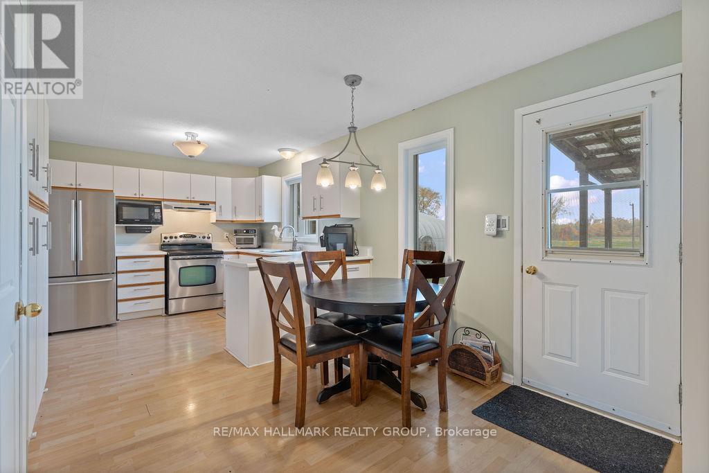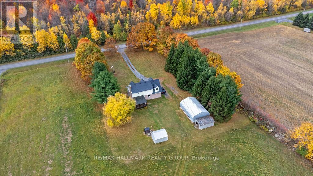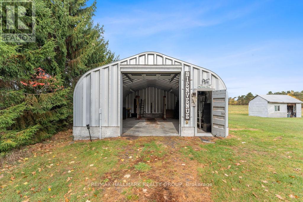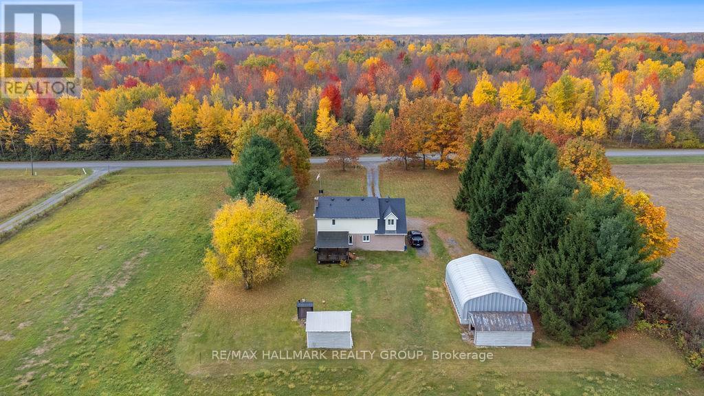 Welcome to this charming country home, just 10 minutes from Casselman and 45 minutes to downtown Ottawa. Sitting on a beautiful and private one-acre lot with no rear neighbours, this property offers the perfect balance of space, comfort, and convenience. The main floor features a bright and functional layout with a spacious living area, an open kitchen with direct access to your covered back deck, and a three-piece bathroom. Upstairs, you will find two spacious bedrooms, a full bathroom, and convenient second-floor laundry, but what truly makes this home special is the INCREDIBLE STUDIO! Whether you are an artist, working from home, or simply looking for a place to let your creative side run wild, this space is filled with natural light and endless potential. The unfinished basement offers high ceilings and convenient walkout access directly to the garage. Heated by an electric furnace, the home also includes a secondary HEATMOR wood furnace option for added flexibility. Outside, a 36'x25' detached workshop with a car hoist (built in 2016) provides endless possibilities for car enthusiasts or anyone in need of a versatile workshop. The property also includes an additional 20'x12' detached garage for extra storage and a wood shed. UPDATES: New windows (2025), Brand-new east eavestroughs (scheduled for installation), metal slate roof with lifetime warranty (2012), wood furnace will be fully serviced prior to closing. This is what country living is all about, with peaceful views and only farmers' fields stretching behind you. If you have been looking for a home with space to unwind while still enjoying the convenience of nearby amenities, this one is the perfect fit. (id:49712)