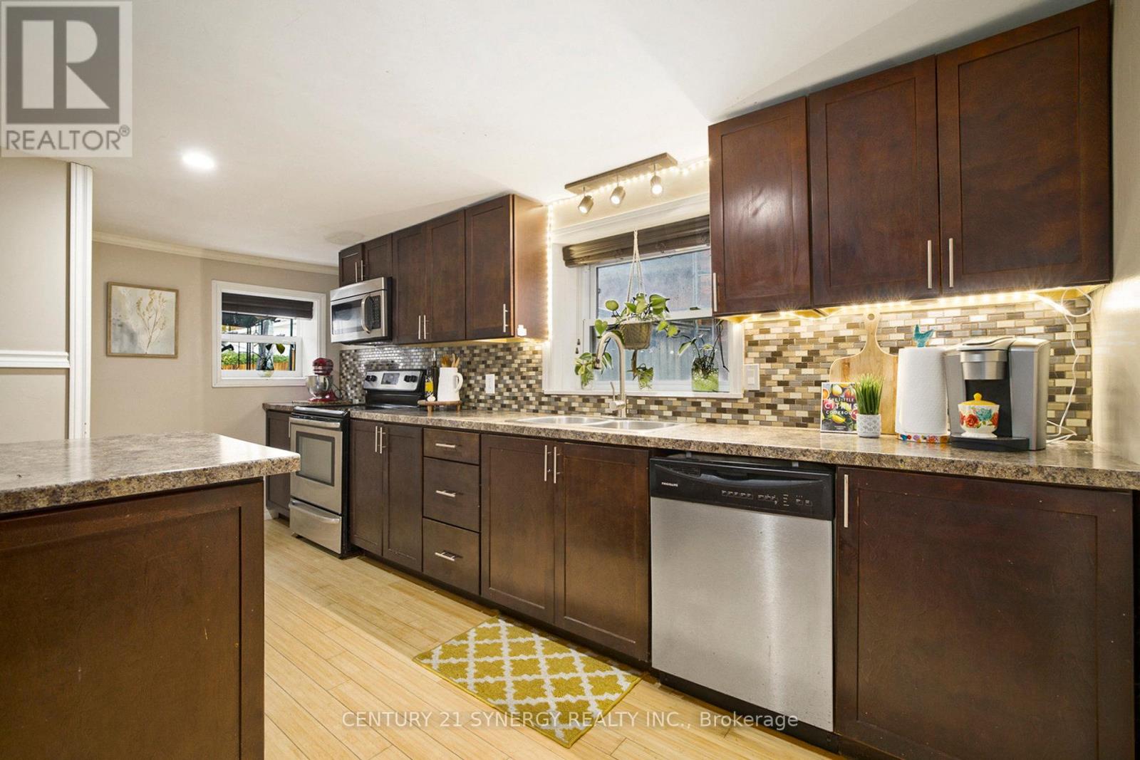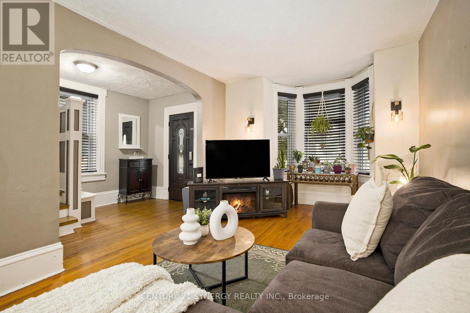 Open House: Sunday, October 26 from 2-4pm. Welcome to this beautifully maintained 2.5 storey brick home, ideally located in the heart of Smiths Falls, just steps to downtown, shops, restaurants, parks, and schools. This Victorian-style beauty offers thoughtful updates and ample of space for family living.The main floor features a spacious living room with a lovely bay window, a large central dining room with a convenient 2-piece powder room, and a renovated kitchen offering abundant counter space, espresso cabinetry, a peninsula island and pantry space. At the back of the home, you'll find a bright mudroom and laundry area with a separate entrance from the side door and rear access to the fully fenced backyard, complete with a deck, gazebo, pool, and detached garage. A second rear staircase from the mudroom leads to the large primary bedroom with soaring ceilings, which could easily serve as a family room, office, gym or flex space. The primary connects to a beautifully updated 4-piece ensuite bath (renovated in approx. 2015) that continues through to a hallway with three additional well-appointed bedrooms. The unfinished attic offers excellent storage and the potential for future development. Notable updates include: Roof (2022), Furnace, A/C & Hot Water Tank (2018), Windows (Nov 2016), and refreshed kitchen and baths within the last 10 years. Move-in ready and full of charm, this property offers peace of mind with modern system updates, all in a prime walkable location. (id:49712)