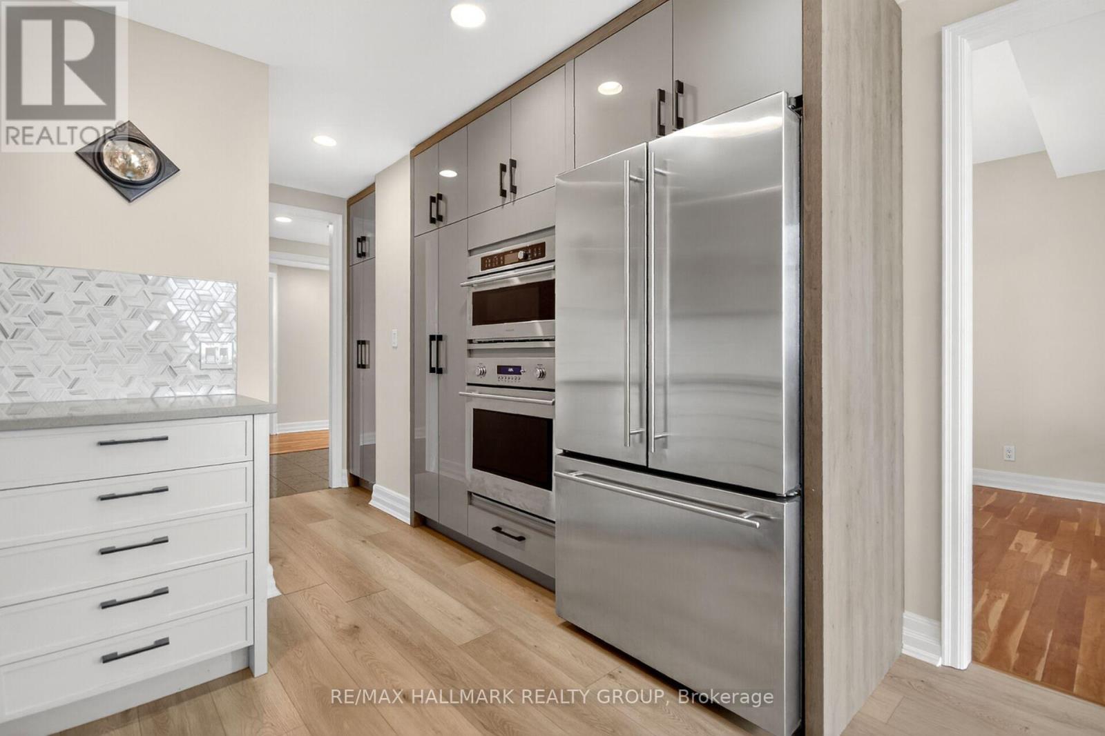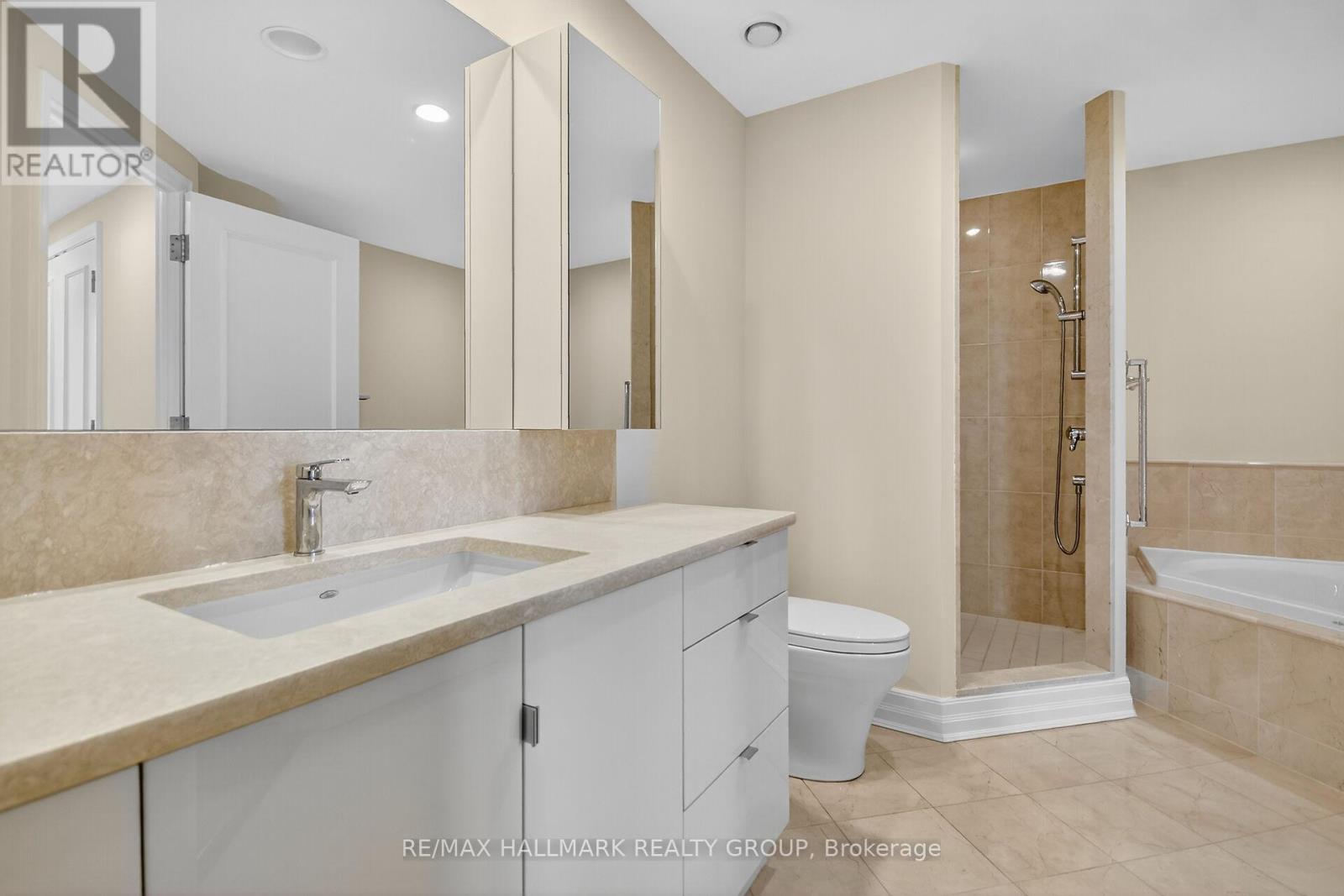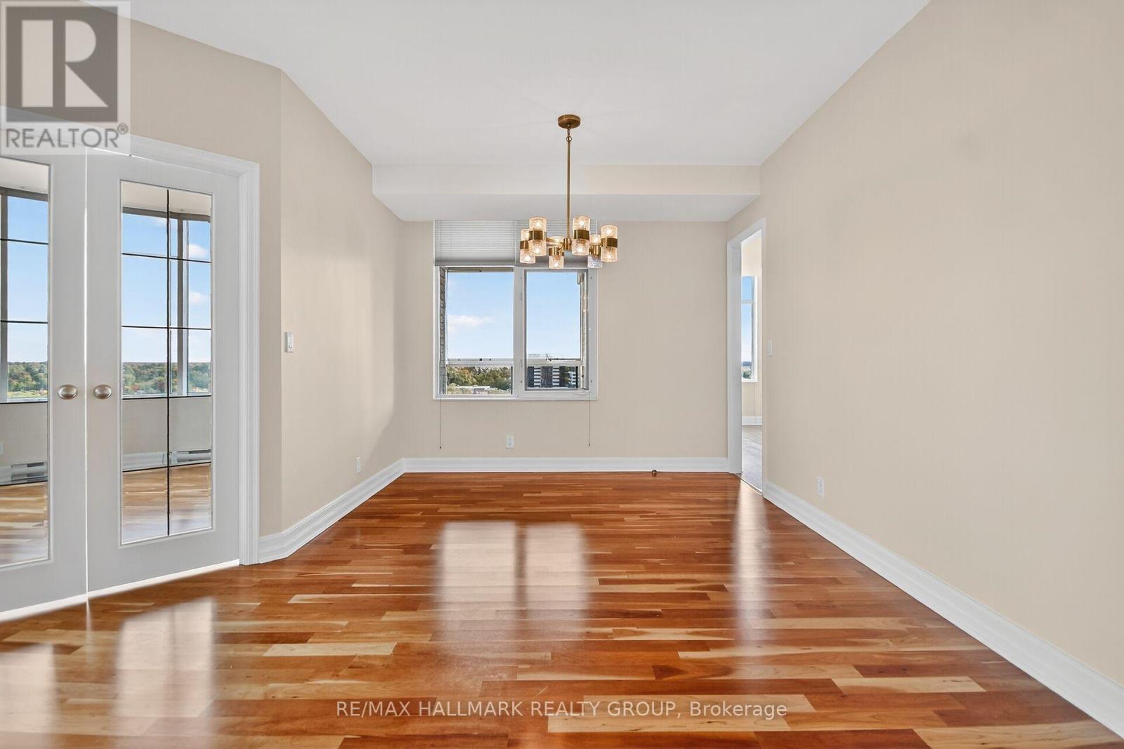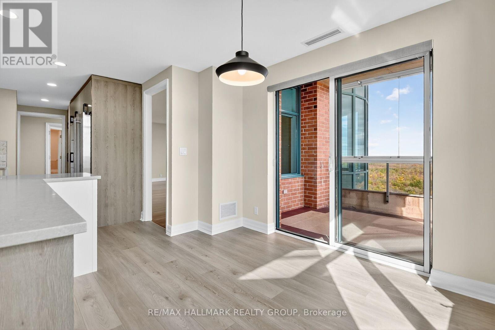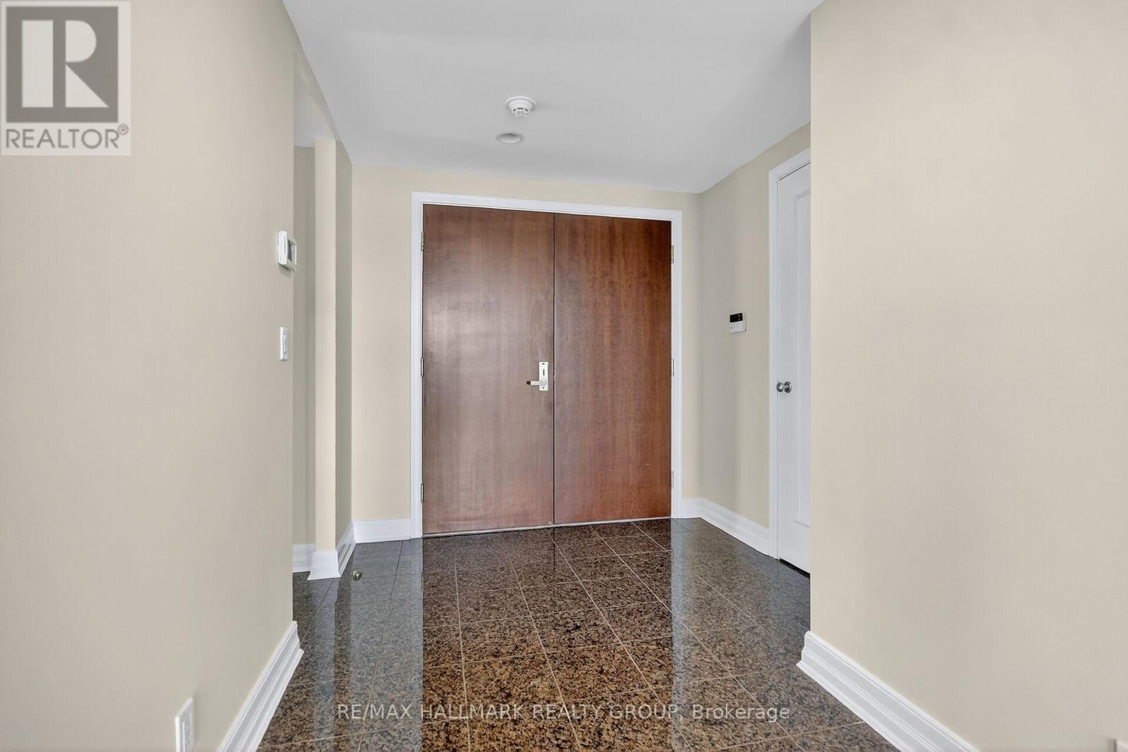 $1,325 MonthlyWelcome to an extraordinary resort style setting along the picturesque Rideau River in one of Ottawa's most prestigious gated communities. This impressive 1836 square foot corner residence offers two bedrooms plus a spacious den and two and half bathrooms. Fabulous open concept living and dining rooms and adjacent study with expansive wall to wall windows showcasing amazing cityscape views. Beautifully renovated chef's kitchen featuring expanded cabinetry, quartz countertops, ceramic backsplash, built in wine fridge and bright eat in area with access to a spacious glass enclosed balcony. Primary bedroom suite includes a walk in closet with built in custom cabinets and a spa inspired ensuite with walk in shower and a deep soaker tub. The spacious second bedroom is thoughtfully positioned on the opposite side of the apartment and is complete with its own private ensuite bathroom. Breathtaking panoramic views from every room with amazing RIVER VIEWS from the kitchen, second bedroom and balcony. High ceilings and rich hardwood flooring enhance the sophisticated appeal throughout. Amenities include indoor pool, tennis courts, pickle ball courts, exercise center, guest suites, concierge services and 24/7 gate house security. Underground parking and two storage lockers. (id:49712)