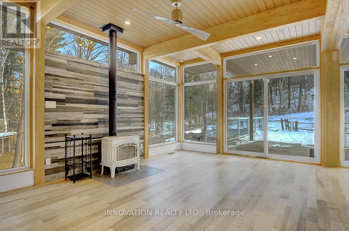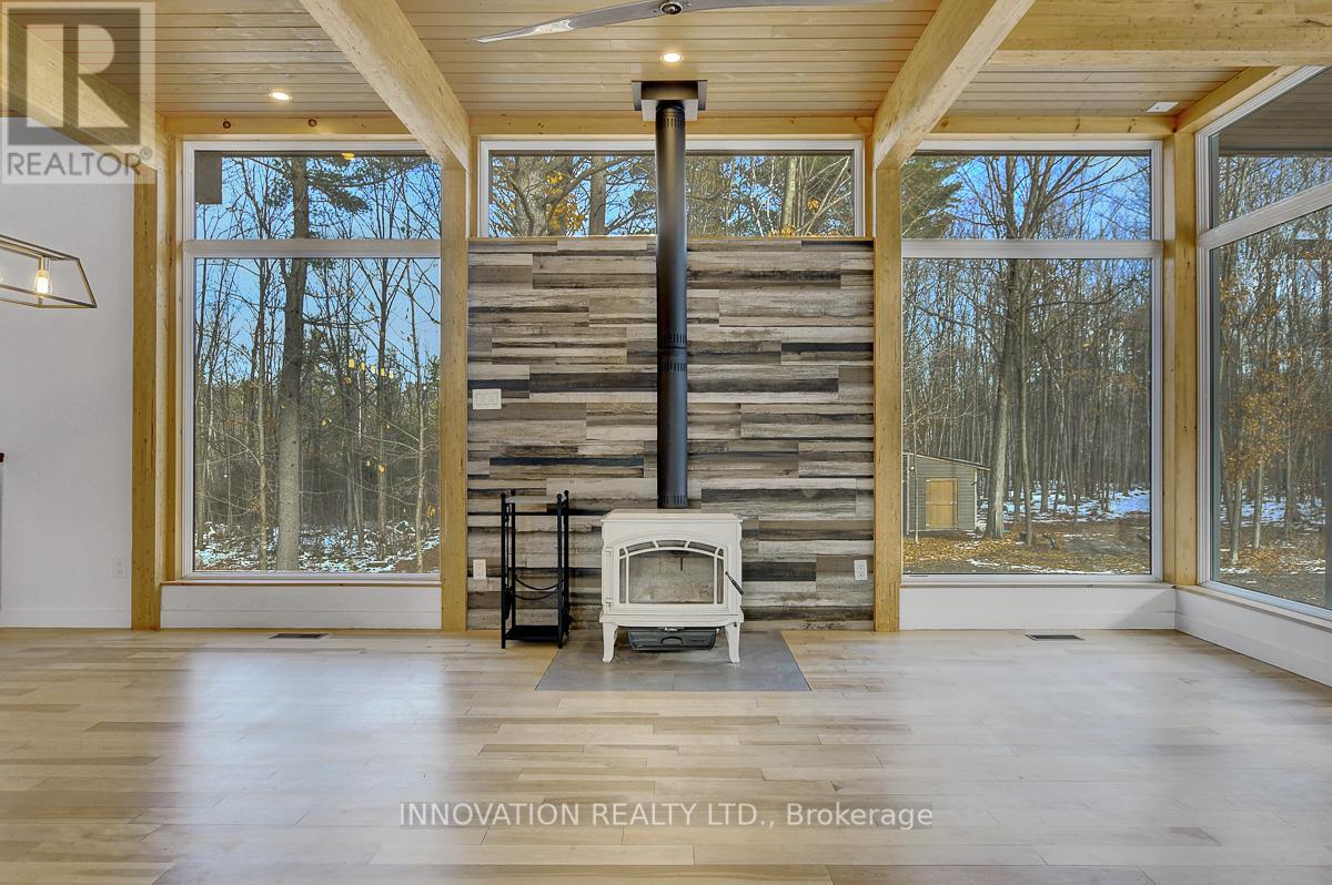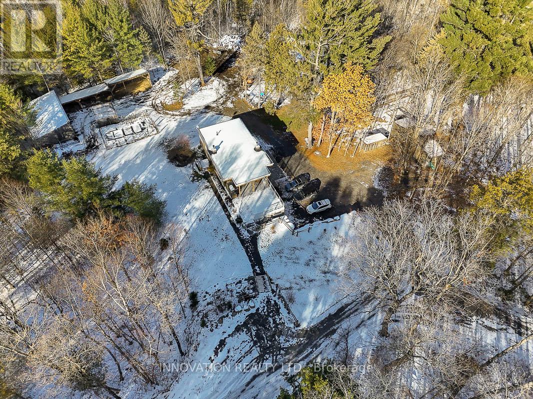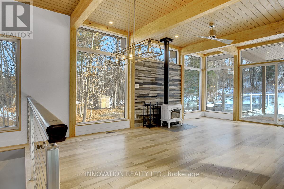 Get ready to be wowed by this breathtaking custom home, nestled on an expansive 41-acre estate featuring a lush mixed forest and your very own private pond! As you step inside, you'll be greeted by an airy and inviting atmosphere, seamlessly flowing across beautifully refinished hardwood floors. The heart of the main living area features an elegant wood stove and a captivating feature wall-perfect for cozy gatherings or calm, relaxing evenings at home. With floor-to-ceiling windows enveloping the main floor, the home invites the outdoors in and opens up to a massive patio equipped with a built-in outdoor kitchen-ideal for entertaining and enjoying al fresco dining! The fabulous master suite is your private sanctuary, complete with a spacious walk-through closet and a spa-inspired bath that beckons you to unwind and rejuvenate. Venture down to the lower level and discover an amazing recreation room with grand patio doors that lead to a lovely lower patio space. Two spacious bedrooms and a gorgeous shared bath complete this fun-filled area. You'll also find a utility room that houses the water treatment system and a wood/propane combination heating system. The ample 2-car garage is ready to accommodate your vehicles, motorized toys, or serve as a fantastic workshop. Outside, the property boasts a variety of outbuildings in different sizes, perfect for storage and countless hobby-farming opportunities. Meander along the winding paths that explore the property, and make the most of the serene surroundings with delightful walking, skiing, and snowshoeing adventures by the pond. Plus, thanks to a forest management agreement, you can enjoy property tax reductions! Conveniently located just 15 minutes from Kanata and Almonte, this home combines the tranquility of rural living with easy access to gourmet restaurants, charming shops, and endless recreational activities. Don't let this extraordinary slice of paradise slip away-where luxury and nature live in perfect harmony! (id:49712)