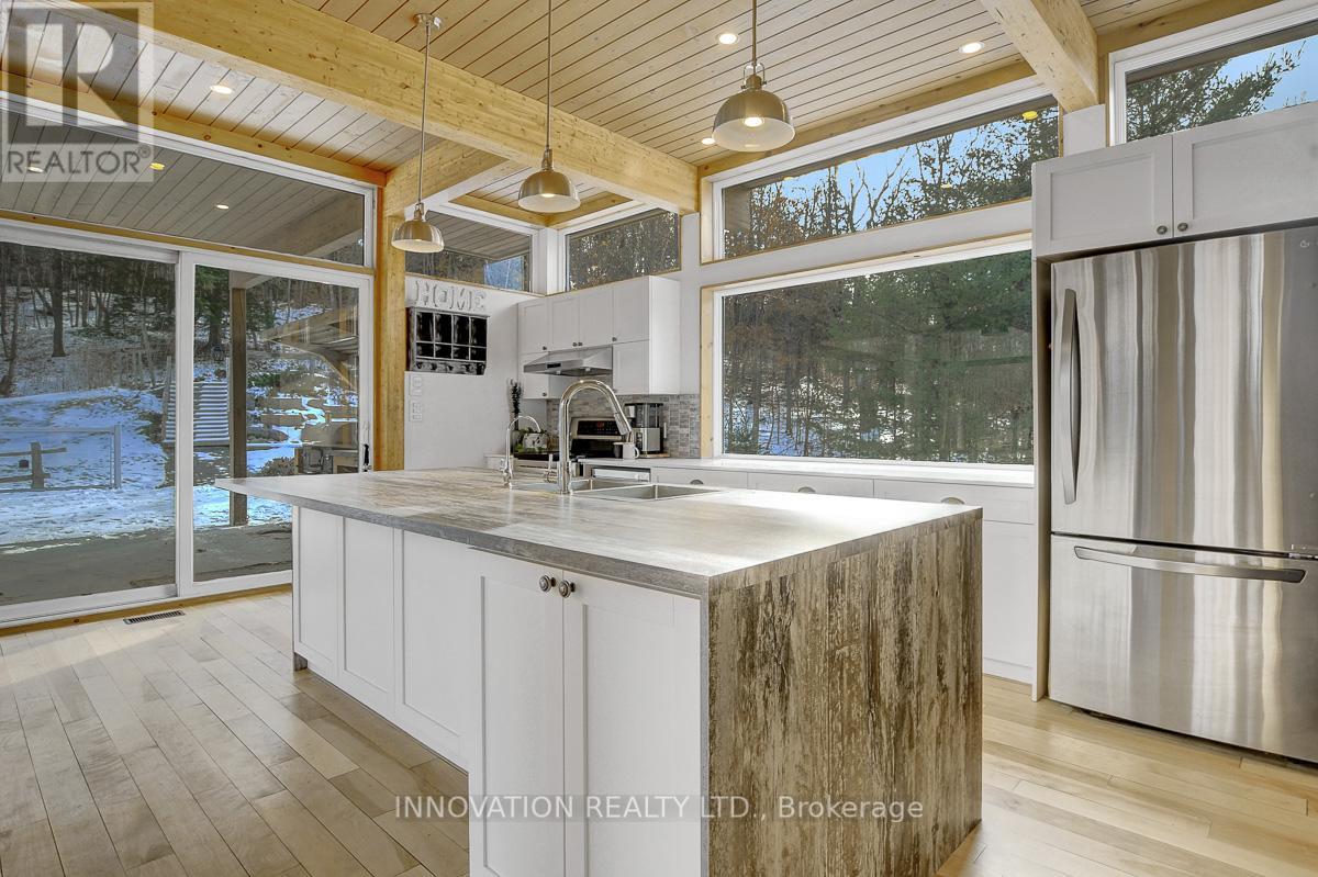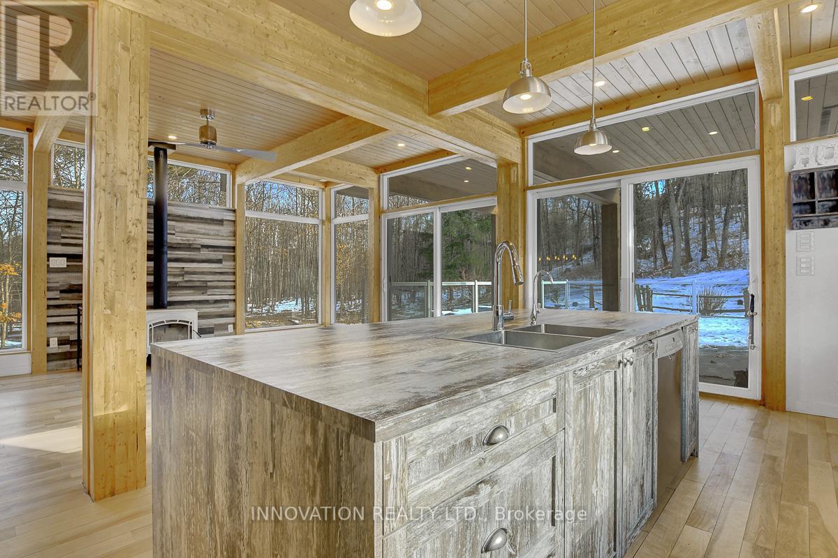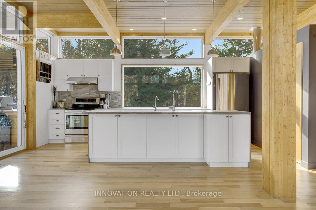 Get ready to be wowed by this breathtaking custom home, nestled on an expansive 41-acre estate featuring a lush mixed forest and your very own private pond! As you step inside, you'll be greeted by an airy and inviting atmosphere, seamlessly flowing across beautifully refinished hardwood floors. The heart of the main living area features an elegant wood stove and a captivating feature wall-perfect for cozy gatherings or calm, relaxing evenings at home. With floor-to-ceiling windows enveloping the main floor, the home invites the outdoors in and opens up to a massive patio equipped with a built-in outdoor kitchen-ideal for entertaining and enjoying al fresco dining! The fabulous master suite is your private sanctuary, complete with a spacious walk-through closet and a spa-inspired bath that beckons you to unwind and rejuvenate. Venture down to the lower level and discover an amazing recreation room with grand patio doors that lead to a lovely lower patio space. Two spacious bedrooms and a gorgeous shared bath complete this fun-filled area. You'll also find a utility room that houses the water treatment system and a wood/propane combination heating system. The ample 2-car garage is ready to accommodate your vehicles, motorized toys, or serve as a fantastic workshop. Outside, the property boasts a variety of outbuildings in different sizes, perfect for storage and countless hobby-farming opportunities. Meander along the winding paths that explore the property, and make the most of the serene surroundings with delightful walking, skiing, and snowshoeing adventures by the pond. Plus, thanks to a forest management agreement, you can enjoy property tax reductions! Conveniently located just 15 minutes from Kanata and Almonte, this home combines the tranquility of rural living with easy access to gourmet restaurants, charming shops, and endless recreational activities. Don't let this extraordinary slice of paradise slip away-where luxury and nature live in perfect harmony! (id:49712)