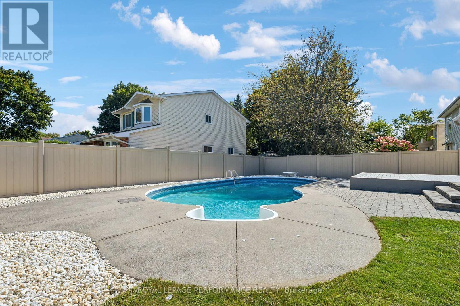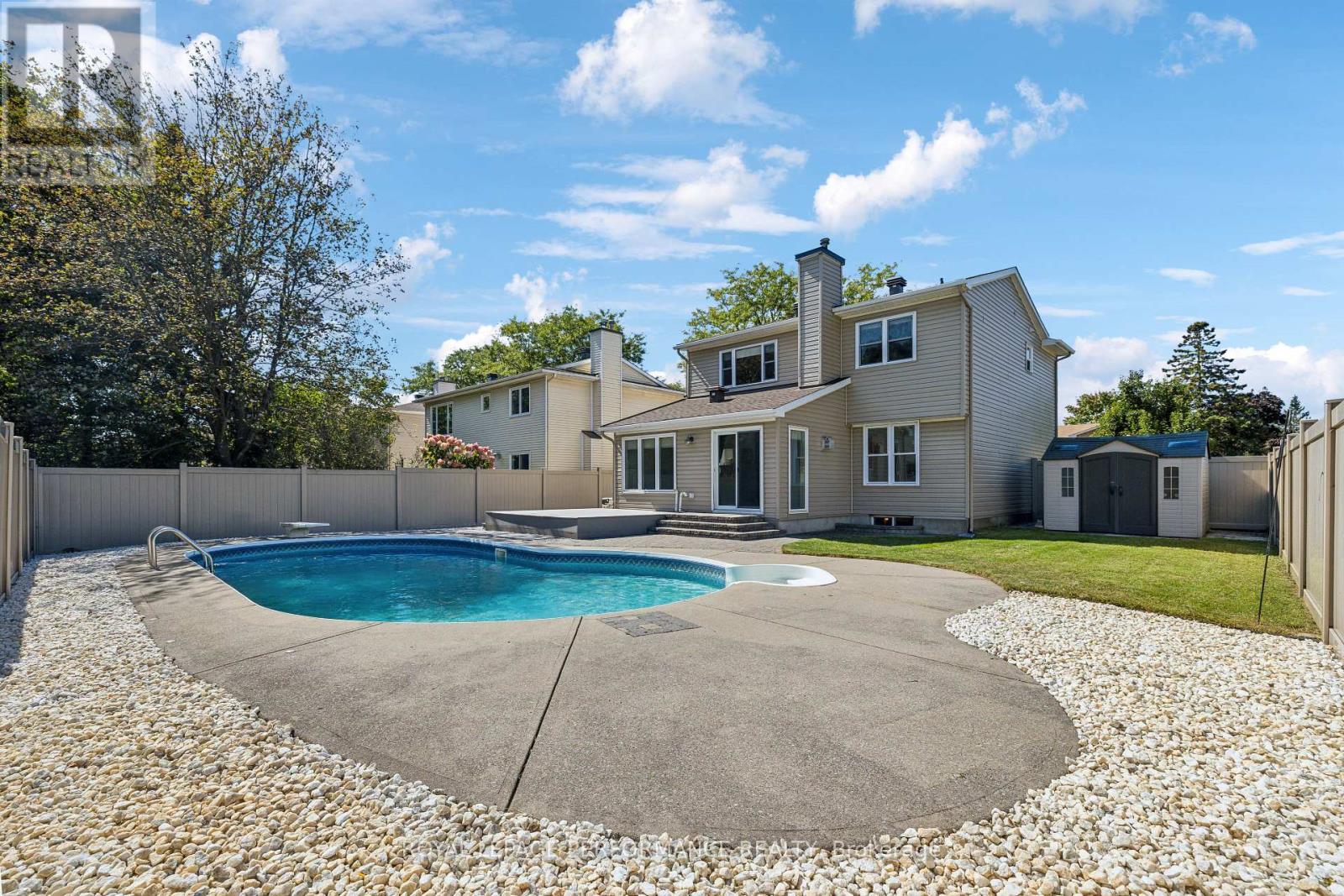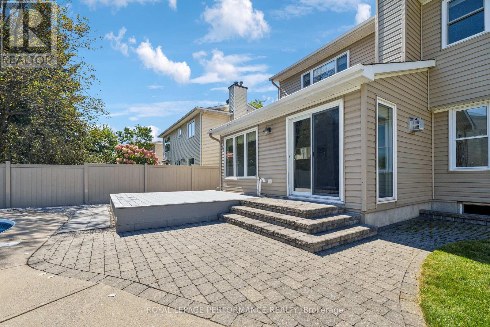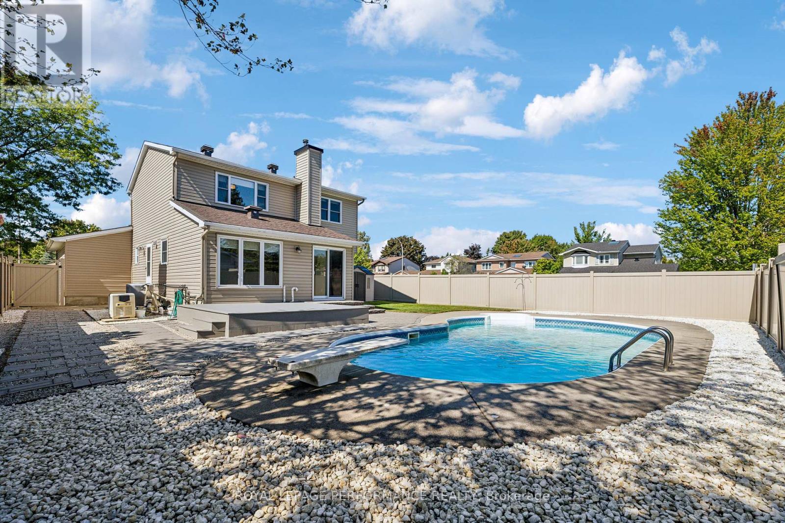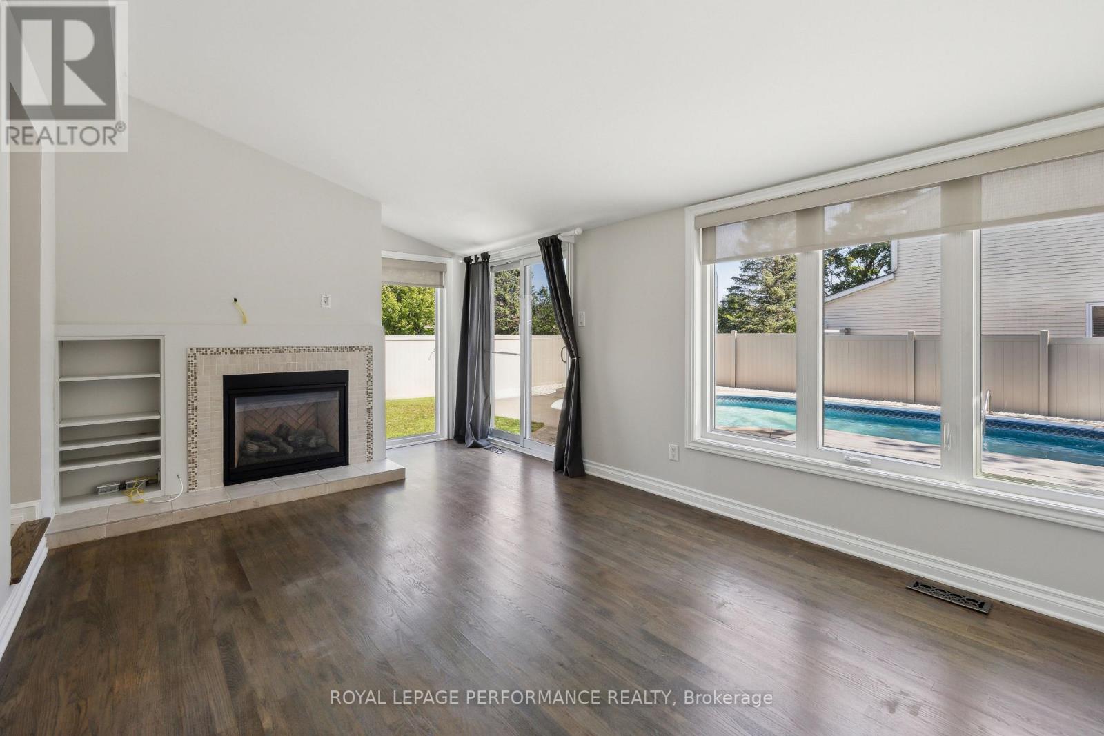 This beautifully maintained corner-lot home in Chapel Hill offers exceptional curb appeal, a bright modern interior, and a private backyard retreat with an in-ground pool. The welcoming foyer opens to a spacious living and dining area featuring resurfaced hardwood floors and large windows that fill the space with natural light.The renovated kitchen includes granite countertops, stainless steel appliances, and a stylish tumbled-marble backsplash. A sunken family room with vaulted ceilings, a gas fireplace, and views of the backyard provides the perfect place to relax.Upstairs, the primary bedroom offers generous closet space and a refreshed ensuite bathroom. Two additional bedrooms feature updated hardwood flooring and share a modern 4-piece bath.The fully finished basement adds even more living space with a large recreation room, an electric fireplace, a fourth bedroom, and a convenient powder room-ideal for guests or a home office setup.Step outside to enjoy a private backyard oasis complete with a composite deck, an in-ground pool, and low-maintenance landscaping highlighted by white river stone and a new stone pathway.Additional features include an insulated garage, updated bathrooms, newer windows in key areas, a modern staircase, and recent mechanical upgrades ensuring comfort and efficiency.Situated in the highly sought-after Chapel Hill community, this home is close to excellent schools, parks, trails, Racette Park, shopping, transit, and easy access to Highway 174. (id:49712)