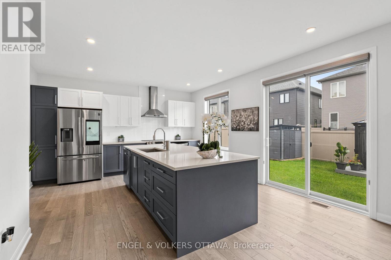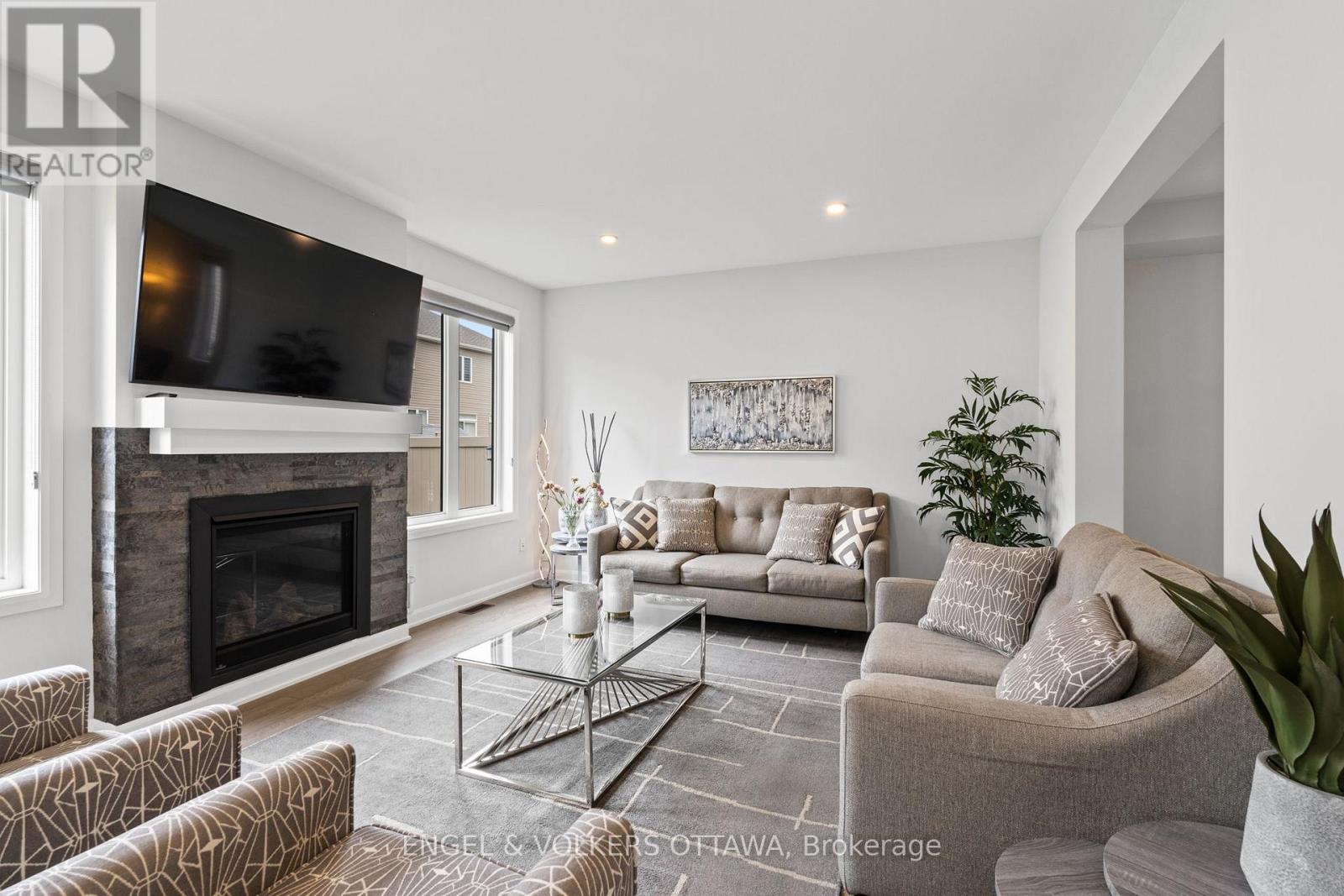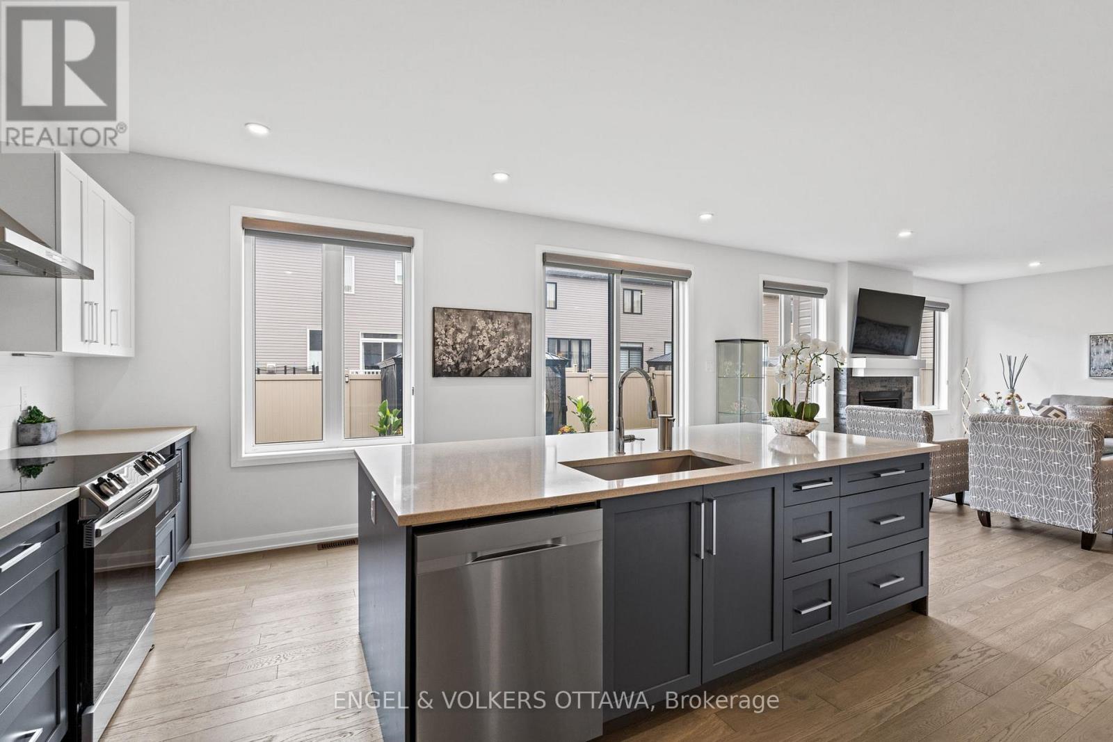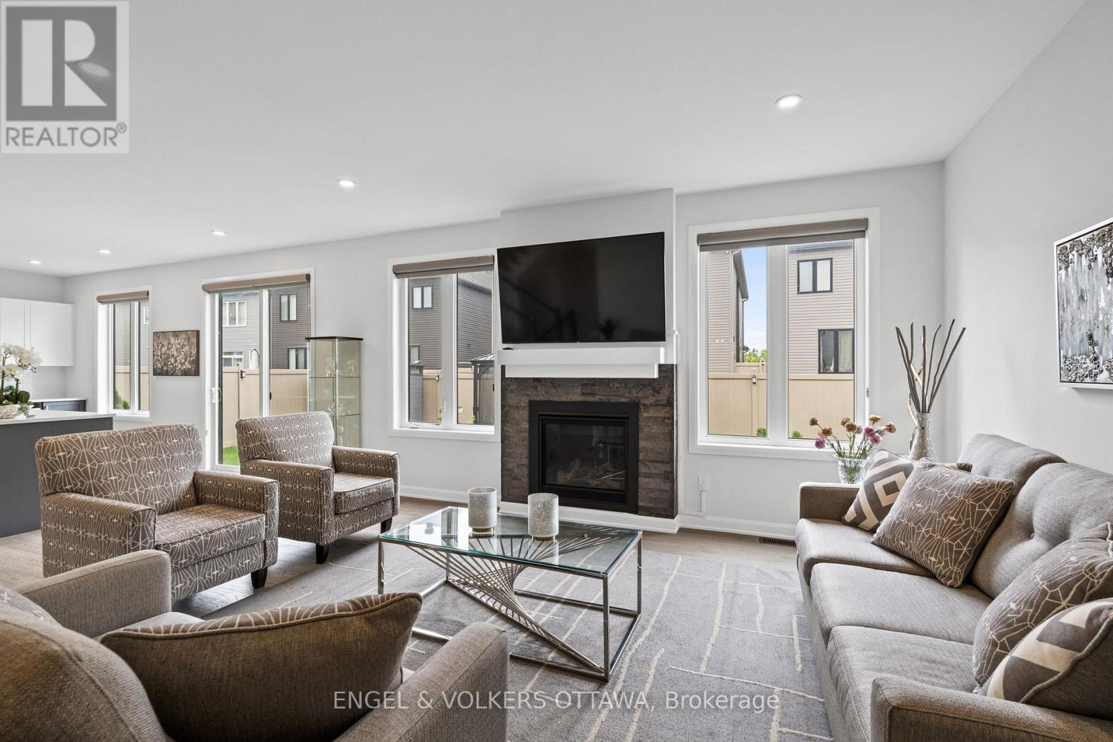 Welcome to 195 Alex Polowin Avenue, a contemporary 4-bedroom, 3-bathroom home offering over 2,500 sq.ft. of beautifully designed above-grade living space. Set on an oversized lot in Half Moon Bay, this home blends clean-lined style with thoughtful functionality - ideal for modern families and busy professionals alike. Step into a tiled foyer that opens to a private front office - perfect for remote work or a quiet study. Warm-toned hardwood floors lead you into the bright and spacious living room, where a striking dark stacked-stone fireplace and TV niche create a dramatic focal point. Framed by large windows, this space is as inviting as it is light-filled. The adjacent dining room is designed for entertaining, with a statement light fixture and neutral finishes that set the tone for stylish gatherings. At the heart of the home, the chef-inspired kitchen features two-tone cabinetry, quartz countertops, a waterfall island with seating, and a full suite of stainless steel appliances - both sleek and functional. Upstairs, the primary bedroom is a serene retreat with plush carpeting, a generous closet, and a luxurious 5-piece ensuite featuring a glass-enclosed shower and double vanity. Three additional bedrooms offer flexible space for children, guests, or hobbies and share a well-appointed main bath with an extended vanity and tub/shower combo. A dedicated laundry room with front-loading machines adds extra convenience. Outside, enjoy a low-maintenance backyard with composite fencing, a raised deck with a gazebo, and a spacious lawn - perfect for play or relaxing in the shade. Located minutes from top-rated schools, parks, shopping, and recreation, this home offers the best of suburban living in a vibrant, family-friendly neighbourhood. 195 Alex Polowin Avenue isn't just a home - its a lifestyle. (id:49712)