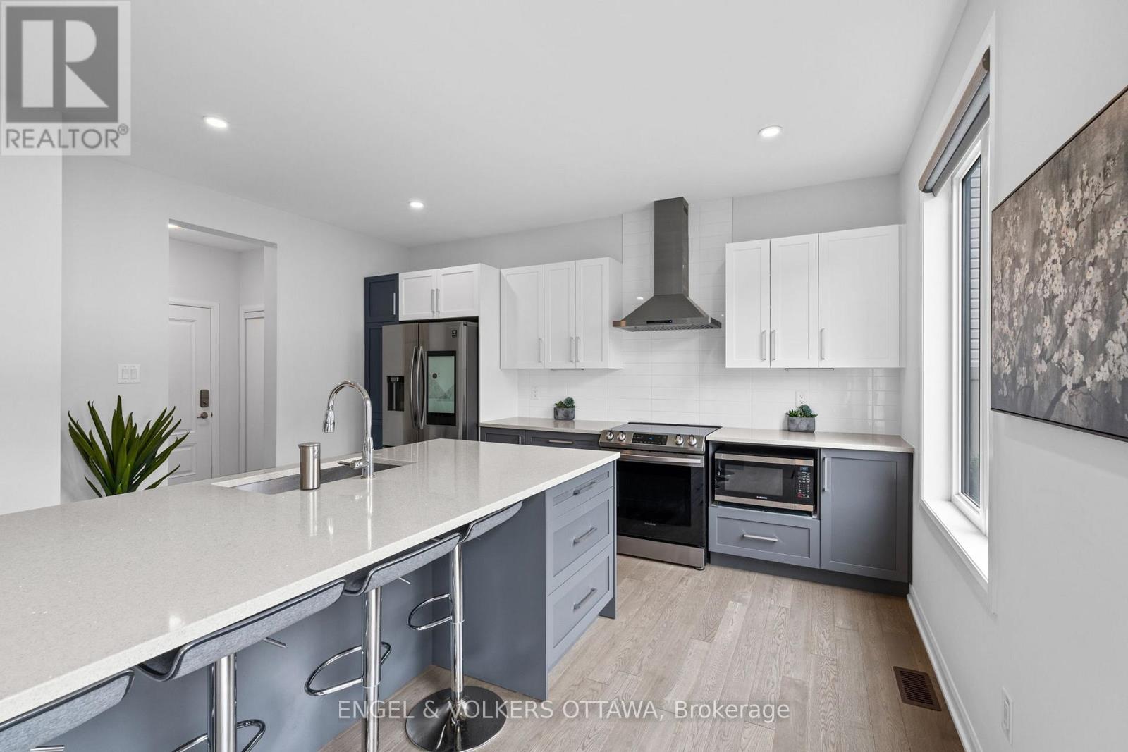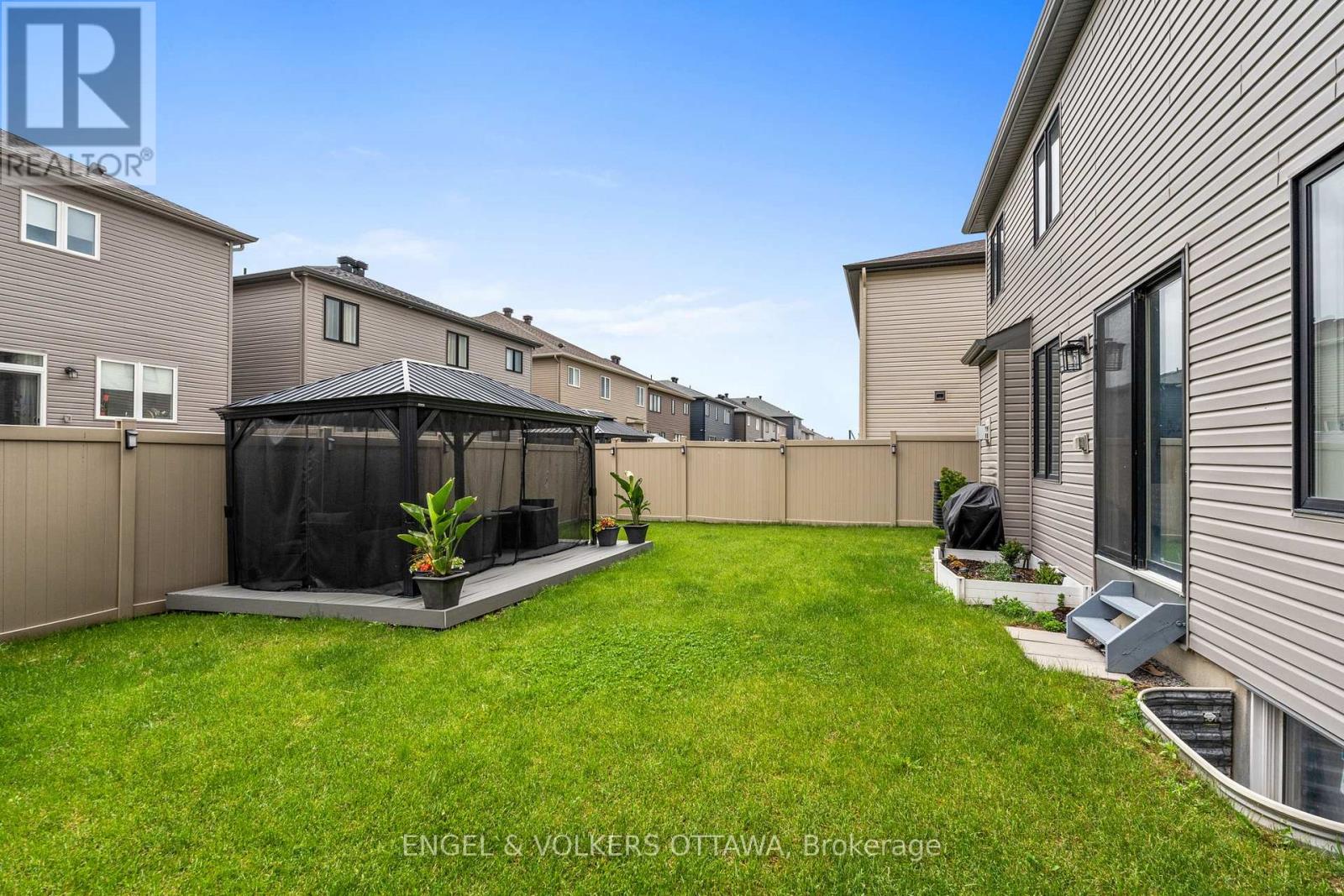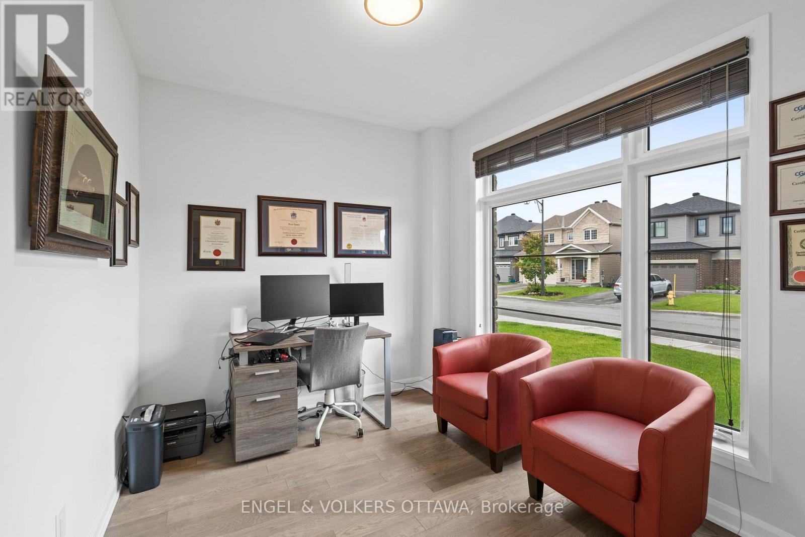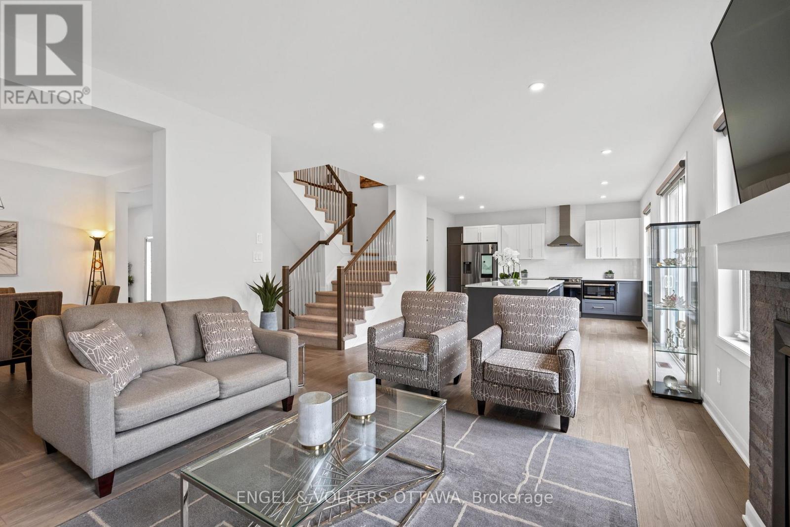 Welcome to 195 Alex Polowin Avenue, a contemporary 4-bedroom, 3-bathroom home offering over 2,500 sq.ft. of beautifully designed above-grade living space. Set on an oversized lot in Half Moon Bay, this home blends clean-lined style with thoughtful functionality - ideal for modern families and busy professionals alike. Step into a tiled foyer that opens to a private front office - perfect for remote work or a quiet study. Warm-toned hardwood floors lead you into the bright and spacious living room, where a striking dark stacked-stone fireplace and TV niche create a dramatic focal point. Framed by large windows, this space is as inviting as it is light-filled. The adjacent dining room is designed for entertaining, with a statement light fixture and neutral finishes that set the tone for stylish gatherings. At the heart of the home, the chef-inspired kitchen features two-tone cabinetry, quartz countertops, a waterfall island with seating, and a full suite of stainless steel appliances - both sleek and functional. Upstairs, the primary bedroom is a serene retreat with plush carpeting, a generous closet, and a luxurious 5-piece ensuite featuring a glass-enclosed shower and double vanity. Three additional bedrooms offer flexible space for children, guests, or hobbies and share a well-appointed main bath with an extended vanity and tub/shower combo. A dedicated laundry room with front-loading machines adds extra convenience. Outside, enjoy a low-maintenance backyard with composite fencing, a raised deck with a gazebo, and a spacious lawn - perfect for play or relaxing in the shade. Located minutes from top-rated schools, parks, shopping, and recreation, this home offers the best of suburban living in a vibrant, family-friendly neighbourhood. 195 Alex Polowin Avenue isn't just a home - its a lifestyle. (id:49712)